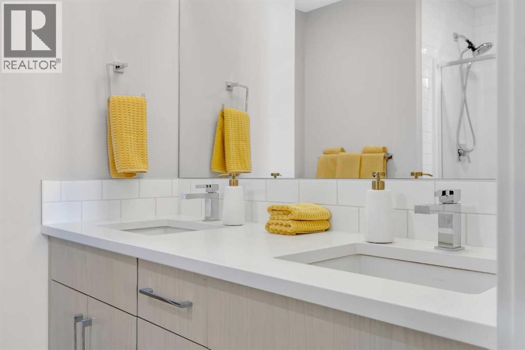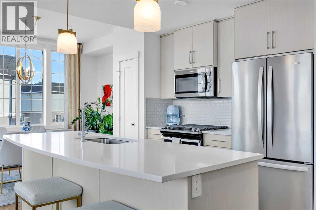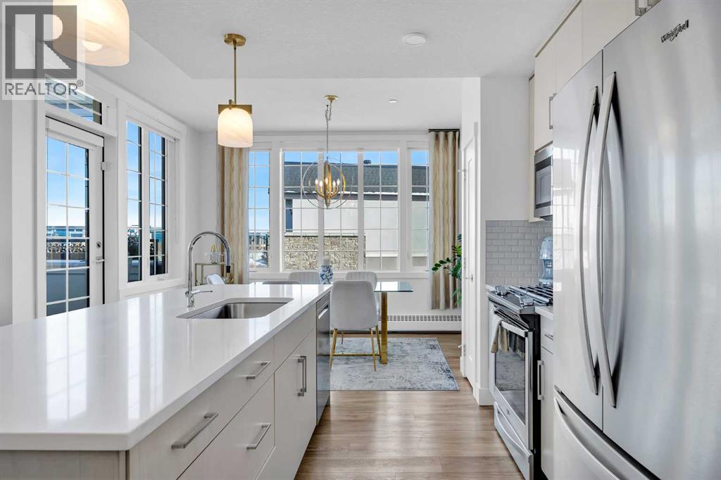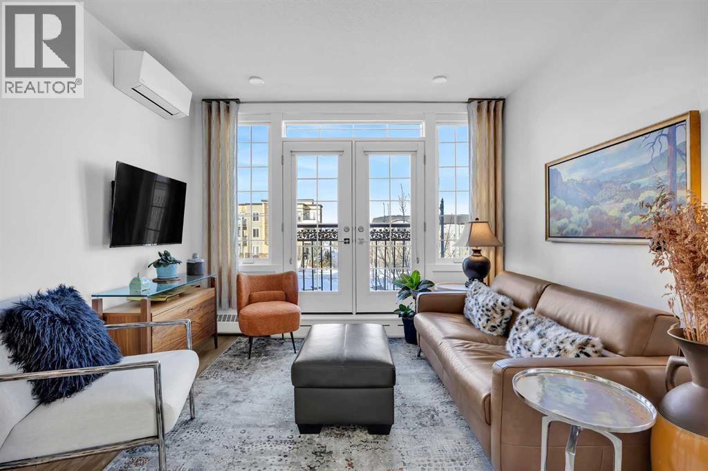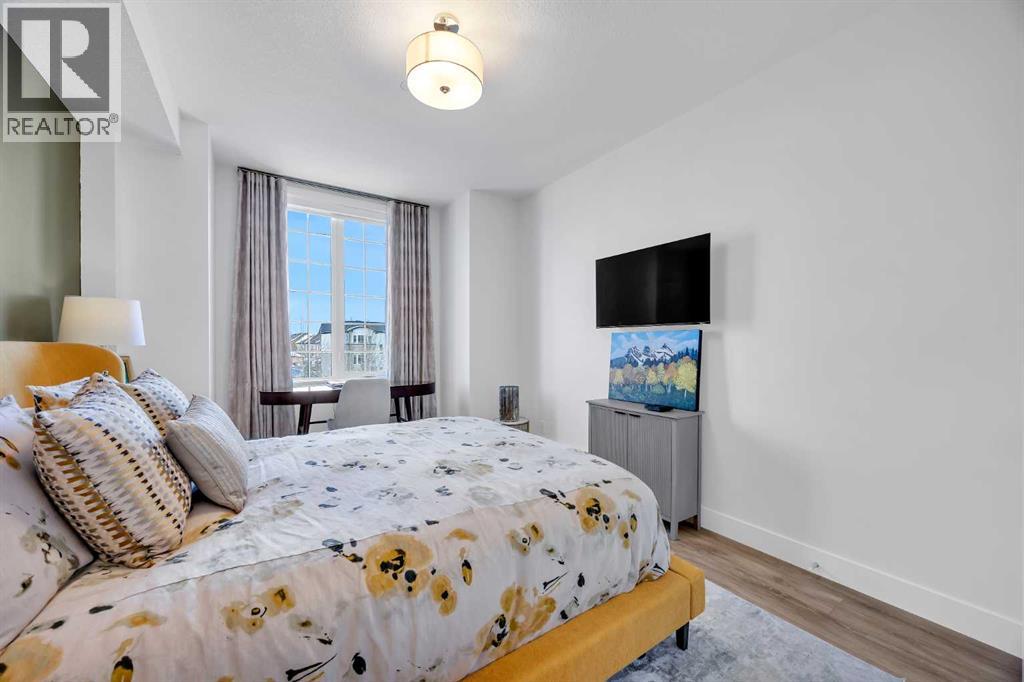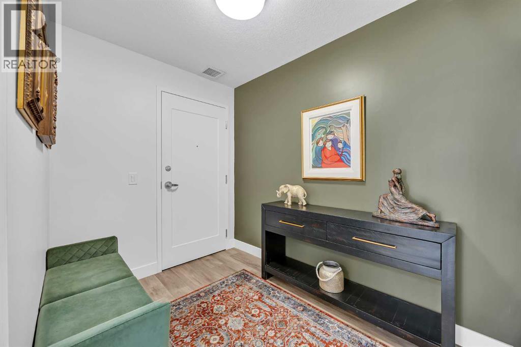 Sun-drenched corner residence in the heart of Quarry Park.Perfectly positioned within an exclusive boutique, non-smoking building, this beautifully updated home captures breathtaking sunrises and sunsets over the pond and fountain, creating a serene retreat just minutes from the city.Inside, the thoughtfully curated interior features nine-foot ceilings, expansive windows, fresh designer paint, custom drapery, central air conditioning, and upgraded lighting throughout. The chef-inspired kitchen is designed for both style and function, showcasing quartz countertops, a gas range, an oversized island, and elegant finishes that flow seamlessly into the open living space.Enjoy the rare balance of peaceful natural surroundings and exceptional connectivity, with the Bow River pathway system, parks, cafés, and amenities just steps away, and downtown Calgary only 15 minutes away.Additional highlights include titled tandem underground parking and dedicated storage. Quiet, sophisticated, and impeccably maintained, residences in this building seldom come to market.Private showings available by appointment. (id:51989)