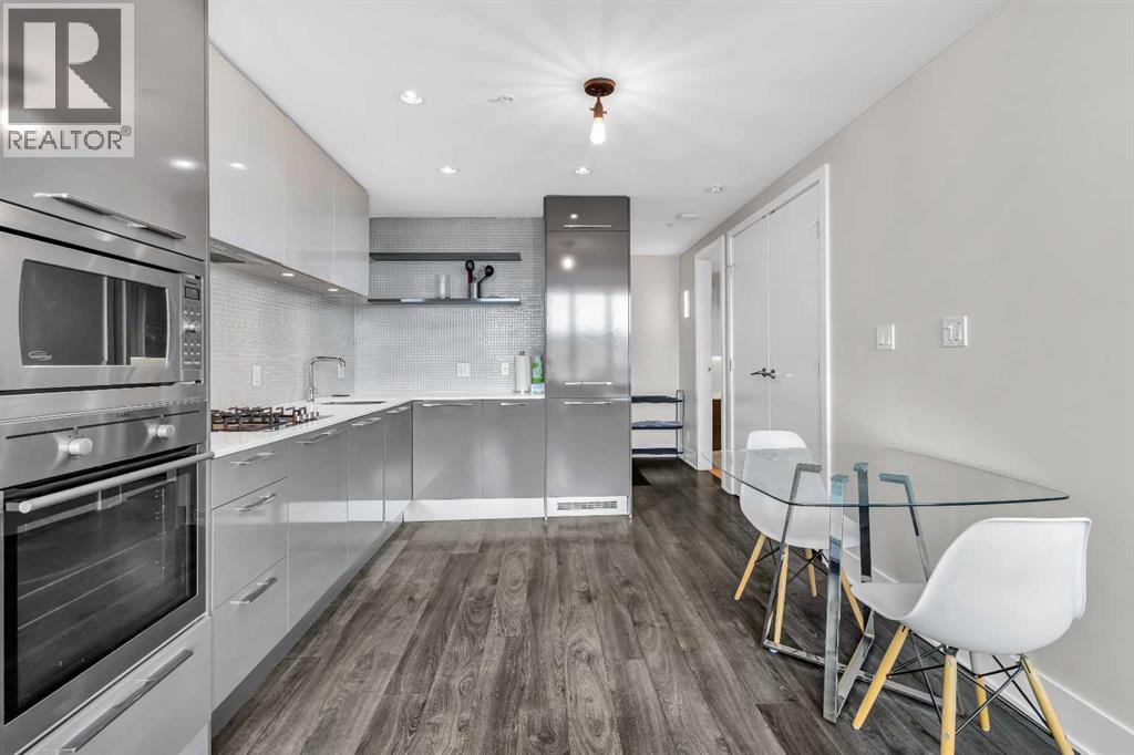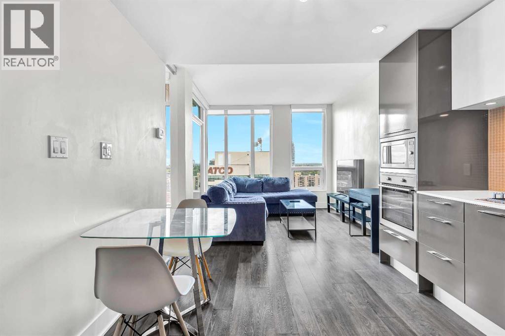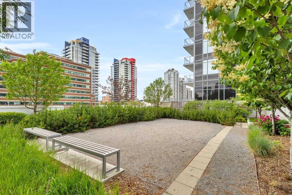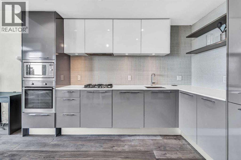 Welcome to elevated urban living in the heart of downtown Calgary. This modern 1-bedroom unit is located on the 21st floor of the Mark on 10th building, offering stunning south-facing views, 9-foot ceilings, and floor-to-ceiling windows for abundant natural light. The open-concept layout includes wide plank flooring, full-height Nobilia cabinetry, quartz countertops, gas cooktop, Liebherr built-in appliances, and a pull-out spray Kohler faucet. The unit comes with a titled heated underground parking stall and a separate out-of-suite storage locker. The Mark on 10th offers premium amenities including a rooftop hot tub, patio with BBQ and firepit, gym, steam room, sauna, owners' lounge, garden terrace, secure bike storage, car share, and dog wash area. A perfect opportunity for professionals or investors seeking quality living in the Beltline. (id:51989)