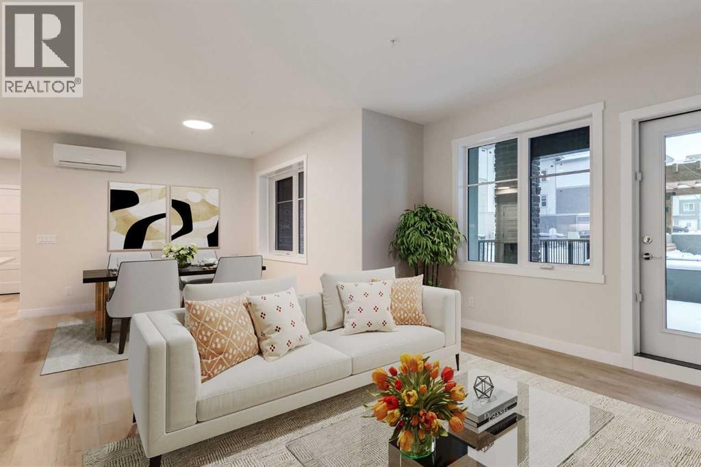 The Whitney is an impeccably designed boutique condo building, situated in the esteemed Aspen Park/Springbank Hill area. Your new home graces one of the finest locations, nestled beside a protected environmental reserve (ravine) that winds through the community, offering extensive recreational walking paths. The Whitney boasts stunning mountain, prairie, and community vistas, with Aspen Landing just a 5-minute stroll away and Downtown a quick 10-minute drive. Your new 2 bed/2 bath LIBERTY unit offers 1187 sq.ft. of architectural measurement (1093 sq.ft. RMS measurement) of living space, inclusive of en-suite laundry, open concept living, a large patio, air-conditioning, titled underground parking (additional stall is available for purchase), walk-in separate storage unit, luxury vinyl plank flooring, quartz counters, custom cabinetry, designer tile, and stainless appliances. Developed by Cove Properties, one of Calgary’s most respected multifamily builders known for their dedication to quality craftsmanship. An annual HOA fee is anticipated, though not yet finalized. Please note that all photos shown are from Cove Properties' previous show suites and are intended to illustrate the level of interior finishes that can be expected at The Whitney. BUILDING IS COMPLETE AND MOVE IN READY! This is a limited opportunity to own in one of Calgary’s most desirable southwest communities. Contact your agent today to arrange a private viewing of the unit. (id:51989)