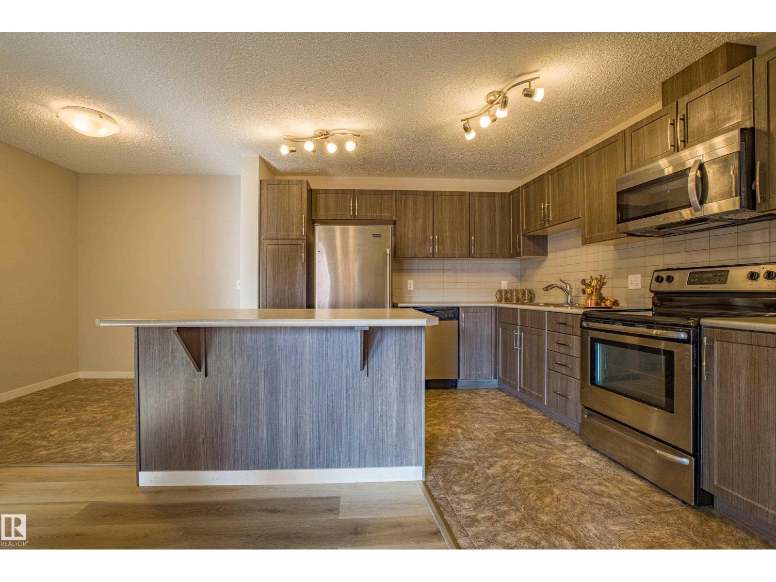 Welcome to this fantastic 2 bed, 2 bath condo in the desirable neighbourhood of Rutherford, located in the heart of Southwest Edmonton's Heritage Valley. This 925 sf, move-in ready home offers incredible value with TWO PARKING STALLS—one heated underground and one surface stall! The bright, open-concept layout features a modern U-shaped kitchen with stainless steel appliances, a peninsula island with seating, and a spacious living room that opens onto your private, covered balcony. The smart floor plan separates the two bedrooms for maximum privacy, including a primary suite with a walk-through closet and 3-pc ensuite. Enjoy the convenience of in-suite laundry, ample visitor parking for guests, an indoor garbage chute, and even a car wash in the building. Perfectly situated just minutes from the Anthony Henday, QEII, South Edmonton Common, and the airport, this home offers an unbeatable combination of comfort, convenience, and lifestyle. Mong. Fee Otterson school is near by.Some pics are virtually staged. (id:51989)