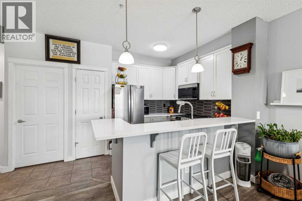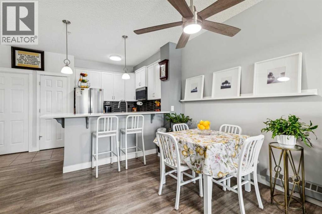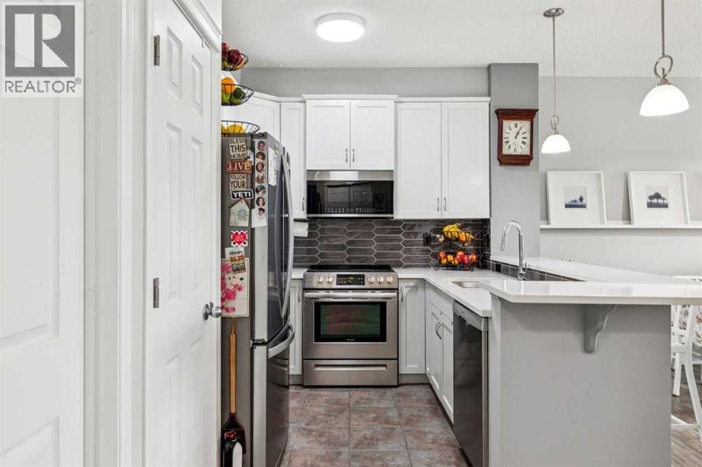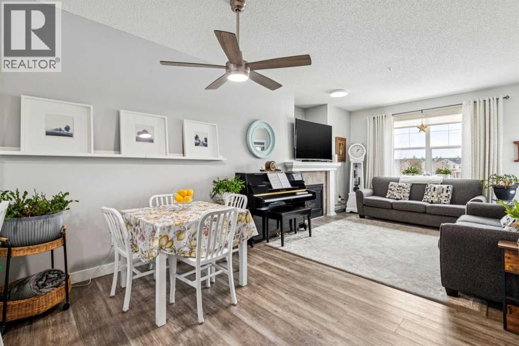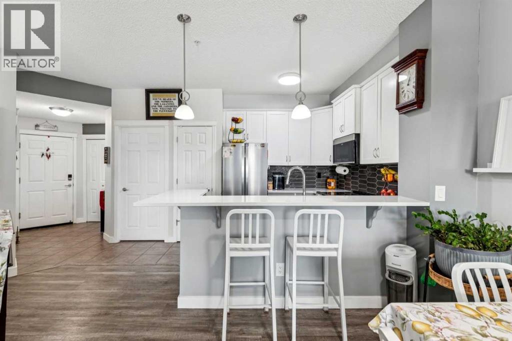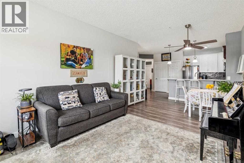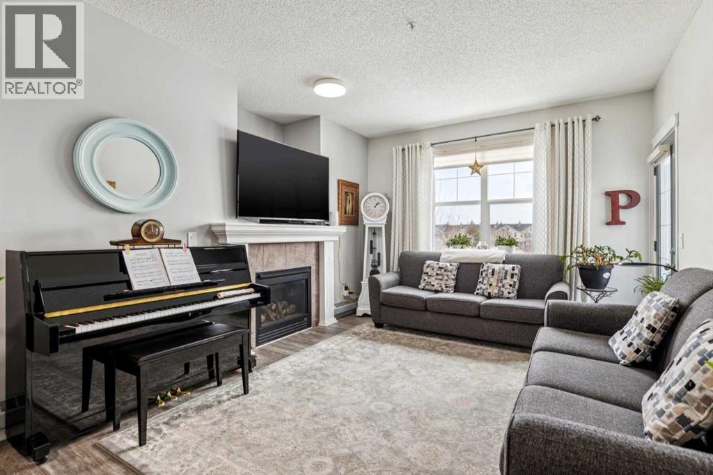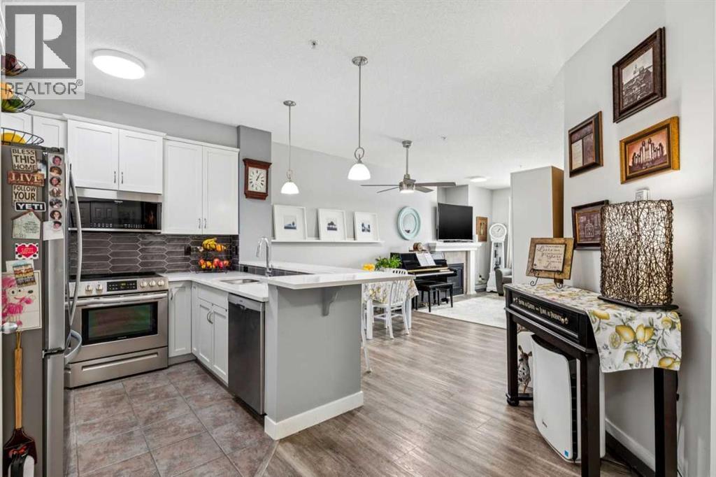 You’ll appreciate this renovated condo in McKenzie Towne’s Aberdeen on the Park. This bright, open-concept unit features 9-foot ceilings, a gas fireplace, 2 bedrooms, and 2 bathrooms, including a primary bedroom with a 4-piece ensuite and walk-in closet. The kitchen offers ceiling-height white cabinetry, quartz countertops, and stainless steel appliances. Large east-facing windows provide natural light, while the private patio overlooks the park and playground.Additional features include in-suite laundry with storage, a private storage room in the heated underground parkade, and two underground parking stalls. The property is located close to amenities and within walking distance to St. Albert the Great Parish. The building is professionally managed.Condo fees include electricity, gas, heat, water/sewer, garbage removal, and insurance. Pets are subject to board approval. Located near shopping centres and public transportation. (id:51989)