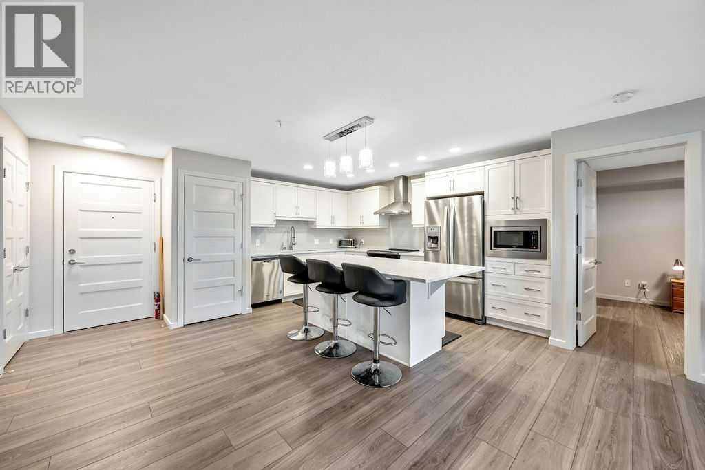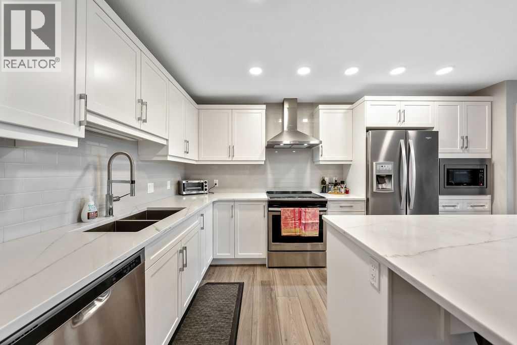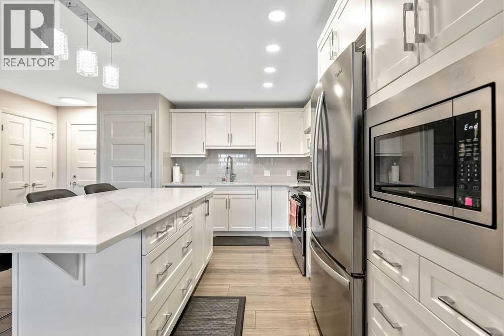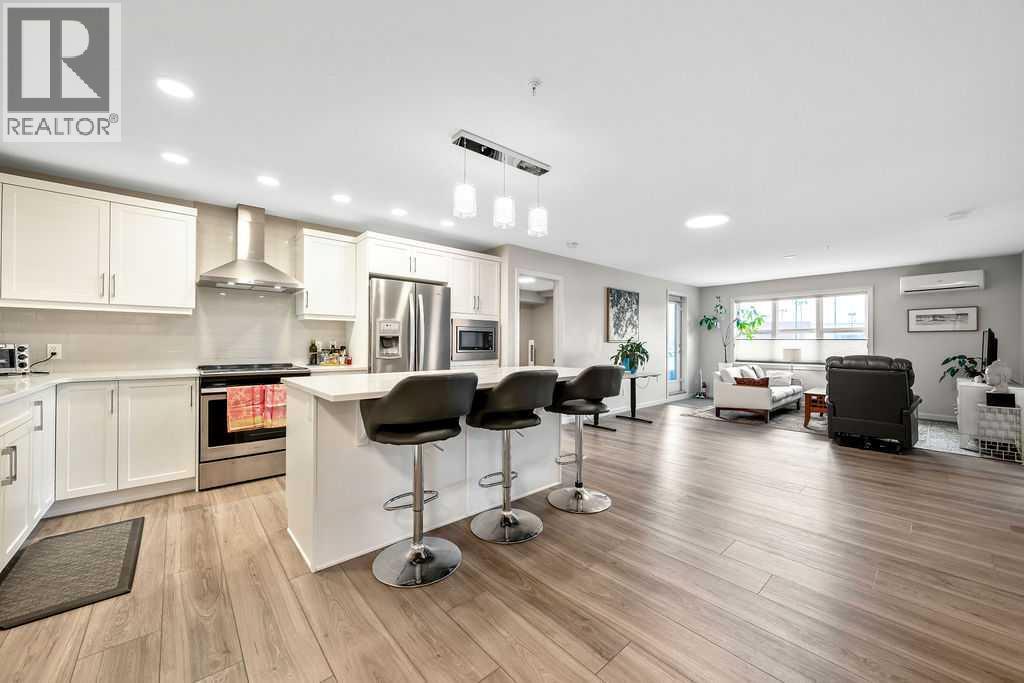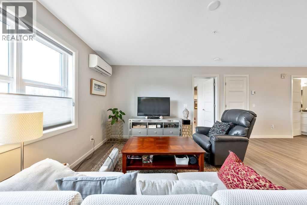 Welcome to Spacious, just like new Condo in a Quiet 55+ Community in the Chateaux. One of Airdries most desirable 55+ condo building. If you’ve been looking for a condo that doesn’t feel like a condo… this is it.This bright and beautifully maintained unit offers an open, layout with large windows. Designed with both comfort and functionality in mind, there’s room here to live, host, and truly enjoy your space.The kitchen is the heart of the home, featuring quartz countertops, upgraded appliances, a built-in microwave, plenty of drawer space, and a pantry. It opens seamlessly into a generous dining and living area, making it perfect for entertaining. Whether it’s a quiet evening or a full house, there’s space for everyone here… and your guests can easily spill out onto the patio with a natural gas BBQ hookup.This well-designed layout includes 2 bedrooms, 2 full bathrooms, and a versatile den that works perfectly as a home office, reading space, or extra storage. The primary bedroom offers a private 4-piece ensuite, while the second bedroom is ideally situated next to another full bathroom, giving guests their own comfortable space.You’ll also appreciate in-suite laundry, air conditioning for the summer, and in-floor heating… comfort in every season. The main floor is excellent for unloading groceries or getting your pet outside when nature calls. Parking and storage are taken care of with a heated underground titled stall and a storage locker, plus the added bonus of convenient access to nearby exterior parking, making grocery runs quick and easy.Located in a quiet, well-managed 55+ building, this complex is known for its strong sense of community and pride of ownership. You’re within walking distance to grocery stores, coffee shops, restaurants, medical services, walking paths, and an off-leash dog park.This is easy living… in a space that still gives you room to breathe. (id:51989)