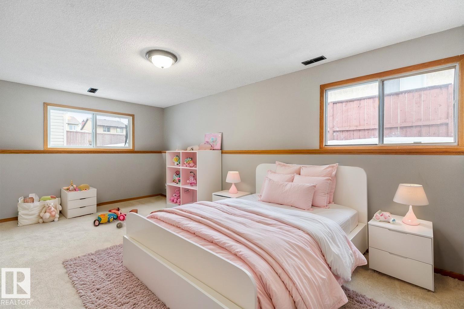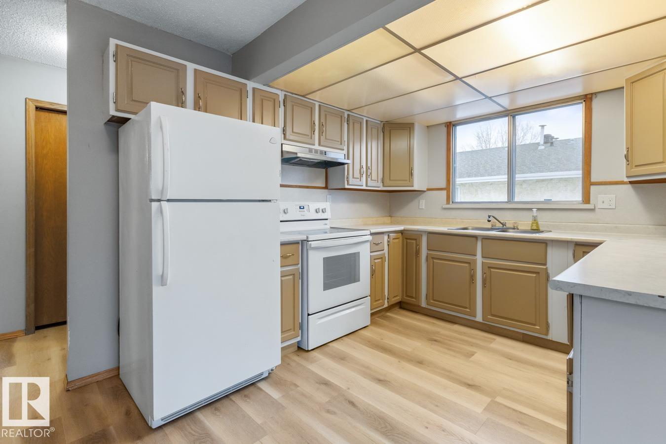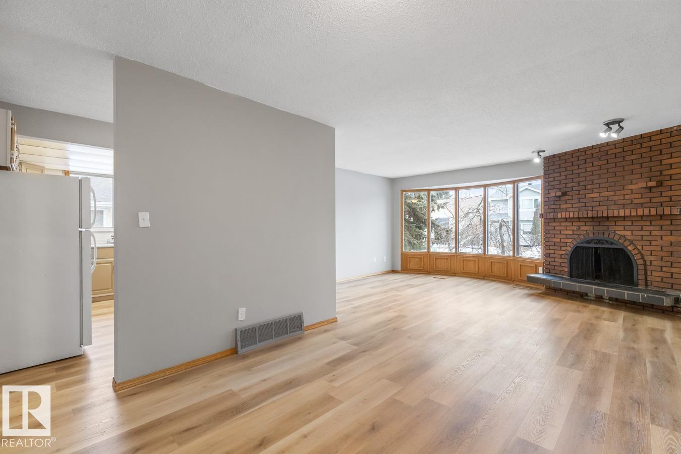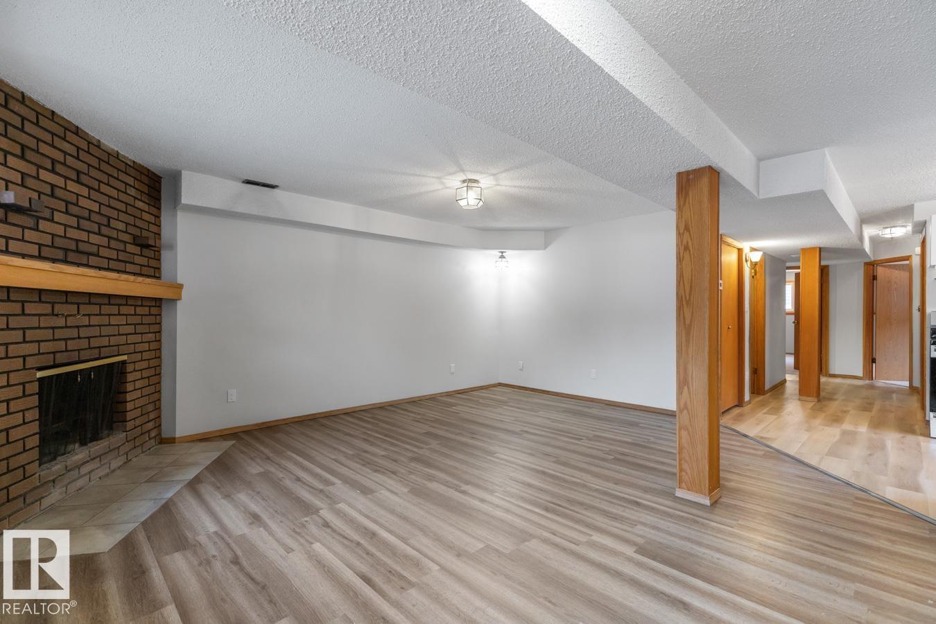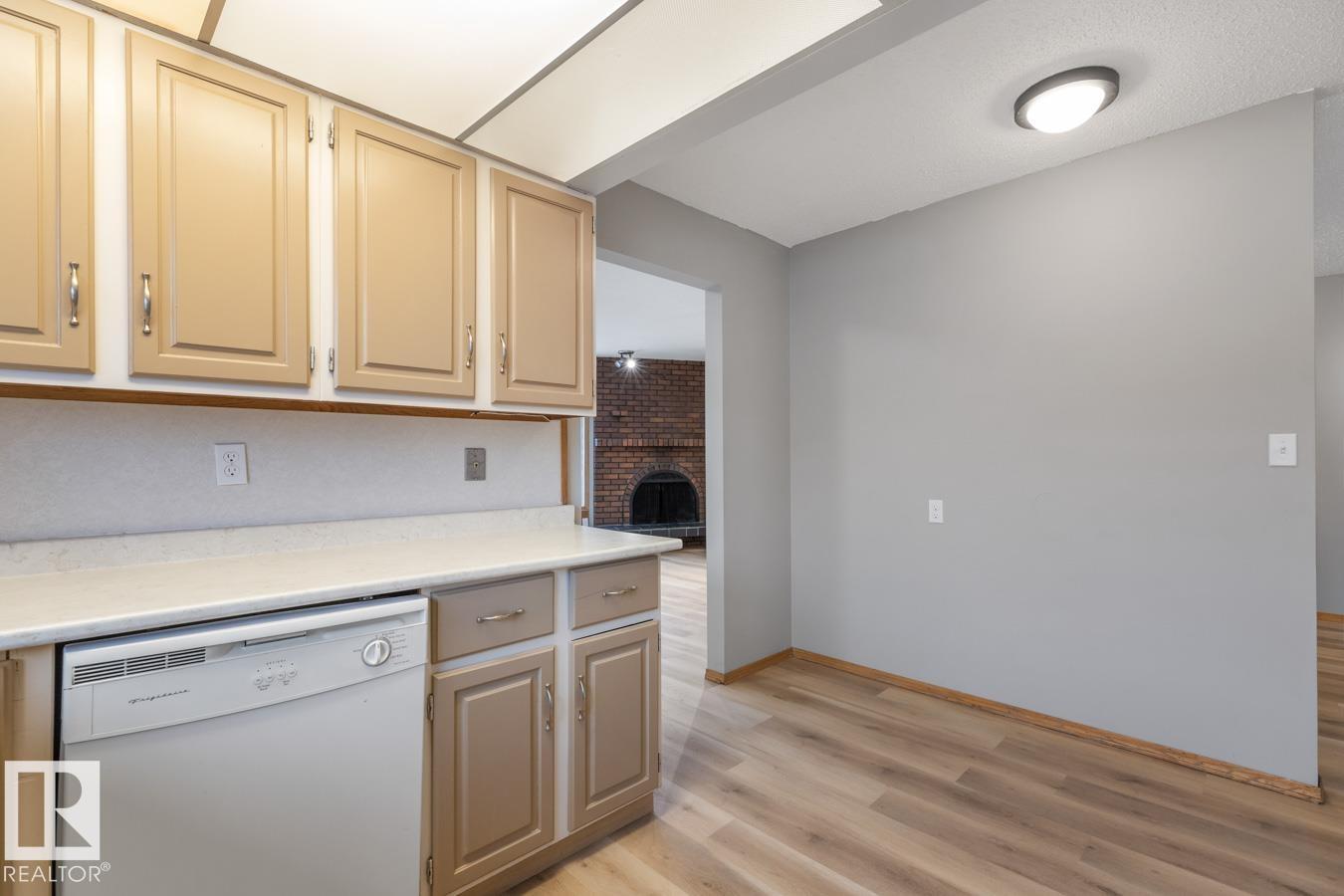 Opportunity knocks! Beautifully maintained bungalow with SECOND KITCHEN & SEPARATE ENTRANCE, perfectly located on a quiet street just steps from Mill Woods Towne Centre & Grey Nuns Hospital. Ideal for investors, multi-generational living, or buyers looking for added flexibility. The main level offers a bright, spacious layout with vinyl plank flooring throughout, a welcoming living room with cozy fireplace & large bay window, and a functional kitchen with plenty of cabinetry. The king-sized primary suite features a 3-piece ensuite, while two additional bedrooms are generous in size and share an updated 4-piece bath. Downstairs you’ll find a second kitchen, large living area with a second fireplace, separate laundry, and two bedrooms with brand-new carpet—perfect for extended family or potential suite setup. Enjoy the fenced & landscaped yard plus oversized garage. A rare find in an unbeatable location! (id:51989)