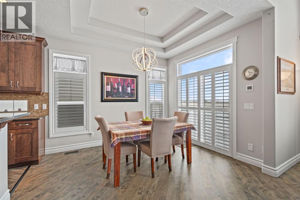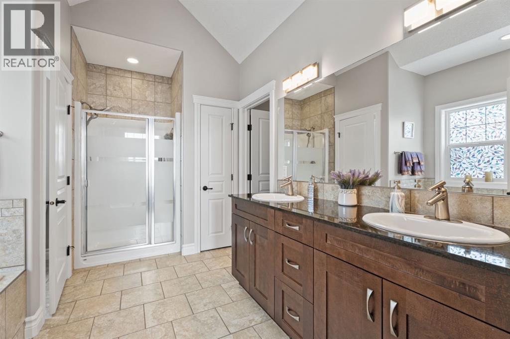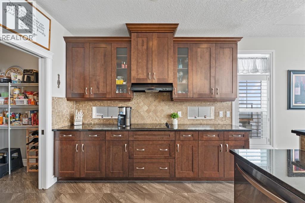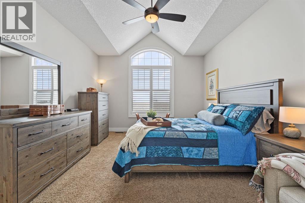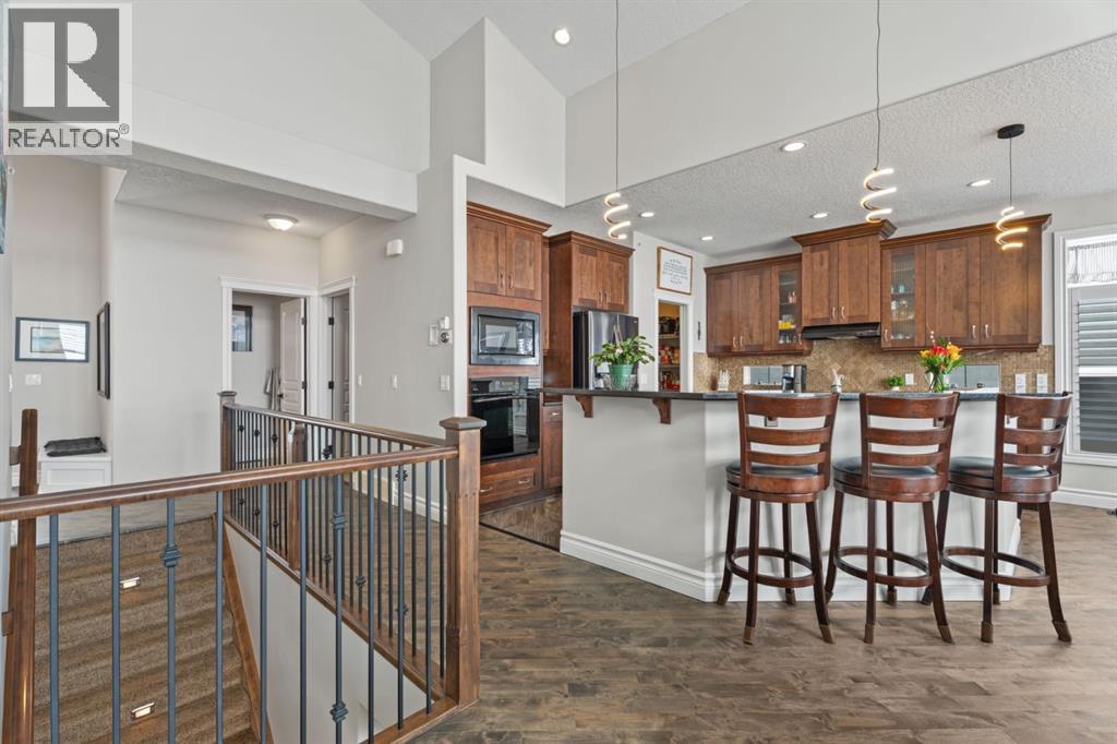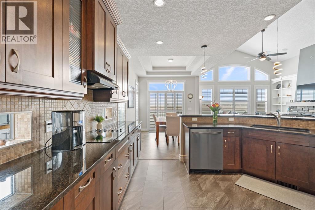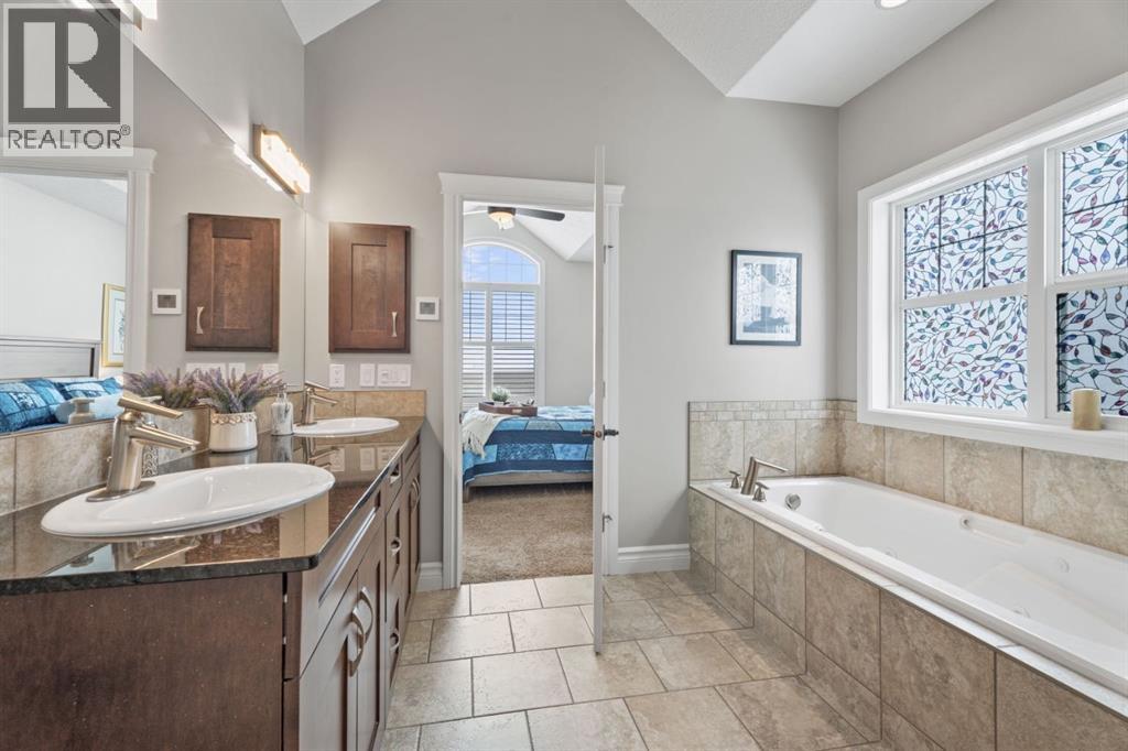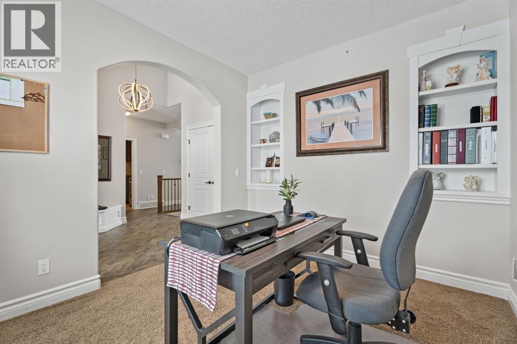 Welcome to golf course living and this beautiful well maintained walk out bungalow in the country. As you step inside, you will marvel at the large foyer and open floor plan, vaulted ceilings, refurbished hardwood floors and upgraded luxury vinyl tile in the kitchen and pantry. Take in the abundance of natural light from the large living room and pocket windows in the kitchen. This open and cozy upper main level offers so much space, including a comfortable office/den, large kitchen with granite counters and breakfast bar, walk through pantry with pocket doors and main floor laundry, extended cabinets, built in storage benches and under cabinet lighting. The feature fireplace offers warmth and ambience for those cold winter nights. Enjoy the oversized garage, extra wide driveway, work bench and tool wall for working on various projects with plenty of shelving for storage. Enjoy the pristine view of wildlife and golfers off of the large deck and invite neighbours, family and friends to join you on the aggregate patio below. The front and backyard are fully landscaped and an automatic underground sprinkler system is in place. This community is 30 minutes from Calgary, 20 minutes to Chestermere and 20 minutes from Strathmore. Enjoy time on the 18 Hole Golf Course, a secure RV Storage lot exclusive to Lakes of Muirfield Residents and the natural landscapes of country living and wildlife backing onto the canal! Book your showing today with your favourite REALTOR®. (id:51989)