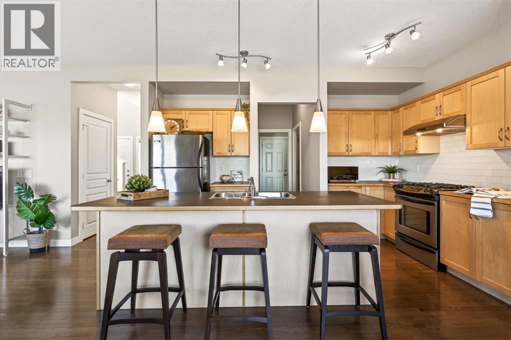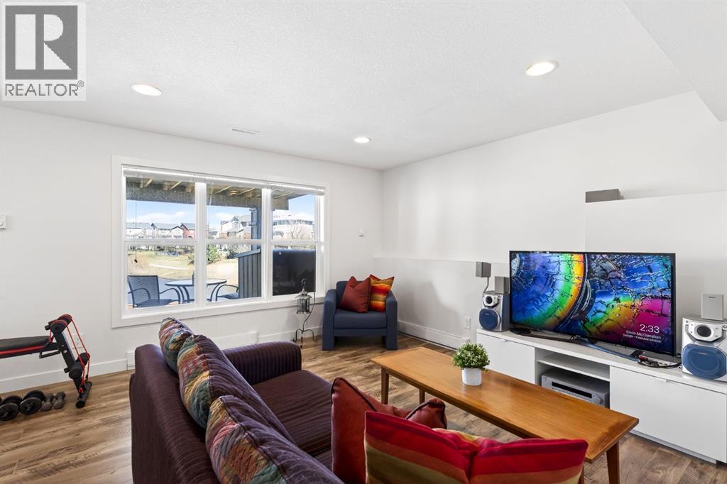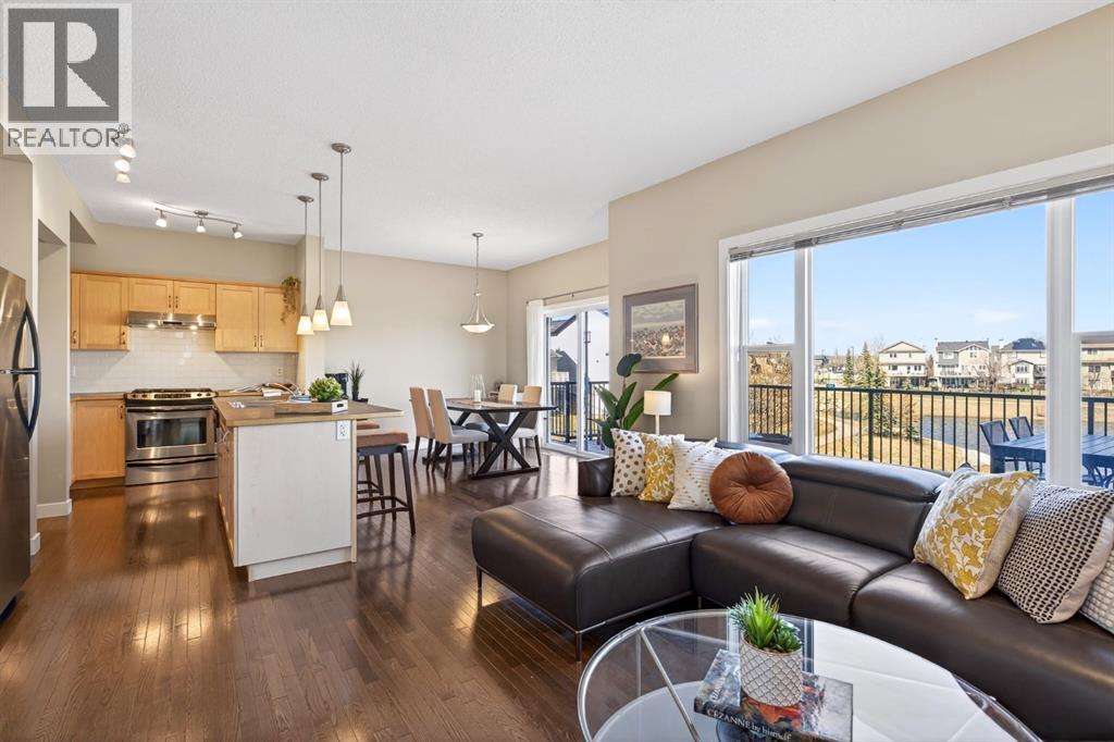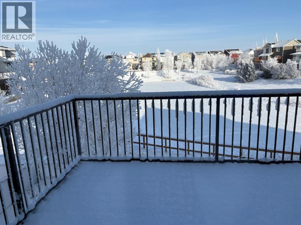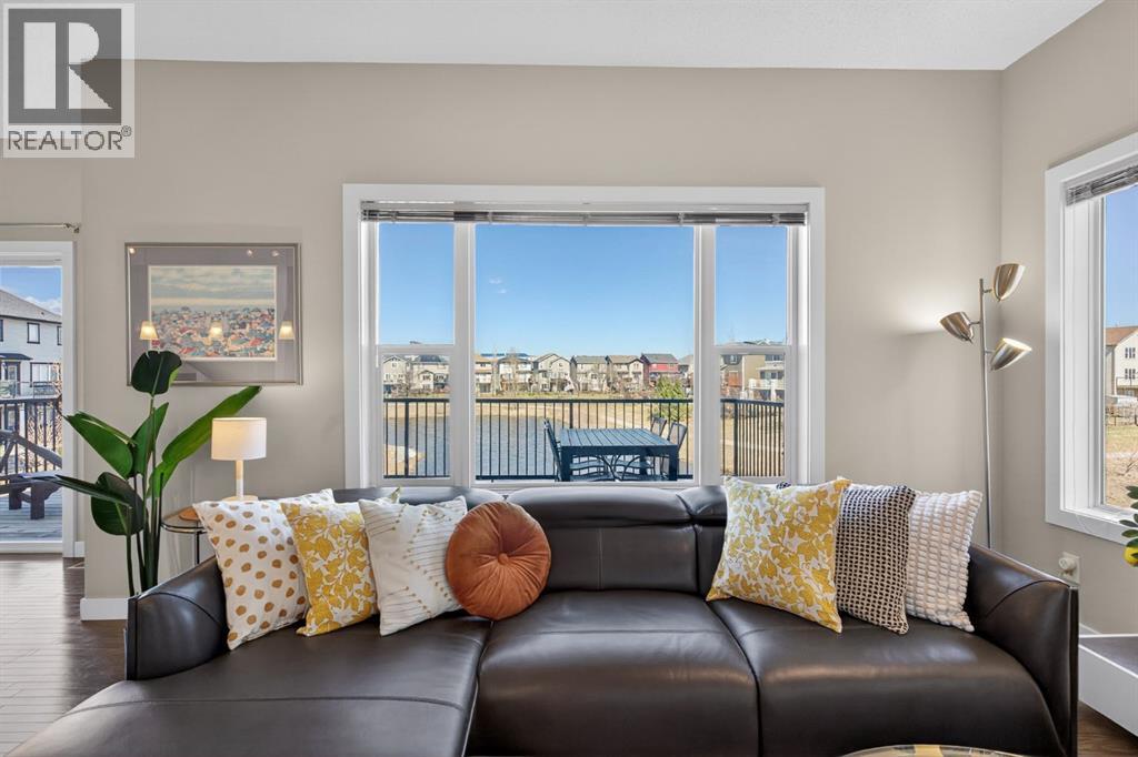 Imagine starting your morning with coffee on the deck, watching the light dance across the calm pond behind your home. Tucked onto a quiet cul-de-sac with a central island for extra parking, this beautifully maintained home offers a rare mix of privacy, views, and family-friendly living in the heart of Sagewood.Inside, the home is filled with natural light from front to back. On the main floor, the 9' ceilings on the main floor mean bigger front windows overlooking the open square (no home directly in front of you), while the back of the home captures peaceful pond views. The living room features a gas fireplace and large windows, creating a cozy space to relax while enjoying the scenery.The kitchen is made for everyday living, with tons of cabinetry, a large island with seating, gas range, and an oversized pantry conveniently located just off the garage entry. The dining area offers plenty of room to expand for holidays and gatherings.Upstairs you’ll find two spacious kids’ bedrooms, a main bathroom with double sinks, and a primary retreat that easily fits a king bed. The ensuite features double vanities, a large soaker tub with a view, and a separate shower.The fully finished walkout basement adds a massive rec space with a fresh bathroom, extra storage, and sliding doors leading to the lower patio. Above, the full-width deck offers room for both dining and lounging while overlooking the pond. Knowing this home has been incredibly well maintained will give you peace of mind... Located just steps from C.W. Perry School, ponds, pathways, soccer fields, and outdoor skating rinks, this home delivers the lifestyle Sagewood is known for — peaceful, connected, and perfect for families. (id:51989)