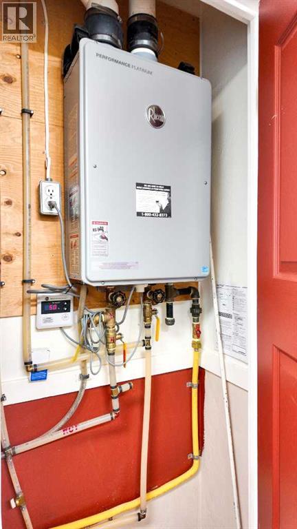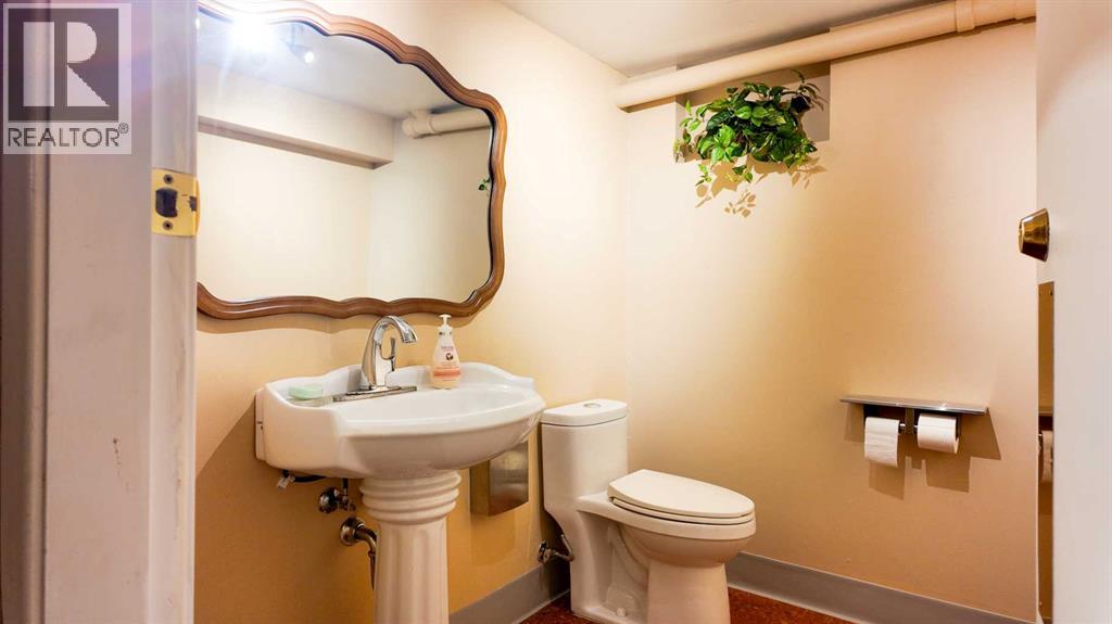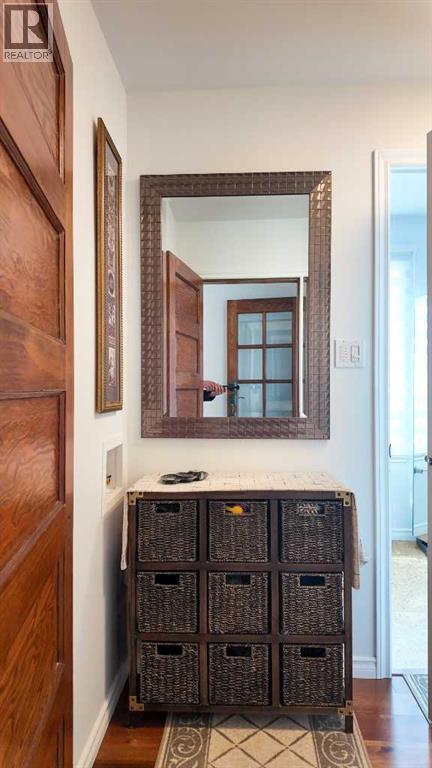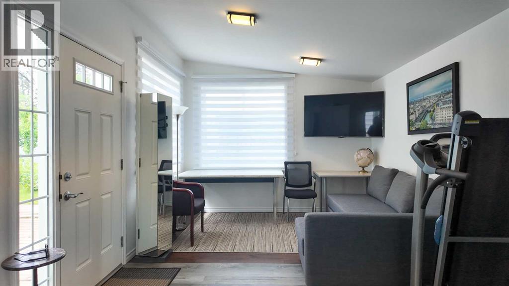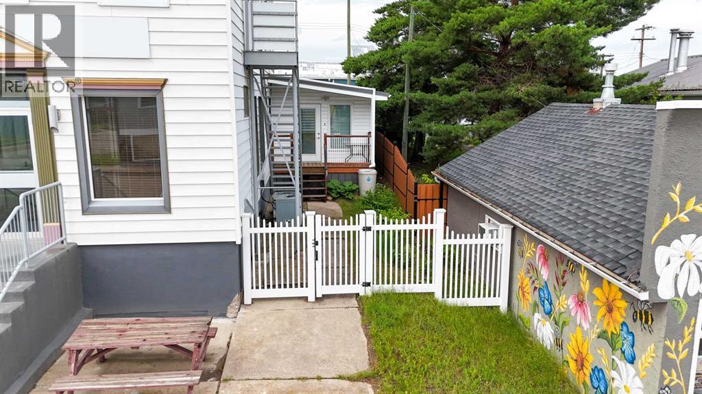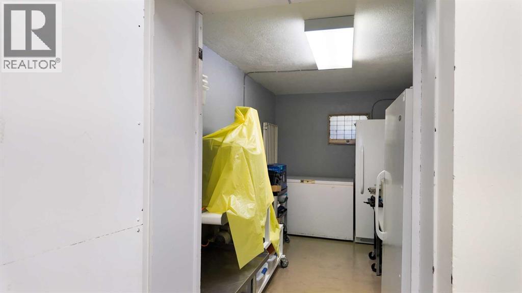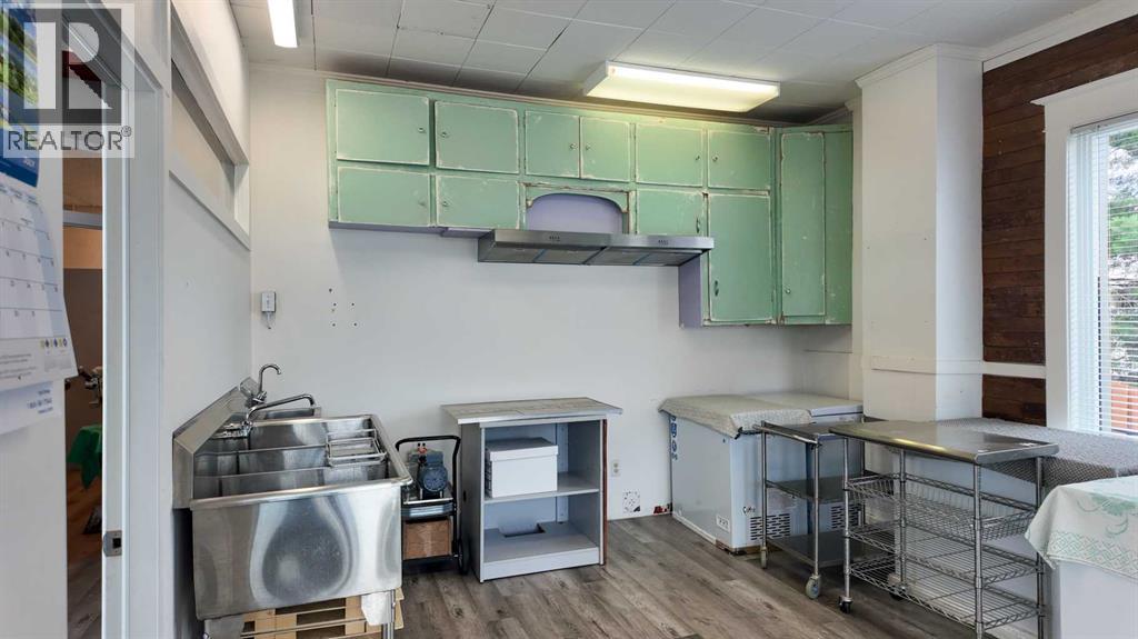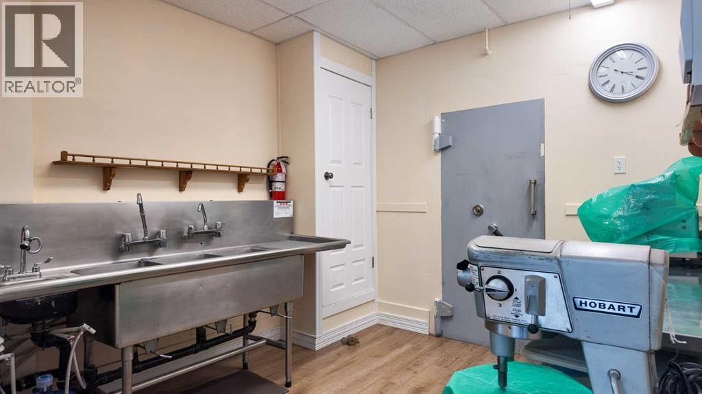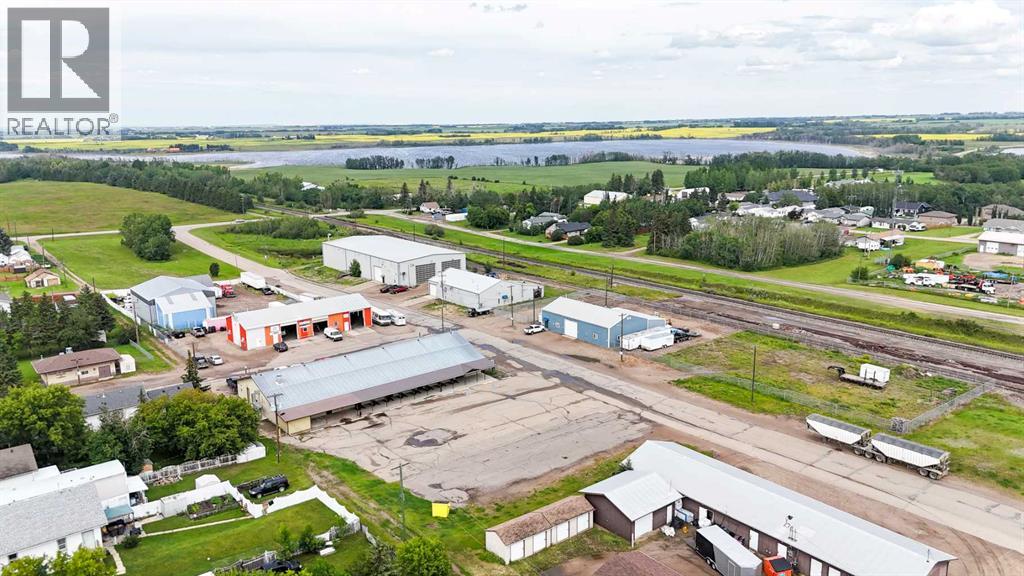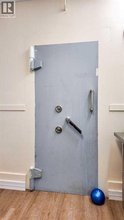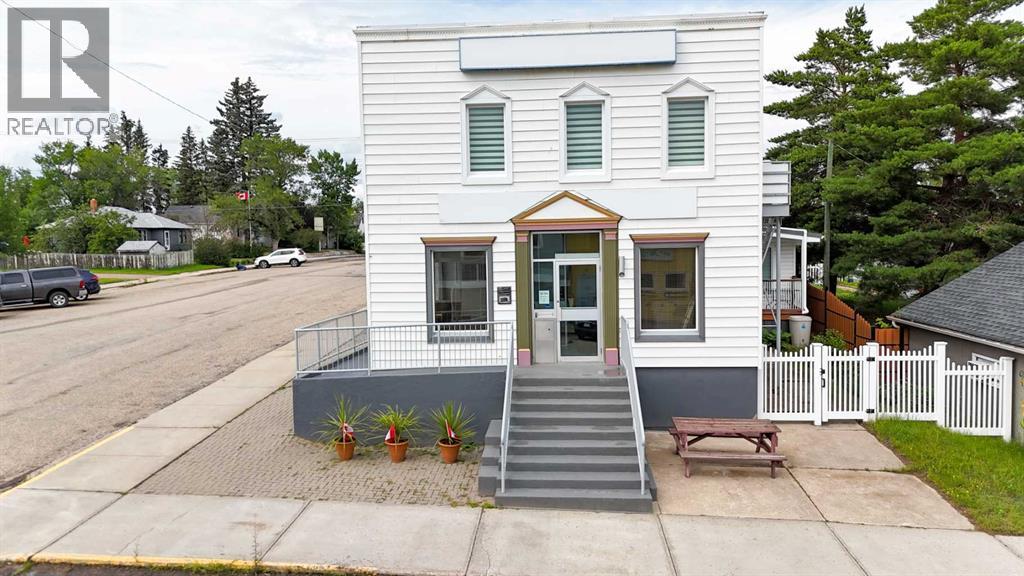 A rare opportunity to own a truly unique live-where-you-work property in the heart of Delburne. This well-maintained two-storey building sits on two full lots and offers a versatile mix of commercial and residential space, perfectly suited for a variety of uses. Originally built as a Bank of Montreal branch, the property retains its solid construction, full concrete basement, and even the original operational bank vault, while benefiting from extensive modern upgrades throughout. Ideally situated on Main Street, next to the Village office, Medical Centre, pharmacy, and other core amenities, the location offers exceptional visibility and convenience. Free parking is available at the front and rear of the property for both clients and guests. The main floor offers approximately 1,231 square feet of air-conditioned commercial space, featuring a flexible layout that includes a front office, multifunctional rooms, two former certified commercial kitchens, retail areas, and the secure vault. With three separate entry points , commercial grade laminate flooring— including an accessible front entrance with ramp, a backyard entry, and a private entrance to the residential quarters — the layout lends itself perfectly to retail, professional services, hospitality, or other business ventures. The full basement provides even more usable space, including laundry facilities, a half washroom, finished rooms, and a secure, lockable concrete storage area ideal for inventory or records. The upper level is fully renovated to the studs with a contemporary finish and a smart layout. On this floor there is engineered flooring with hardwood on the stair runs. Here you’ll find two bright bedrooms, an office/den, plus a beautifully finished full bathroom with onyx tiles and cork flooring, rough-in for laundry, and two walk-in closets. The updated kitchen is open to a spacious dining area, which flows to the large living room featuring a sunny balcony with exterior stairs. Tilt-and-tu rn windows throughout the upper level flood the space with natural light. Outside, a big deck connects to a sunroom/veranda overlooking the fully fenced backyard with fruit trees, garden plots, and ample off-street parking. The oversized detached garage is finished on the exterior with wood siding and includes a workbench, shelving, and room for a large vehicle with direct access to the street. The main building exterior is finished with vinyl siding. With modernized electrical, plumbing, windows, and 200-amp service already completed, this property combines peace of mind with endless flexibility. Live on site, operate your business. — the possibilities are truly exceptional. Where else can you live in such history, with impressive updates, and at this price, come view this today!! Plus, to make it even more attractive, seller is willing to provide seller financing on the right deal. (id:51989)