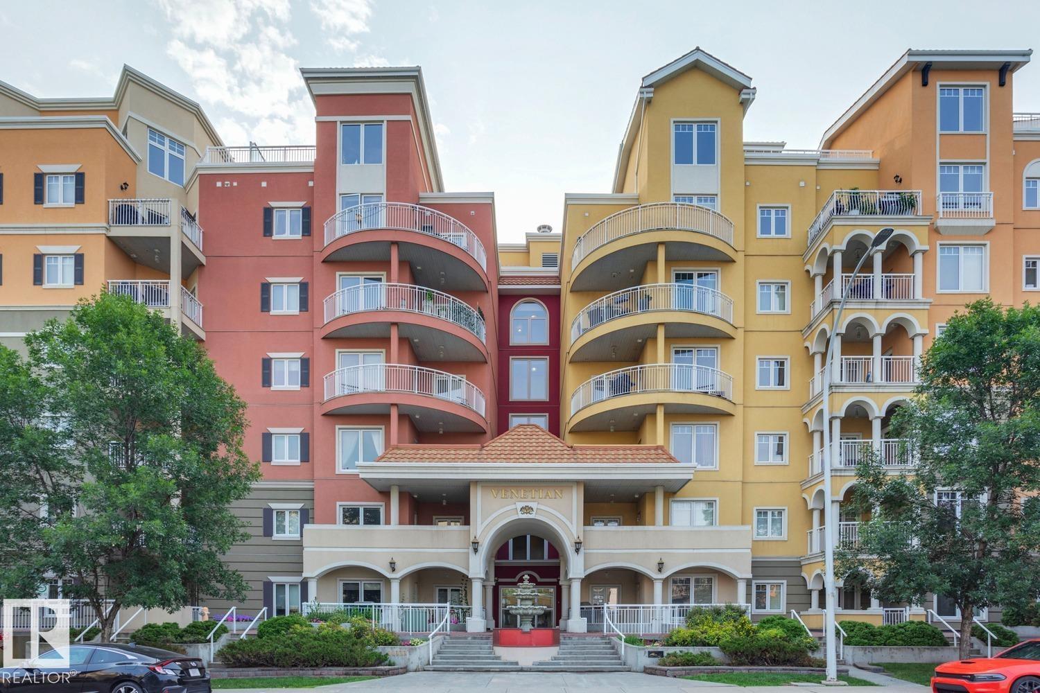 Enjoy being in the heart of it all, without HEARING it all! The Venetian is one of Edmonton's few low-rise, CONCRETE & STEEL buildings, greatly reducing any noise transfer between units (one of the biggest concerns of condo living). This 2 bed/1 bath unit is perfect for roommates with bedrooms on opposite sides of the unit (or creating an office space). You'll find quality materials throughout incl. engineered hardwood (also in bedrooms), GRANITE & CORIAN countertops, Kitchen Craft cabinetry & S/S appliances. Add'l highlights: AIR CONDITIONING, GARBURATOR & IN-SUITE LAUNDRY. TITLED underground parking is included; additional bike & tire storage available along with an on-site gym. This property is well-managed with an on-site property manager and is just steps from MacEwan University, public transit (including the new LRT line), shopping & the Ice District. Previously rented for 10+ years consistently. (id:51989)