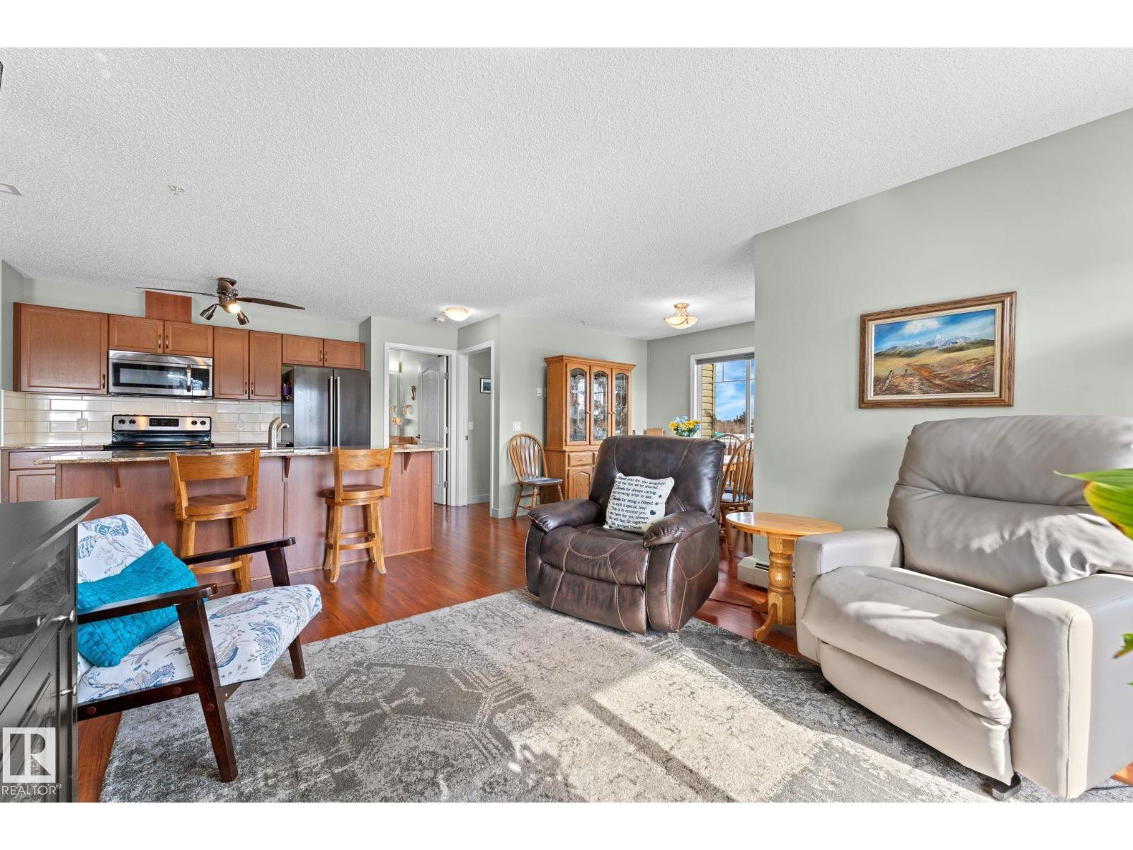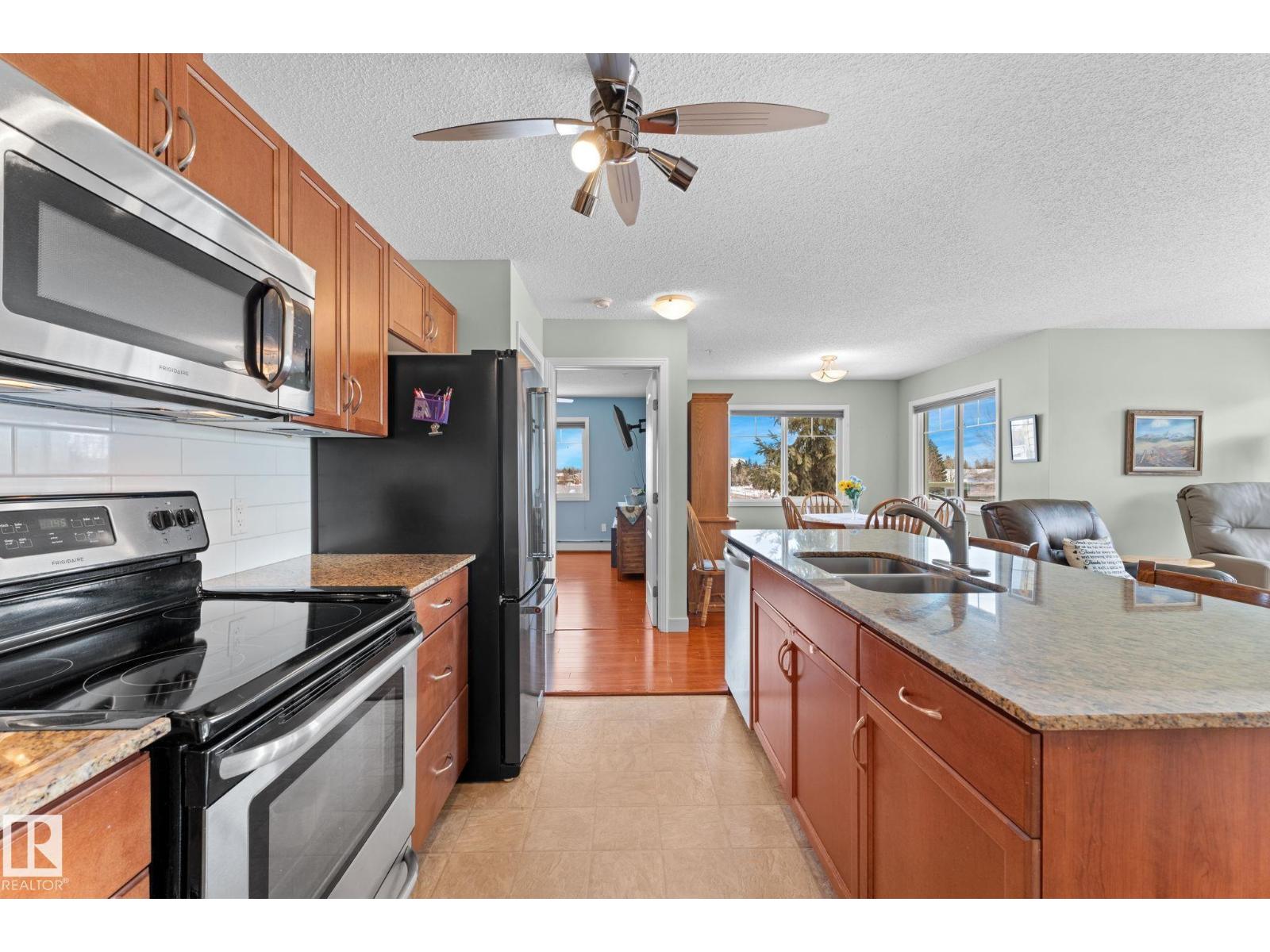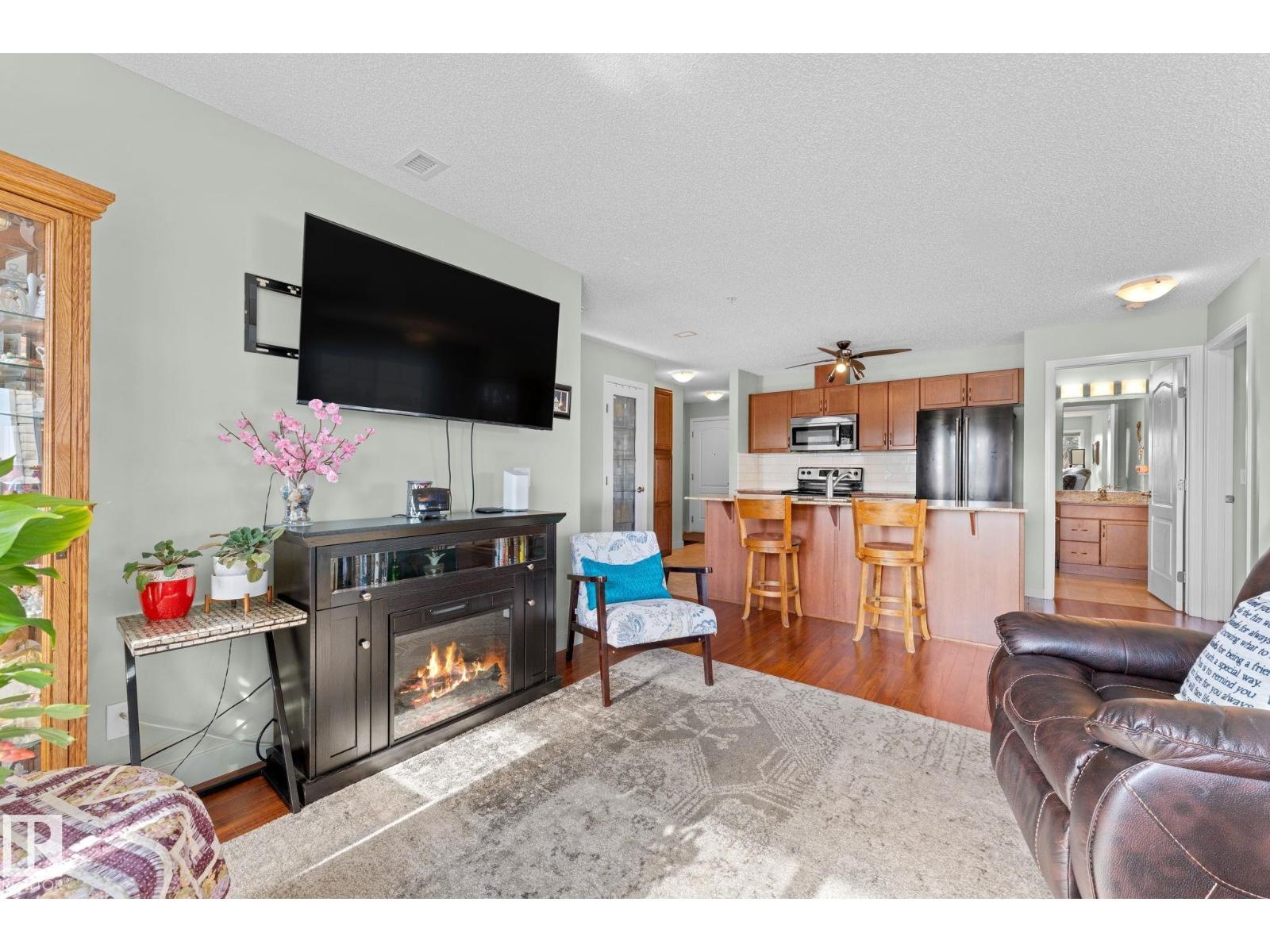 Welcome to this bright corner unit condo in Baranow, featuring 2 bedrooms and 2 full bathrooms with a functional, open concept layout. Large windows fill this well-maintained home with tons of natural light, creating a warm and inviting living space. The standout feature is the spacious wraparound balcony, perfect for relaxing, entertaining, or enjoying your morning coffee. The kitchen offers great functionality and includes newer appliances, including the refrigerator and dishwasher, for added convenience. Both bedrooms are well-sized, and the primary bedroom features its own private ensuite and walkthrough closet. This unit also includes two titled parking stalls and a titled storage unit, providing excellent convenience and extra space. Conveniently located close to schools, shopping, and everyday amenities, this home is ideal for first-time buyers, downsizers, or investors. (id:51989)