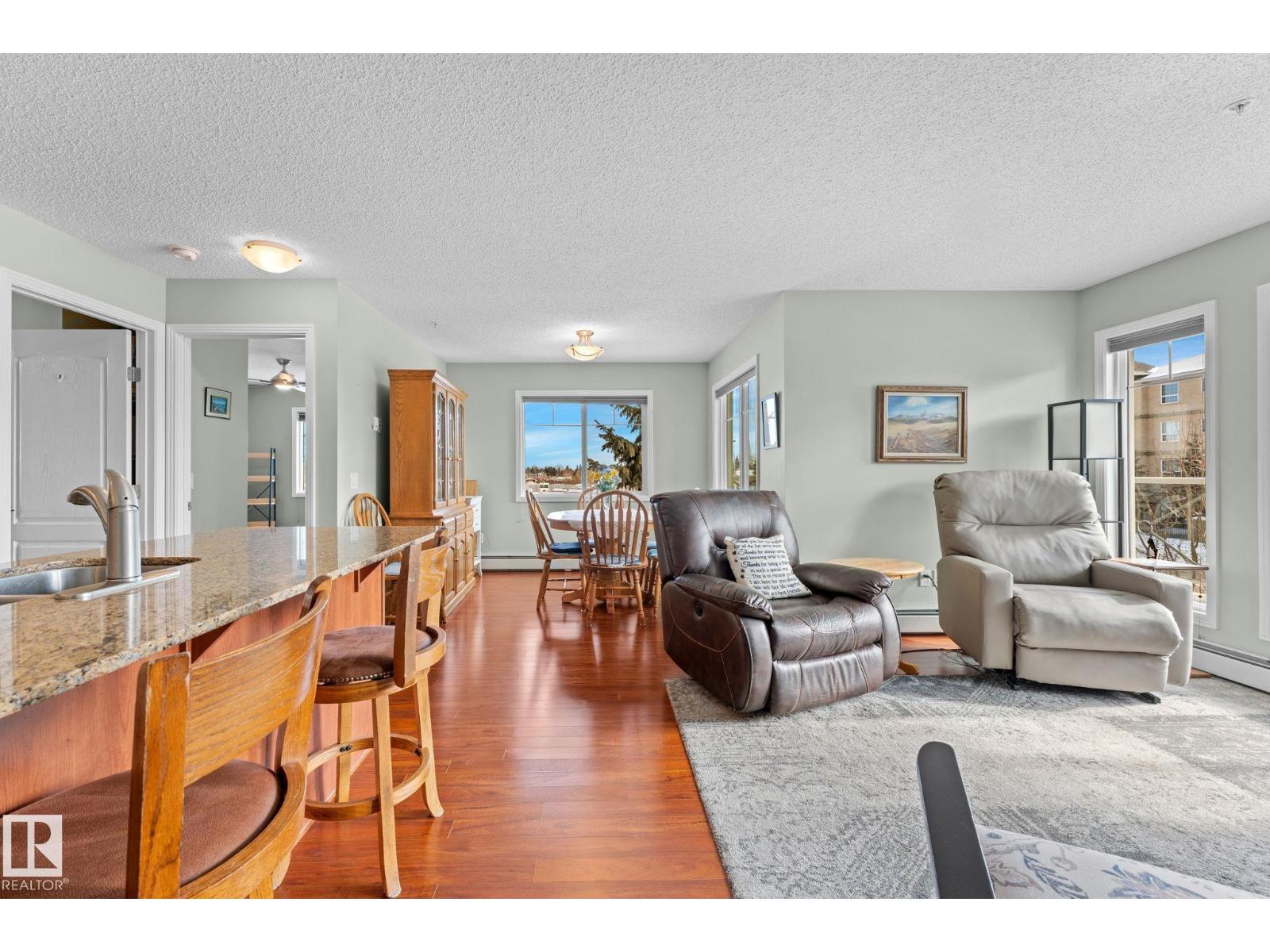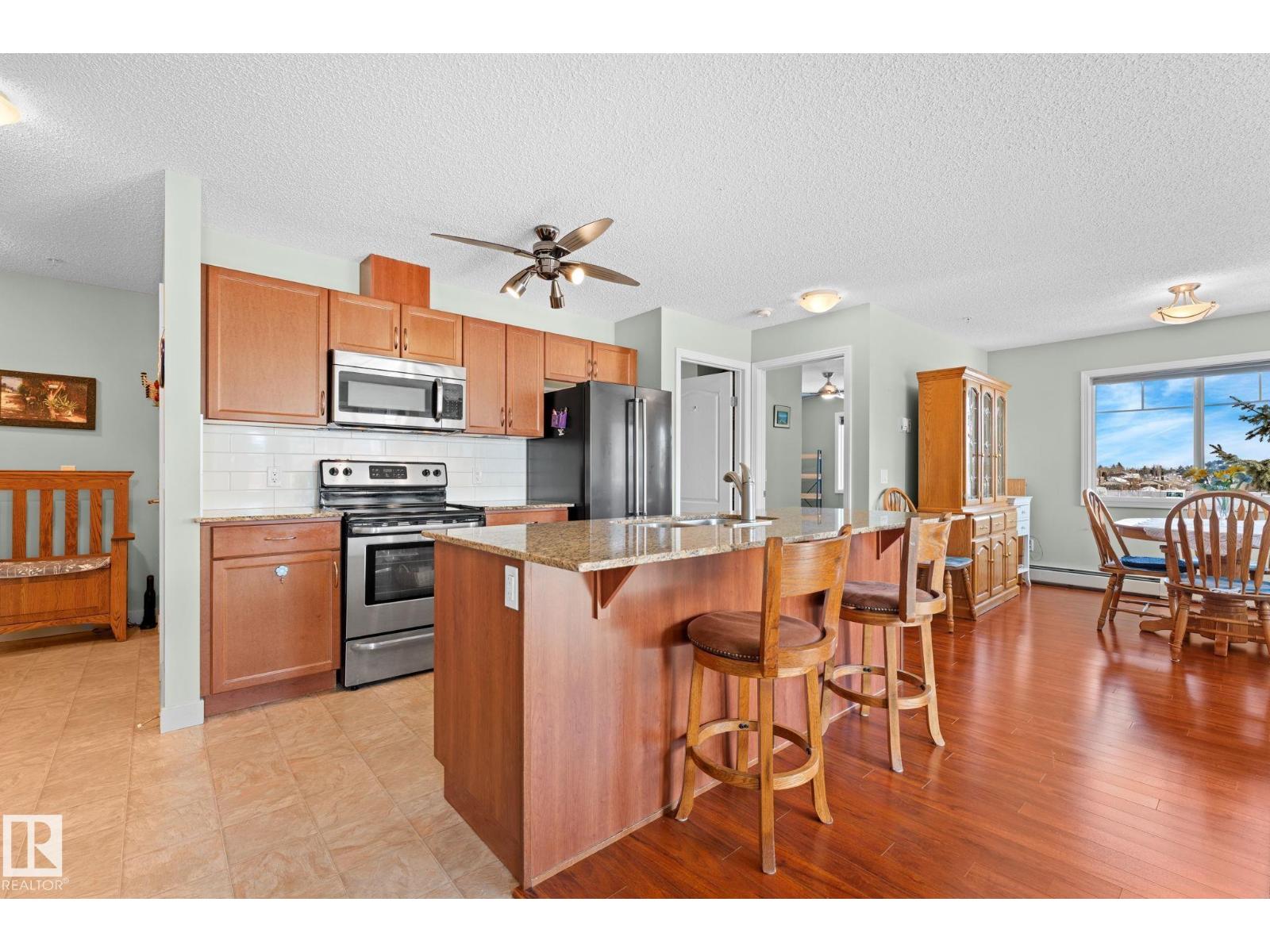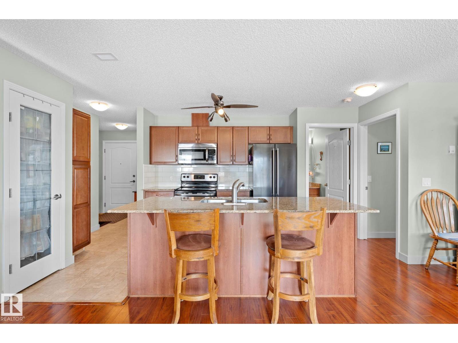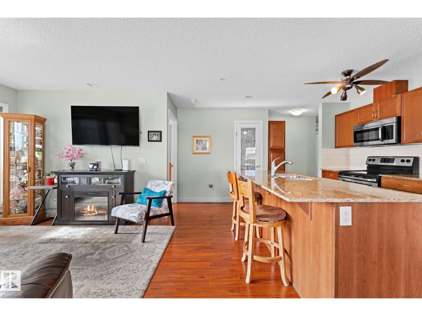 Welcome to this bright corner unit condo in Baranow, featuring 2 bedrooms and 2 full bathrooms with a functional, open concept layout. Large windows fill this well-maintained home with tons of natural light, creating a warm and inviting living space. The standout feature is the spacious wraparound balcony, perfect for relaxing, entertaining, or enjoying your morning coffee. The kitchen offers great functionality and includes newer appliances, including the refrigerator and dishwasher, for added convenience. Both bedrooms are well-sized, and the primary bedroom features its own private ensuite and walkthrough closet. This unit also includes two titled parking stalls and a titled storage unit, providing excellent convenience and extra space. Conveniently located close to schools, shopping, and everyday amenities, this home is ideal for first-time buyers, downsizers, or investors. (id:51989)