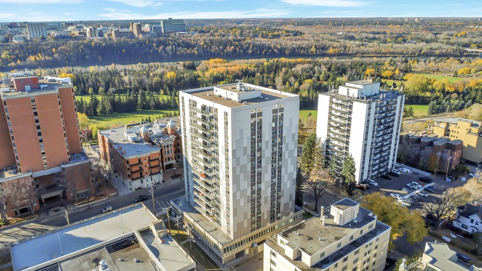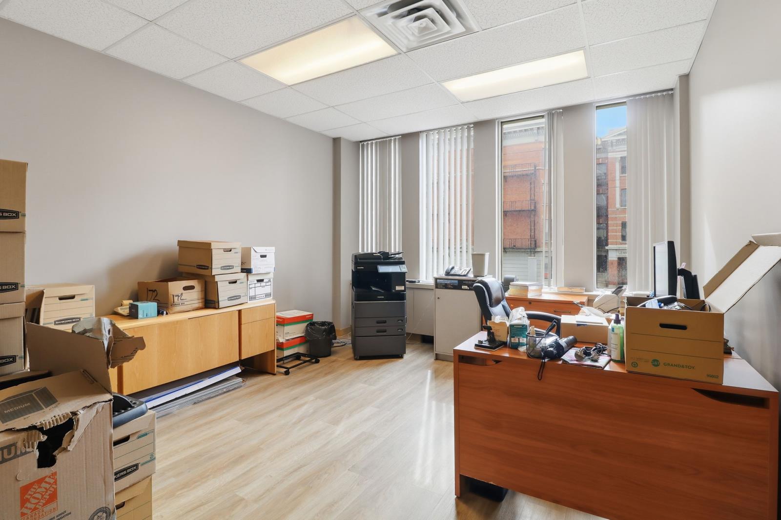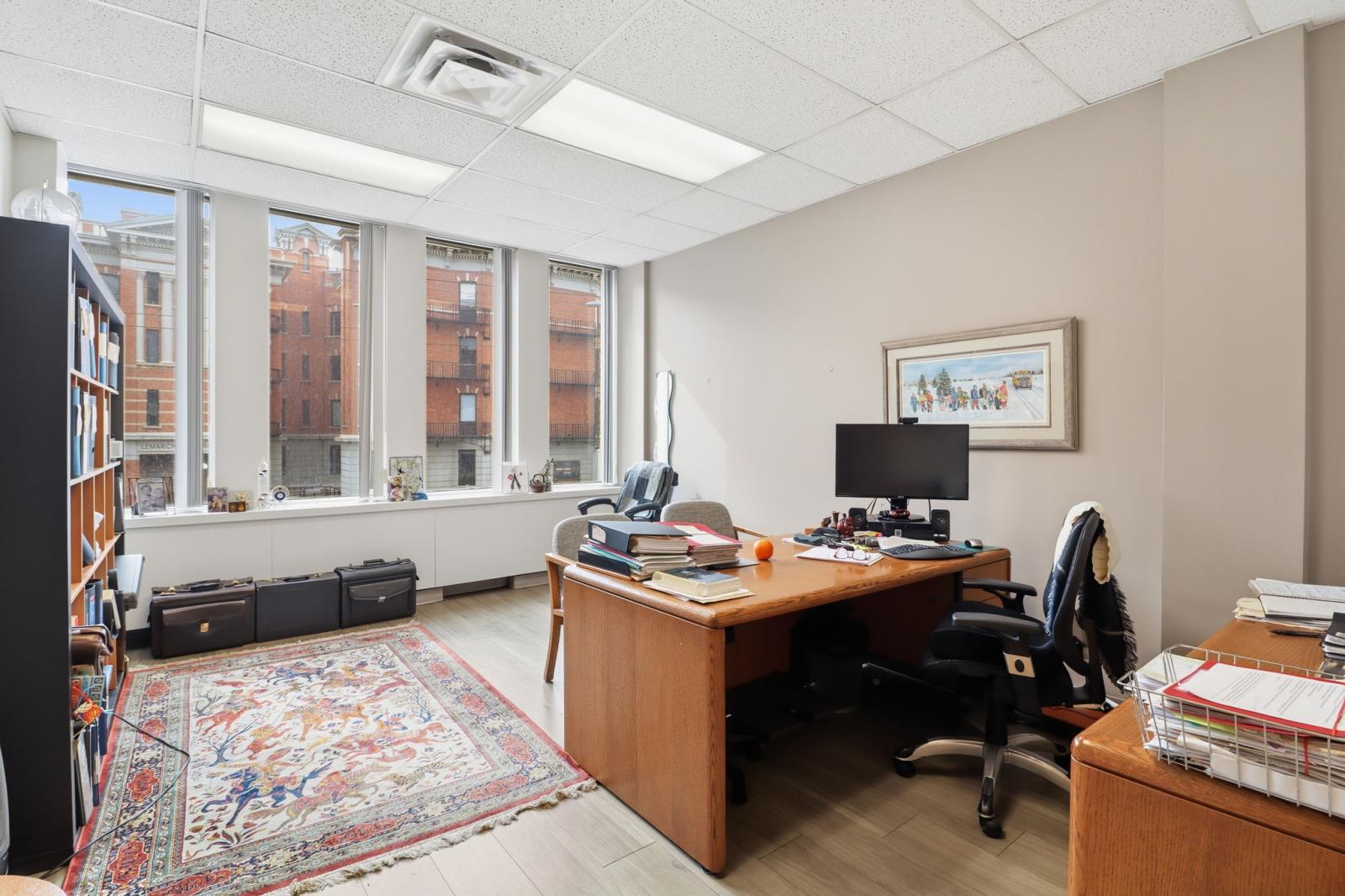 Exceptional opportunity to own a premium commercial office space in the heart of Downtown Edmonton. Currently operating as a law office, this versatile property is ideally suited for a wide range of professional uses including legal, accounting, consulting, medical, or creative firms.Recently upgraded flooring to luxury Vinyl plank throughout. Move in ready for the next business to takeover this immaculate and spacious unit. Prominently positioned at the corner of 100 Avenue and 115 Street, directly across from the historic LeMarchand Mansion and Grant Notley Park, this mixed-use building offers outstanding visibility, accessibility, and prestige.Purchase to pay less than rent and build equity. The well-designed layout includes:Seven generously sized private officesA spacious boardroom ideal for meetings and presentationsSpace for a fully equipped kitchenAn inviting reception areaA central open workspace suitable for additional desks or modular workstationsExpansive windows in every office flood the space with natural light, creating a bright and productive work environment. The building also features its own private parkade, providing convenient on-site parking for both staff and clients.With residential units above, the property benefits from the energy and convenience of a vibrant mixed-use setting. This is a rare opportunity to secure a beautifully appointed office space in one of Edmonton’s most desirable downtown locations. (id:51989)