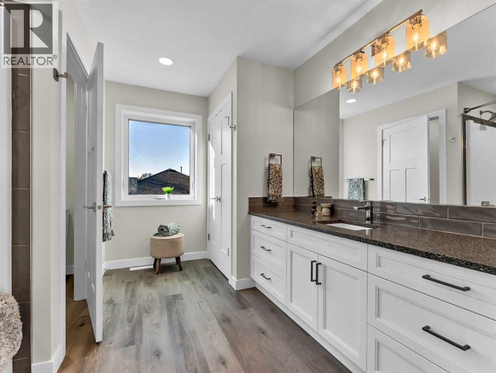Stunning brand-new infill ½ duplex in a prime riverside location! Offering 1,770 sq ft of thoughtfully designed living space, this 2-storey home with double attached garage combines modern style with exceptional functionality. Enjoy the flexibility of main-floor living, ideal for those with mobility or stair considerations, featuring an open-concept layout and a spacious primary bedroom on the main level complete with a walk-in closet and elegant ensuite showcasing a large tiled shower.The upper level hosts two additional large bedrooms, a beautiful 5-piece bath, and a versatile flex space perfect for a home office, media area, or reading nook. Quality upgrades throughout include a full appliance package, hard-surface flooring, custom cabinetry, ICF party wall for superior soundproofing, and durable Hardi-board siding. Fully landscaped and ideally located with excellent walkability to the downtown core, plus the added value of future new development directly across the street. An exceptional opportunity to own a modern infill in one of the city’s most desirable riverside settings. (id:51989)