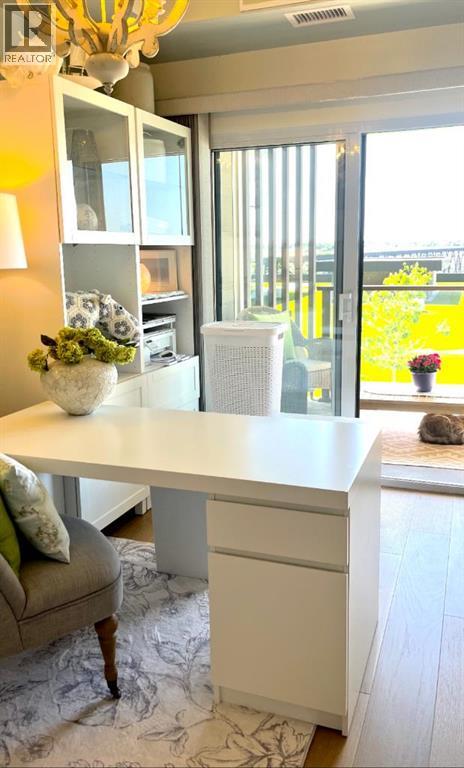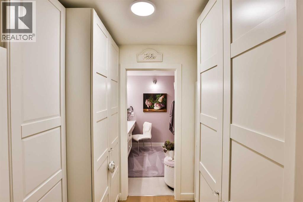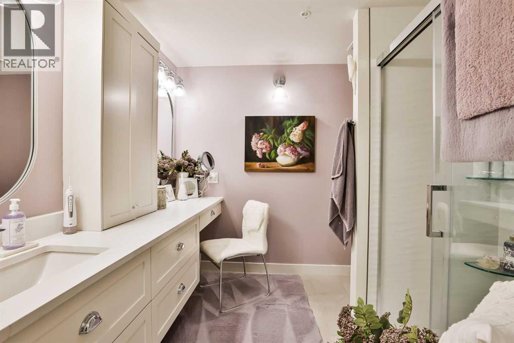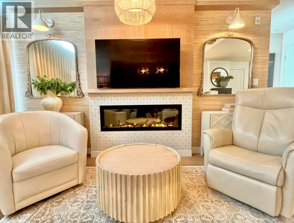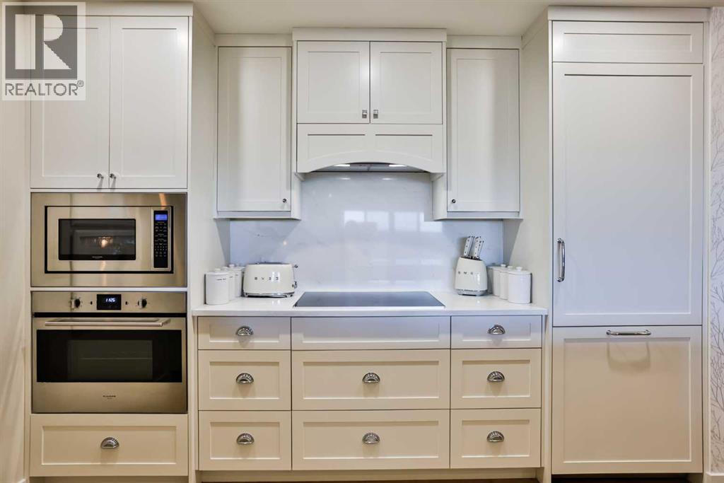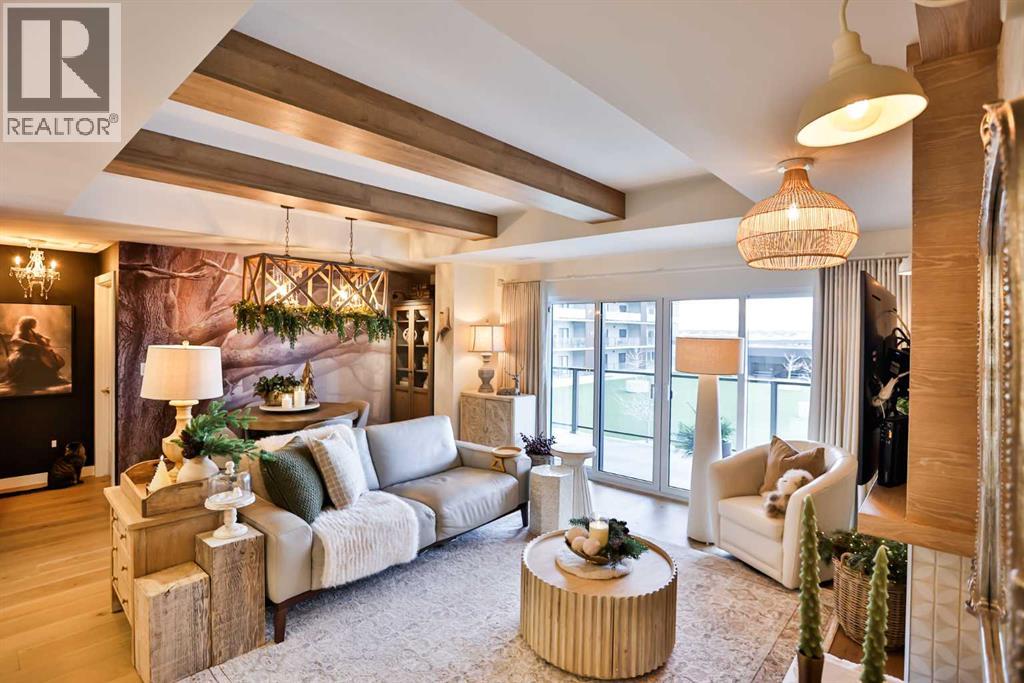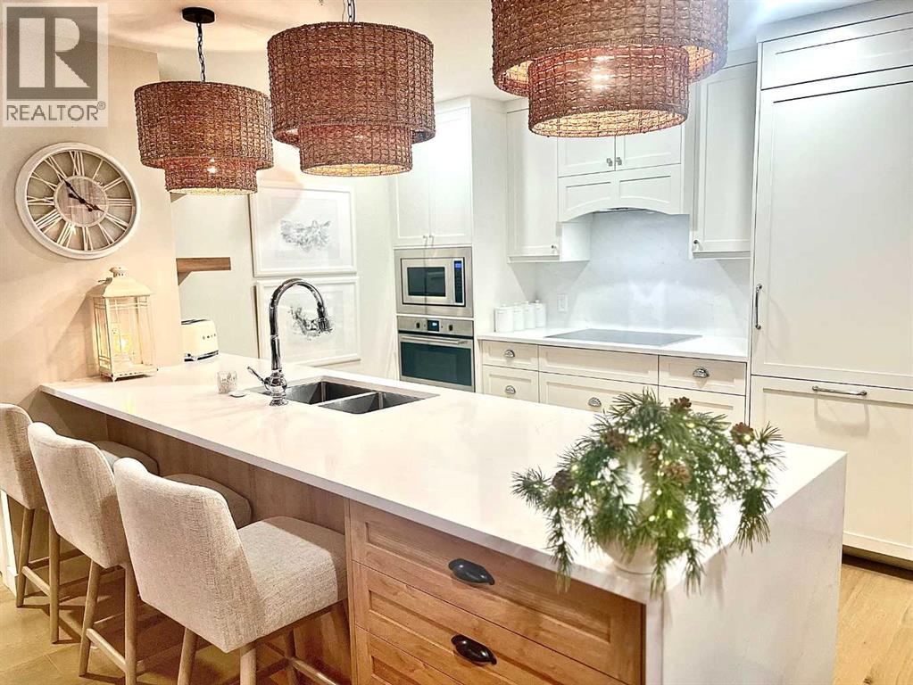 Luxury condo living with stunning views at 102 Scenic Drive. This beautifully decorated, high-end 2 bedroom, 2 bathroom residence offers over $40,000 dollars worth of upgrades to create a truly amazingly appointed and unique home. The inviting living space features a lovely dining room and living room space that blend together seamlessly featuring a built-in fireplace and large custom wood beams, all overlooking the courtyard. This condo is decorated in warm neutral colors, bleached wood laminate floors, and custom paint and wallpaper features in every room. The custom kitchen showcases off-white shaker cabinetry, custom paneled fridge and dishwasher, built-in wall oven and microwave, and an induction cooktop with a custom hoodfan. The upgraded fridge offers water and ice dispenser for true convenience. The finishing touch to this beautiful kitchen is the crisp quartz countertops with a custom quartz waterfall edge on the peninsula and a full seamless quartz backsplash behind the stove. The gorgeous master suite has a large walk through closet with custom built-in cabinets, a glass tiled shower, vanity with make-up desk and extra tall vanity cabinet, quartz countertop, and sliding glass doors to the balcony. The second bedroom can function either as a guest bedroom or your personal home office, featuring tall floor to ceiling custom cabinets and sliding glass doors to the balcony. The expansive balcony offers an amazing view and access from every room in the condo. The underground parking and storage unit included with this condo are perfectly located close to the elevator to add everyday ease. Enjoy exceptional building amenities including a gym, sauna, theatre, golf simulator, car wash and more. A rare opportunity to enjoy luxury, views, and the convenience of lock-and-leave living, in one of Lethbridge’s most desirable locations. Full list of all custom upgrades available upon request. Contact your favorite real estate agent to view. (id:51989)