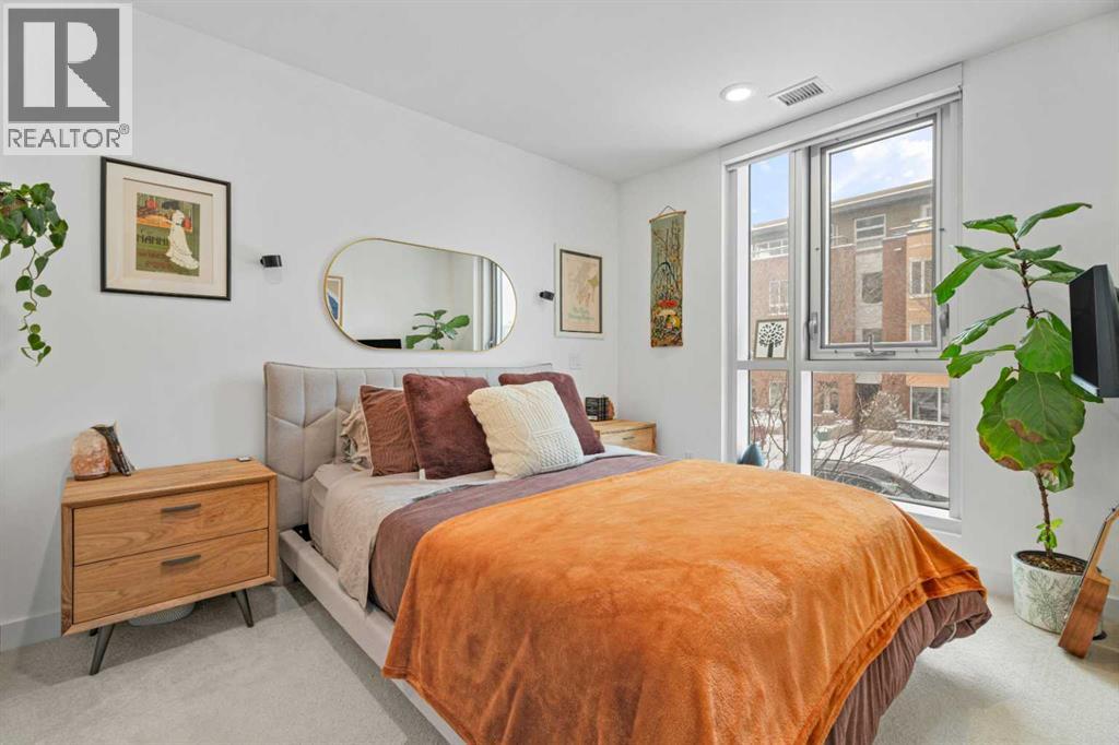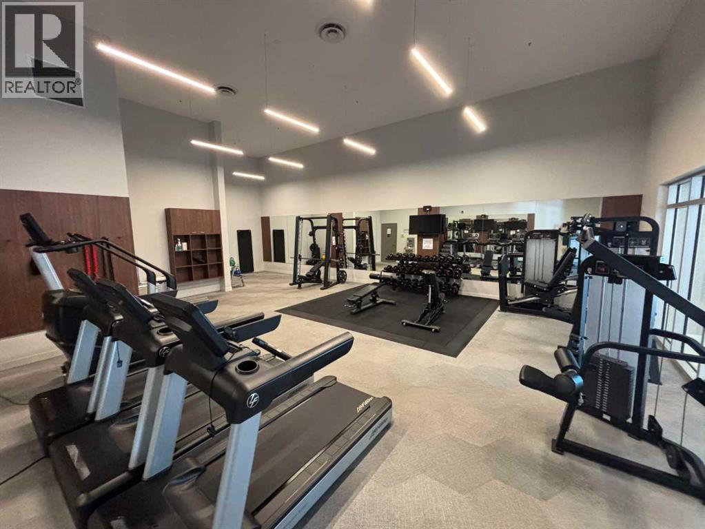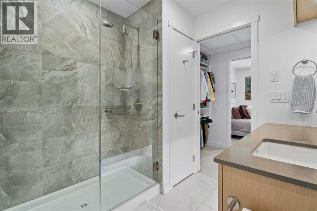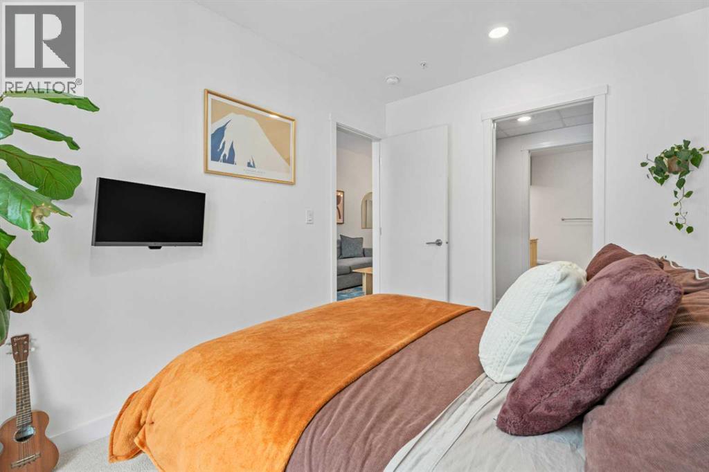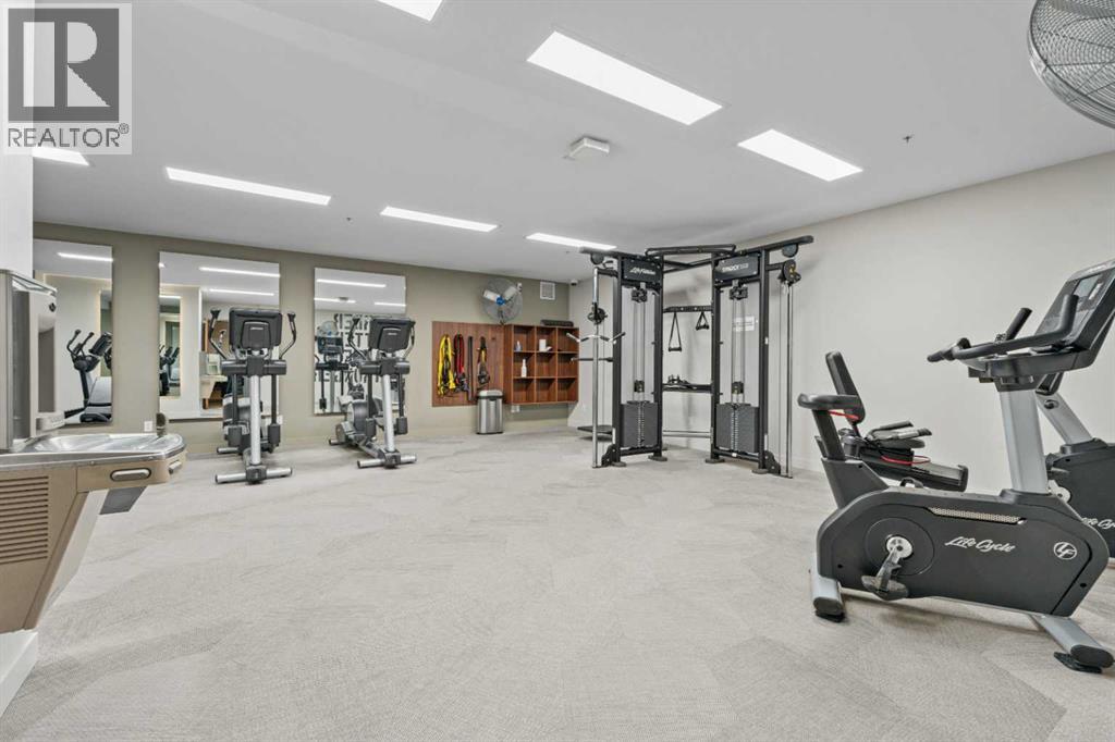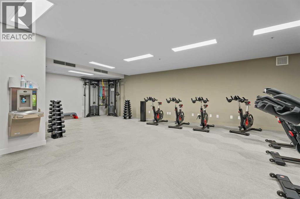 Welcome to Radius, an amenity-rich building offering something for every lifestyle, located in the desirable neighbourhood of Bridgeland. This spacious and extensively upgraded 2-bedroom, 2-bathroom unit features modern finishes and a bright, inviting atmosphere with a soft contemporary design. The well-appointed kitchen includes a built-in oven, gas range, ample counter space, and quality appliances, flowing seamlessly into the open-concept dining and living area complete with beautiful custom built-ins for storage and media. The generously sized primary bedroom offers a walk-in closet with California Closets organizers and a stylish ensuite with automatic floor lighting, a large vanity, and a walk-in shower. The versatile second bedroom is equipped with built-in storage and a Murphy bed with integrated desk attachments, making it ideal for guests or a functional home office. Additional highlights include a rare oversized in-suite storage and laundry room, along with a well-appointed 4-piece main bathroom. Residents enjoy access to exceptional building amenities including concierge and the main gym (1st floor), delivery room (2nd floor), secondary gym (3rd floor), yoga/barre room (4th floor), spin room (5th floor), rooftop patio and gardens with stunning city views (7th floor), dog wash station and bike storage (P1). This unit also comes with titled underground parking, and a dedicated storage room, offering convenience and comfort in one of Calgary’s most vibrant communities. (id:51989)