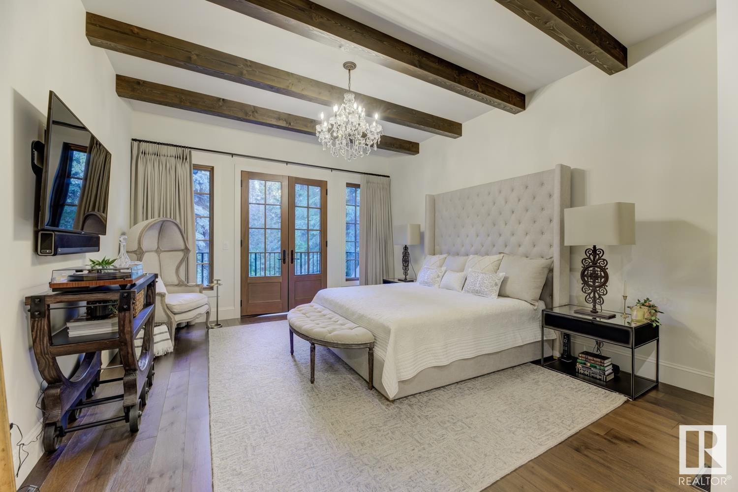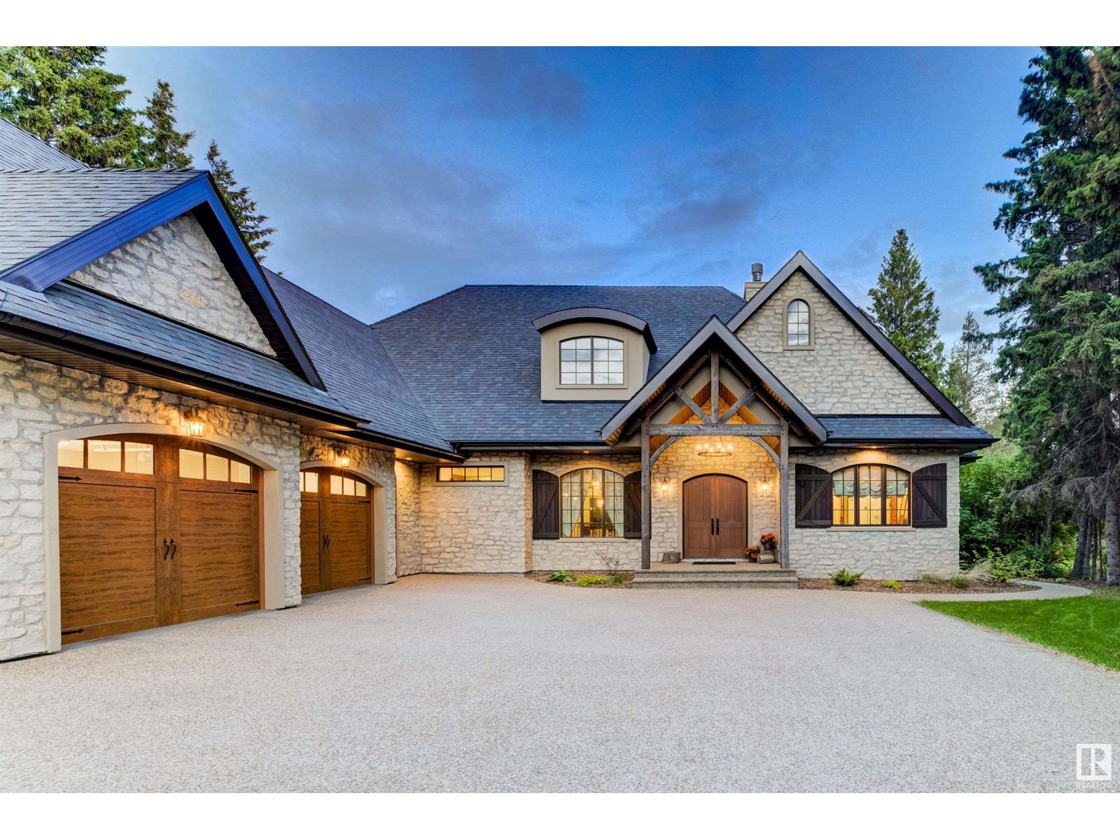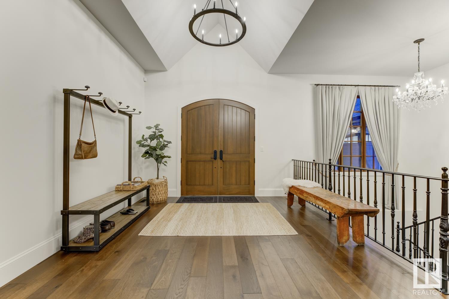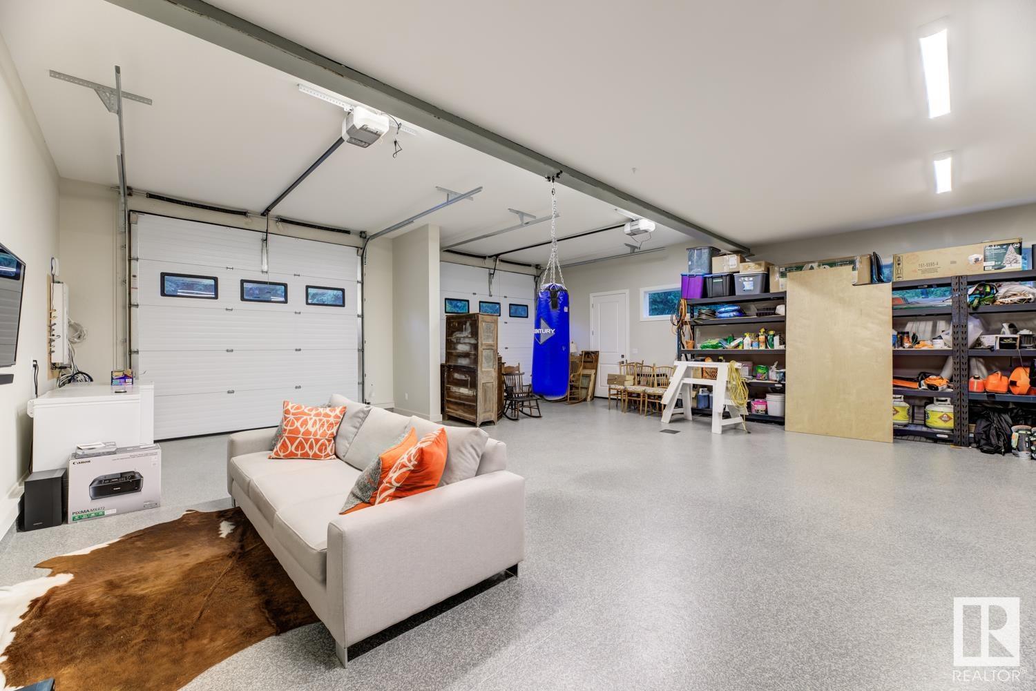 Reminiscent of the stone farmhouses of Burgundy France, experience elegant modern living paired w/ historical charm & exquisite European influence in a private, picturesque setting w/ this one-of-a-kind, executive estate bungalow, nestled on two meticulously landscaped acres in Sturgeon County, mere minutes from both Edmonton & St. Albert. Crafted by Heredity Homes & designed by Nadia Li of Go For Décor, this home blends historical charm w/ modern comfort. Exterior features include natural stone walls & Douglas Fir beams, while inside, smoked white oak floors, wrought iron details, & Belgian linen window treatments create a luxurious ambiance. A centerpiece wood-burning fireplace & vaulted ceilings add grandeur, complemented by a gourmet kitchen w/ Lacanche oven & Miele appliances. The primary suite offers a private deck & spa-like en-suite, while the finished basement feat. 2 bedrooms, sauna, media room, gym, & wet bar. Outside, a carriage house w/ living space & expansive views completes this property. (id:51989)