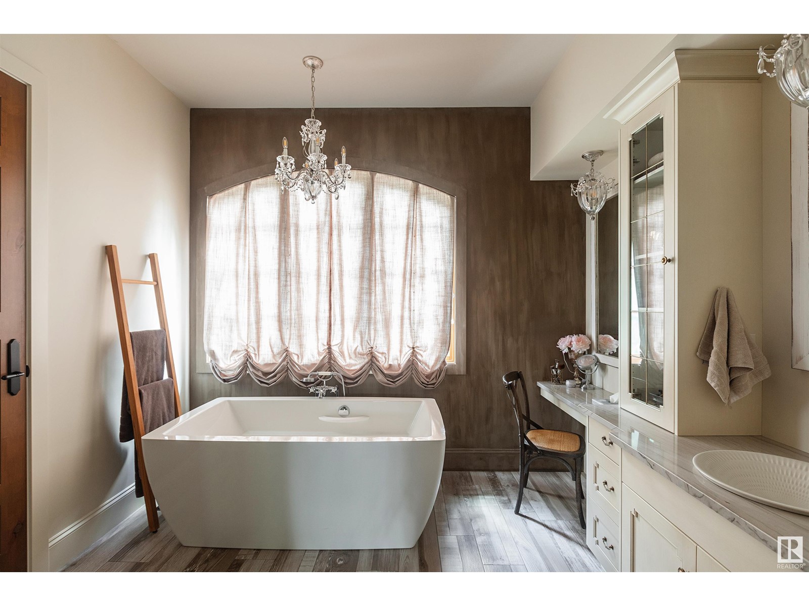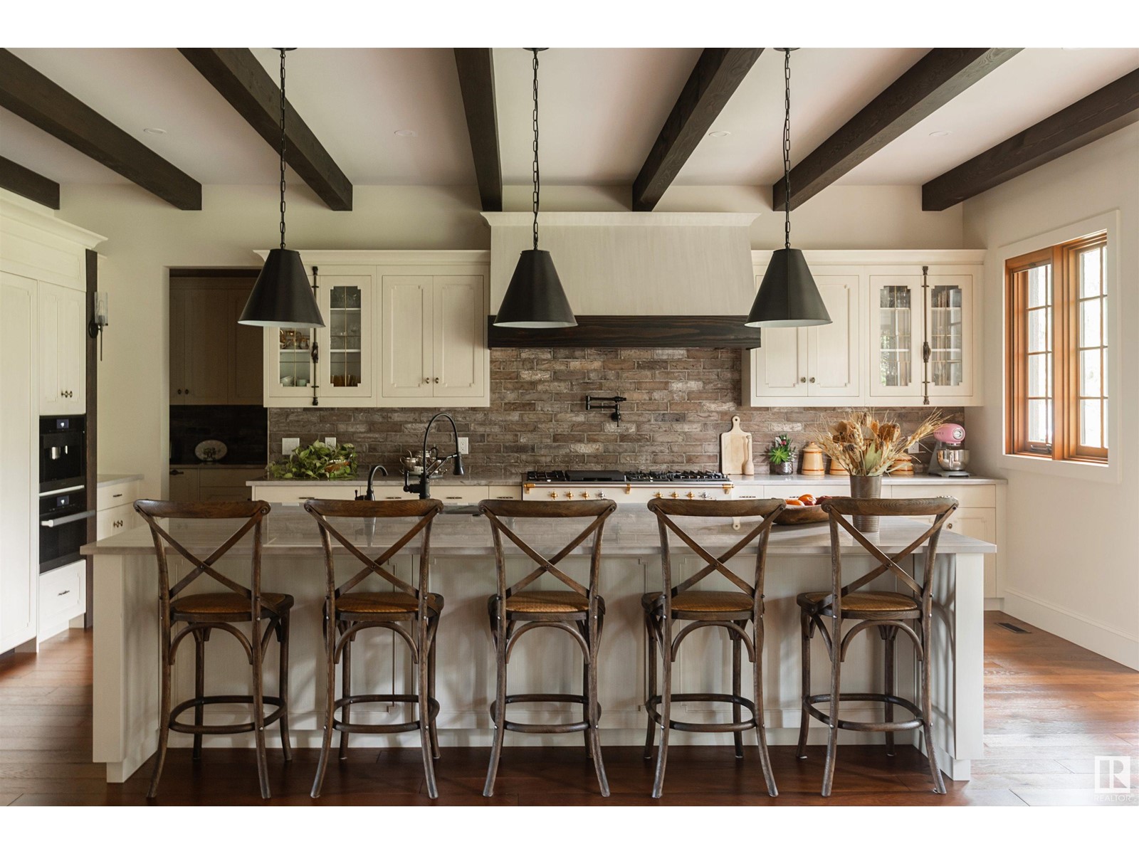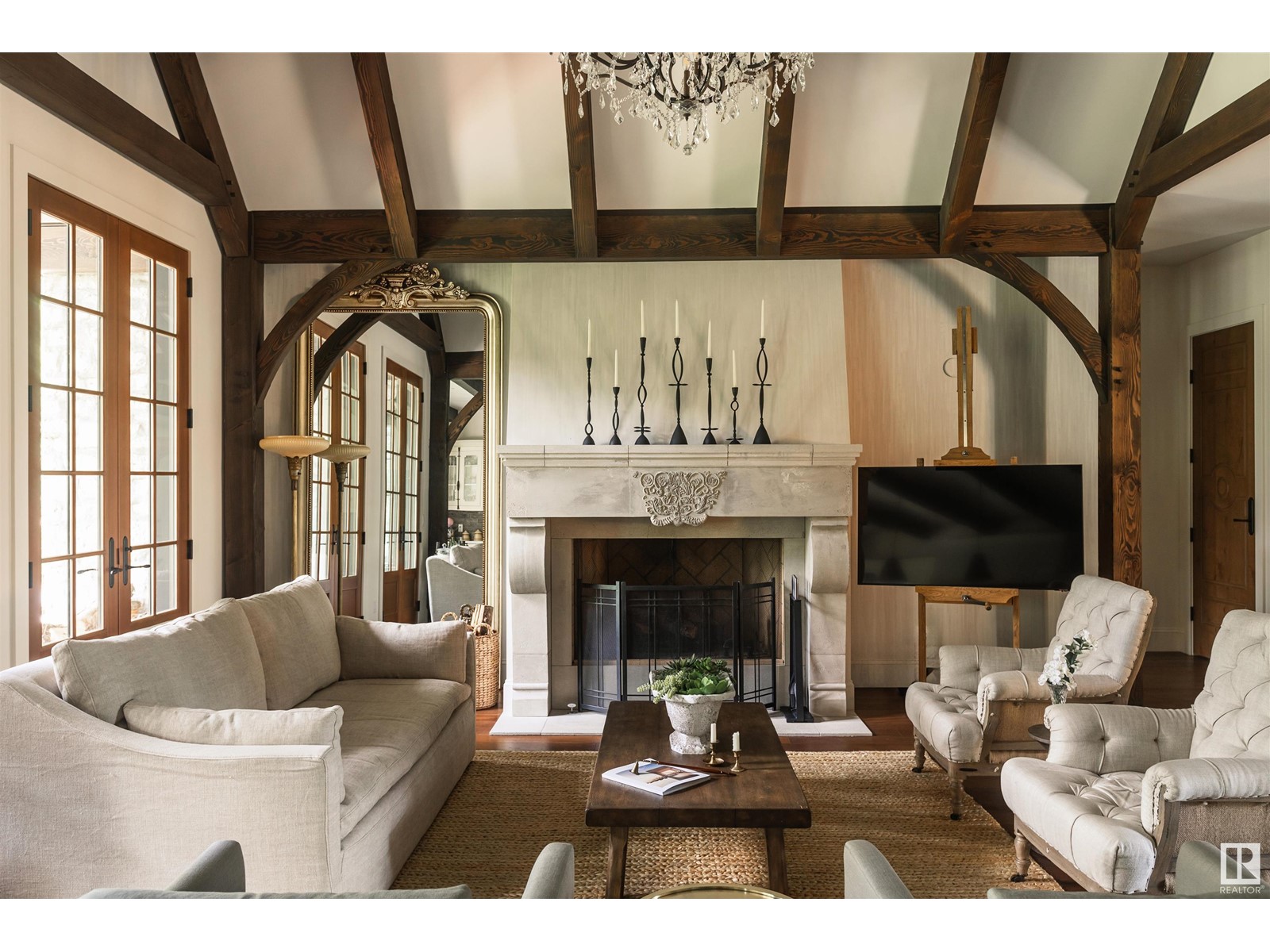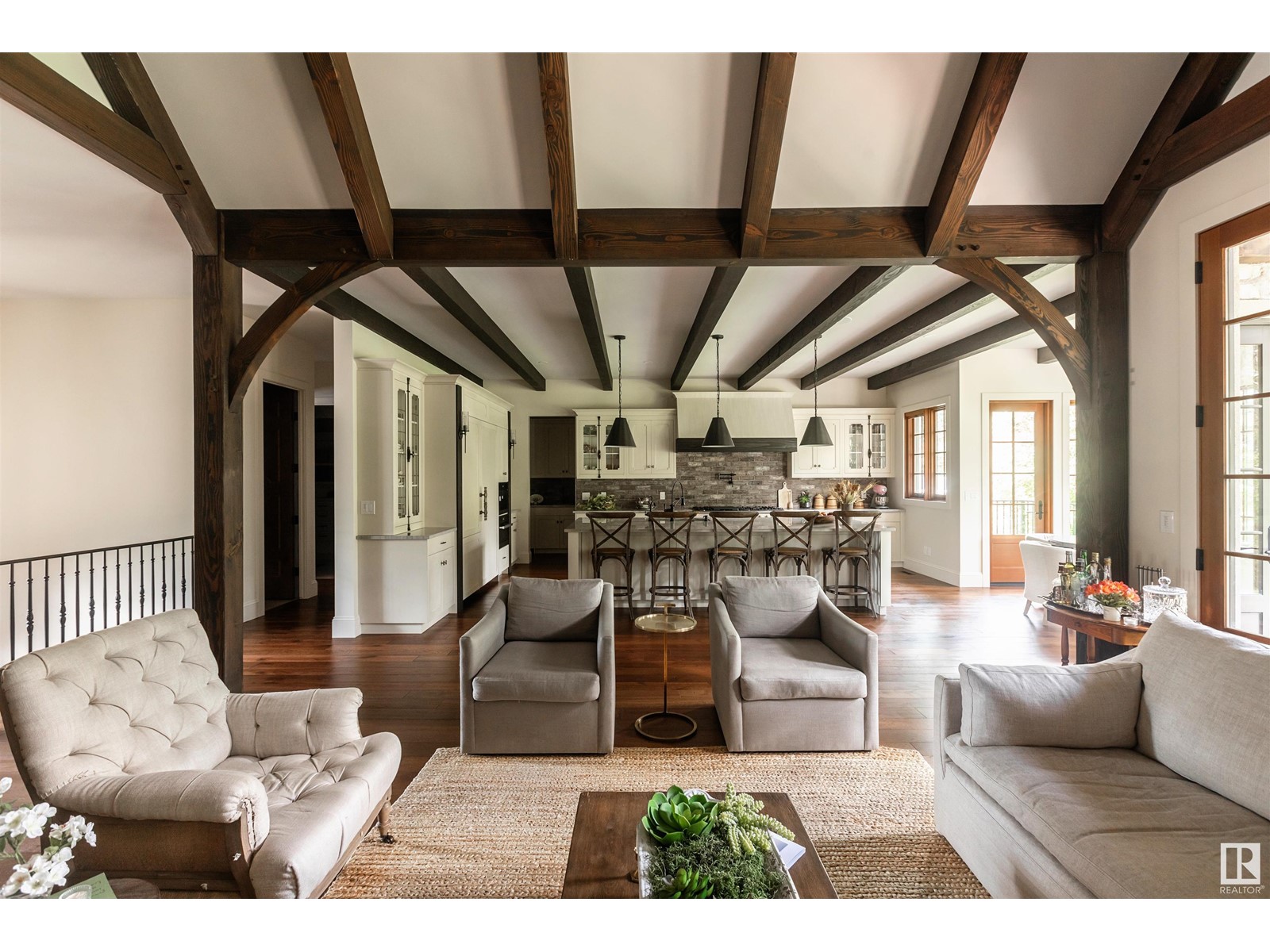 Reminiscent of the stone farmhouses of Burgundy France, experience elegant modern living paired w/ historical charm & exquisite European influence in a private, picturesque setting w/ this one-of-a-kind, executive estate bungalow, nestled on two meticulously landscaped acres in Sturgeon County, mere minutes from both Edmonton & St. Albert. Crafted by Heredity Homes & designed by Nadia Li of Go For Décor, this home blends historical charm w/ modern comfort. Exterior features include natural stone walls & Douglas Fir beams, while inside, smoked white oak floors, wrought iron details, & Belgian linen window treatments create a luxurious ambiance. A centerpiece wood-burning fireplace & vaulted ceilings add grandeur, complemented by a gourmet kitchen w/ Lacanche oven & Miele appliances. The primary suite offers a private deck & spa-like en-suite, while the finished basement feat. 2 bedrooms, sauna, media room, gym, & wet bar. Outside, a carriage house w/ living space & expansive views completes this property. (id:51989)