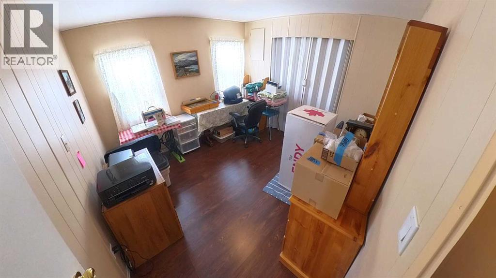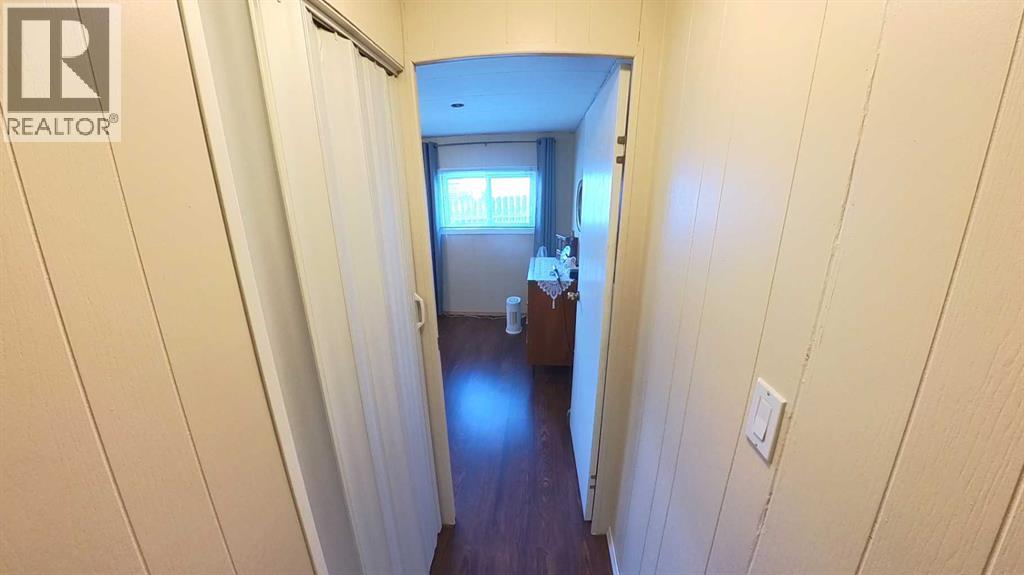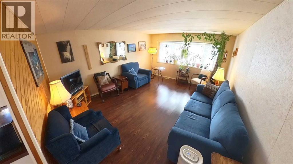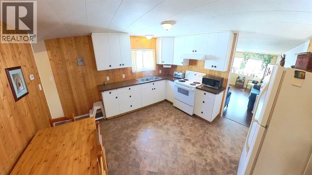 Step into a beautifully revitalized living space in this 1976 Paramount mobile home, where extensive modern upgrades meet rustic charm to create a truly move-in-ready experience. Situated on a generous, fully fenced rented lot measuring 35 x 95 within the Town Centre mobile park, this property offers an ideal location for families and professionals alike. The heart of the home is a spacious, renovated kitchen featuring crisp white cabinetry, updated countertops, a new hood fan, and new light fixtures, all set against brand-new flooring. The interior design is grounded by the warmth of oil-treated pine walls on select walls through the kitchen, living room, and laundry area, providing a cozy and cohesive atmosphere. The south-facing living room is a standout feature, centered around an upgraded bay window that floods the space with natural light, offering the perfect sanctuary for indoor plants to thrive. Significant structural enhancements have been made to the living area, including the removal of three original west-facing windows to create a fully enclosed, insulated, and drywalled wall for improved energy efficiency and furniture placement. Peace of mind comes standard with this property, as a new furnace was installed in 2025 alongside a newly upgraded electrical panel. The home’s infrastructure has been thoroughly modernized with new water lines, added heat tape for winter protection, and the convenience of a new outside water tap. While the original floor plan featured three bedrooms, the interior has been thoughtfully redesigned to offer two large bedrooms, providing the extra storage and elbow room that modern homeowners crave. New flooring and fresh paint throughout the entire home ensure a clean and updated feel in every corner. You will enjoy the convenience of being within easy walking distance to local schools, the hospital, and the vibrant shops and amenities of the bustling main street. This home perfectly balances updated efficiency with a prime ce ntral location. Lot rent $420.00 per month. Pet friendly subject to park managers approval. (id:51989)