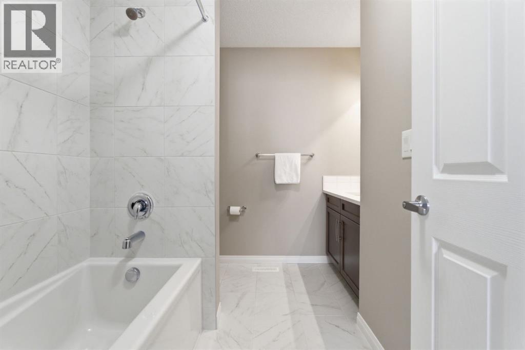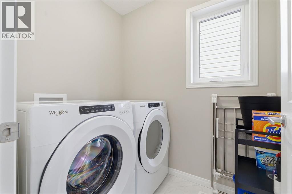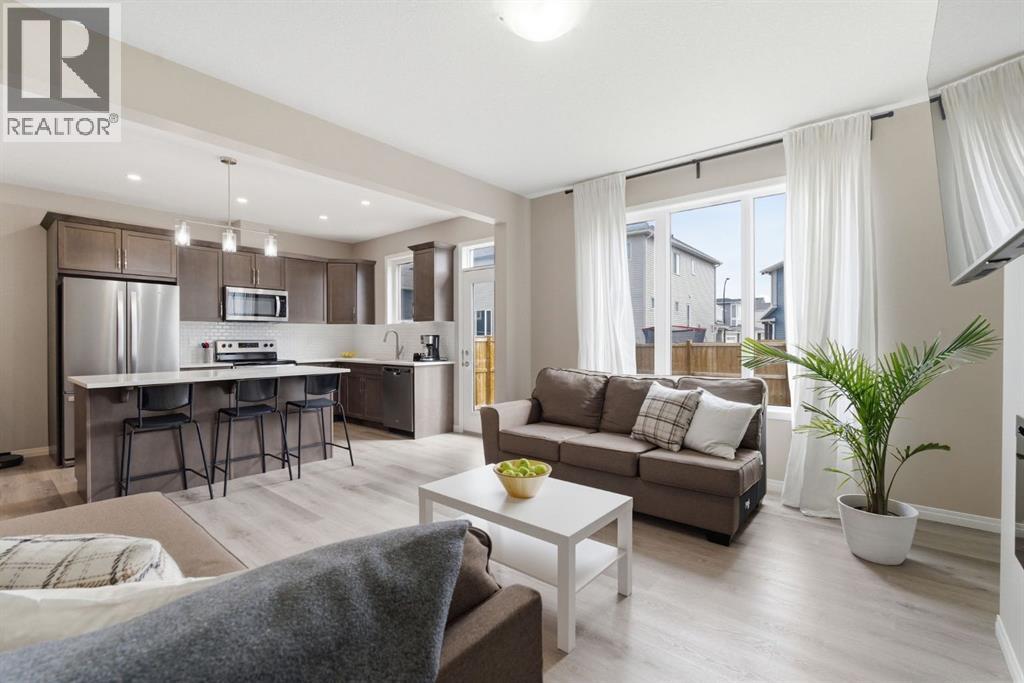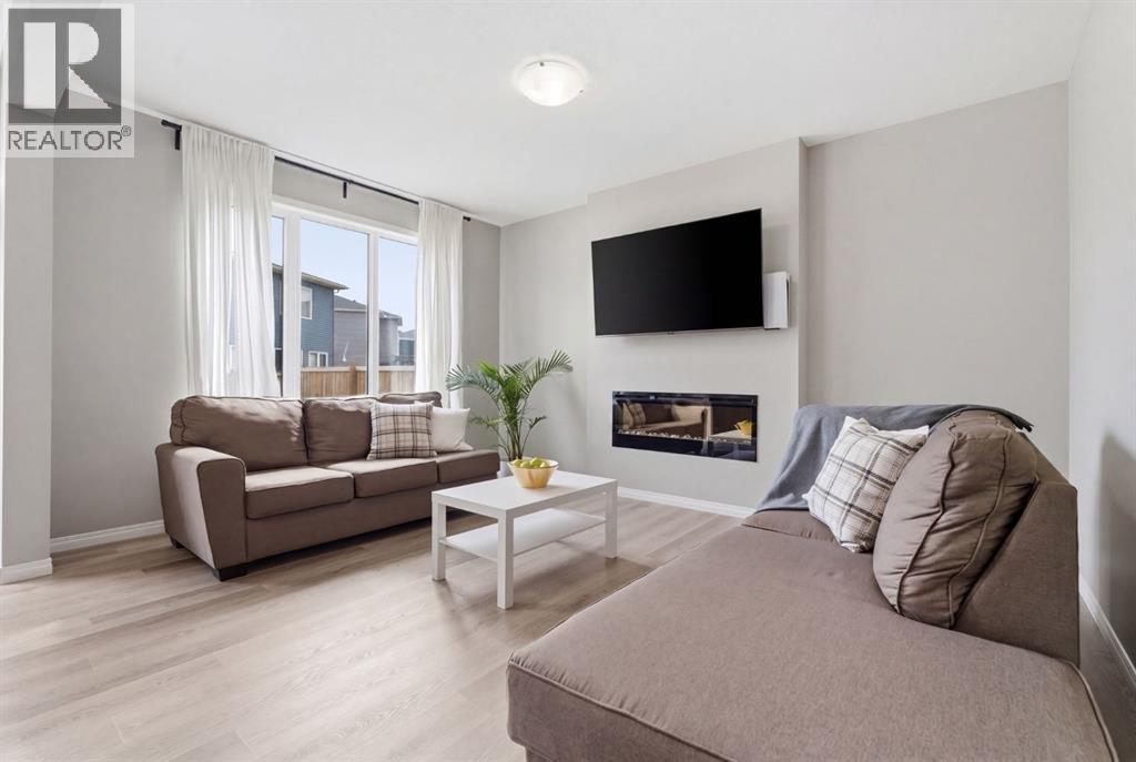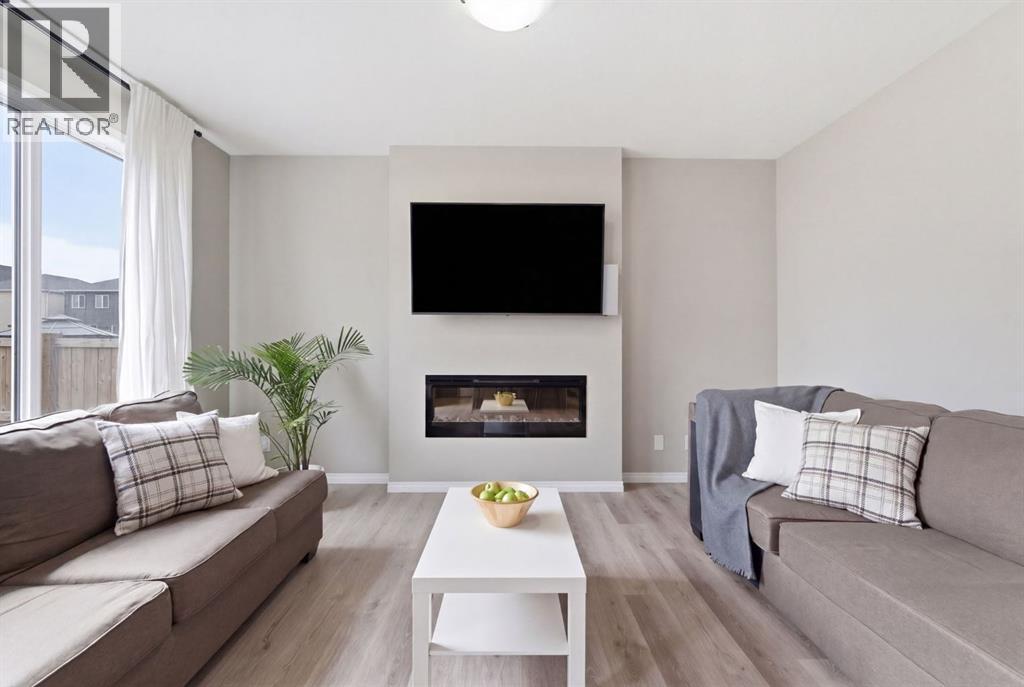 Welcome to this beautifully maintained two-storey home in the sought-after community of Carrington, offering 1,716 sq ft of thoughtfully designed living space plus an unfinished basement ready for your future plans. Built in 2020 and featuring a brand new roof completed in 2025, this move-in ready property combines modern comfort, functional design, and exceptional value in a family-friendly neighbourhood. Step inside to a bright and inviting main floor where large windows fill the home with natural light and durable vinyl plank flooring adds both style and practicality. The open-concept layout is ideal for everyday living and entertaining, centred around a spacious kitchen complete with stainless steel appliances, a large island, ample cabinetry, and plenty of prep space. The adjoining dining and living areas create a seamless flow, while the cozy gas fireplace adds warmth and charm to the heart of the home. Upstairs, you’ll appreciate the smart and spacious layout featuring a versatile bonus room perfect for a media area, playroom, or home office. The convenient upper-floor laundry room adds everyday ease, while the generous primary suite offers a walk-in closet and private ensuite with double vanity. Additional bedrooms provide excellent space for family, guests, or work-from-home flexibility. The unfinished basement presents endless possibilities to customize additional living space, a gym, recreation room, or extra bedrooms to suit your needs. Outside, the fully fenced backyard offers room to relax, play, or entertain, while the double attached garage provides secure parking and extra storage.Located close to parks, playgrounds, and everyday amenities, this is an excellent opportunity to own a stylish starter home in one of northwest Calgary’s growing communities. Thoughtfully designed, well cared for, and ready for its next chapter this Carrington home is one you won’t want to miss. (id:51989)