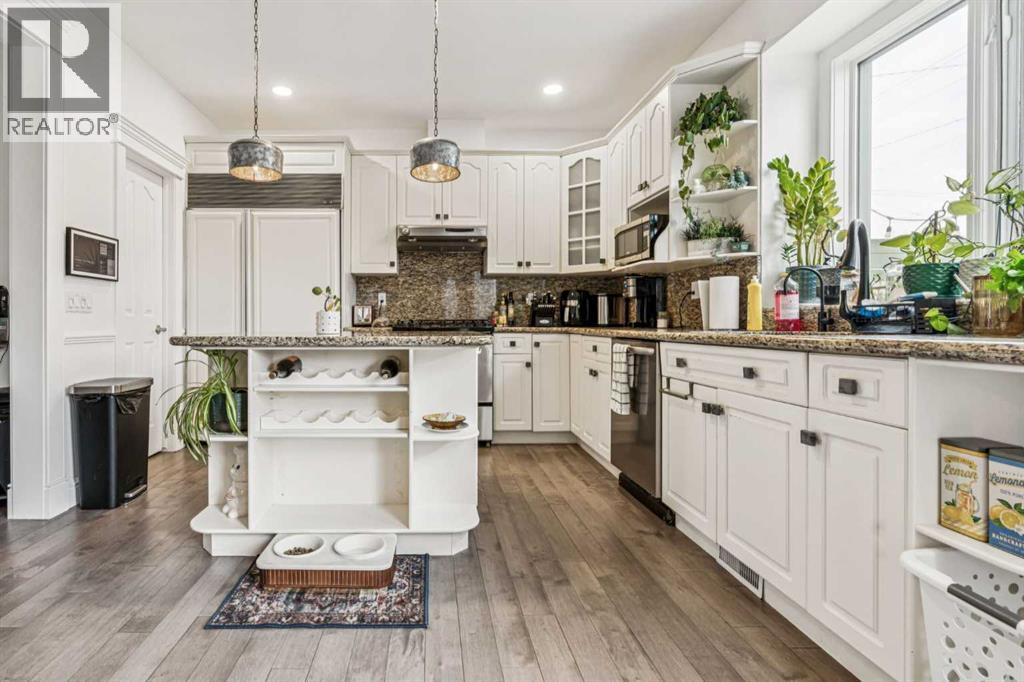 Architecturally distinctive and thoughtfully appointed, this impressive West Hillhurst home offers stylish finishings, generous living space, and a sunny south-facing backyard designed for both everyday living and easy entertaining. Hardwood flooring flows throughout the main and upper levels, creating a warm and inviting feel from the moment you step inside. The main floor features a spacious living room with a gas fireplace, formal dining area, convenient powder room, and a well-appointed kitchen complete with granite countertops, panelled Sub-Zero fridge, stainless steel appliances, large pantry, and a bright breakfast nook with access to a new south-facing deck.Upstairs, the expansive primary retreat offers a walk-in closet and a luxurious 5-piece ensuite with a private water closet and oversized jacuzzi tub, creating a true space to unwind. This level also includes a large den, second full bathroom, upper laundry, and a generous second bedroom with a large closet and private balcony.The fully finished walk-out basement offers exceptional flexibility with a well-equipped kitchenette, spacious bedroom with a walk-in closet, full bathroom, laundry and direct access to the private south-facing backyard. Whether entertaining friends and family or enjoying a quiet evening outdoors, the backyard offers plenty of potential for a firepit or hot tub, all complemented by a double garage.Ideally situated on one of the widest roads in the neighbourhood, this property offers ample street parking and an exceptional location close to Memorial Drive, Crowchild Trail, Kensington, the Bow River pathway system, schools, shopping, and downtown Calgary. (id:51989)