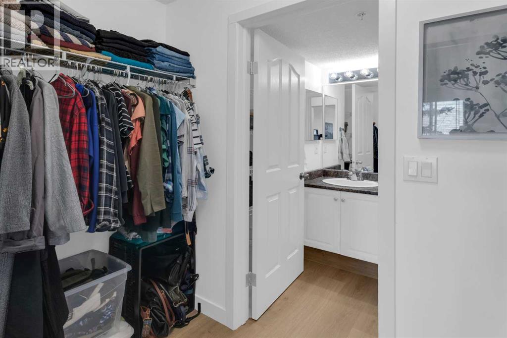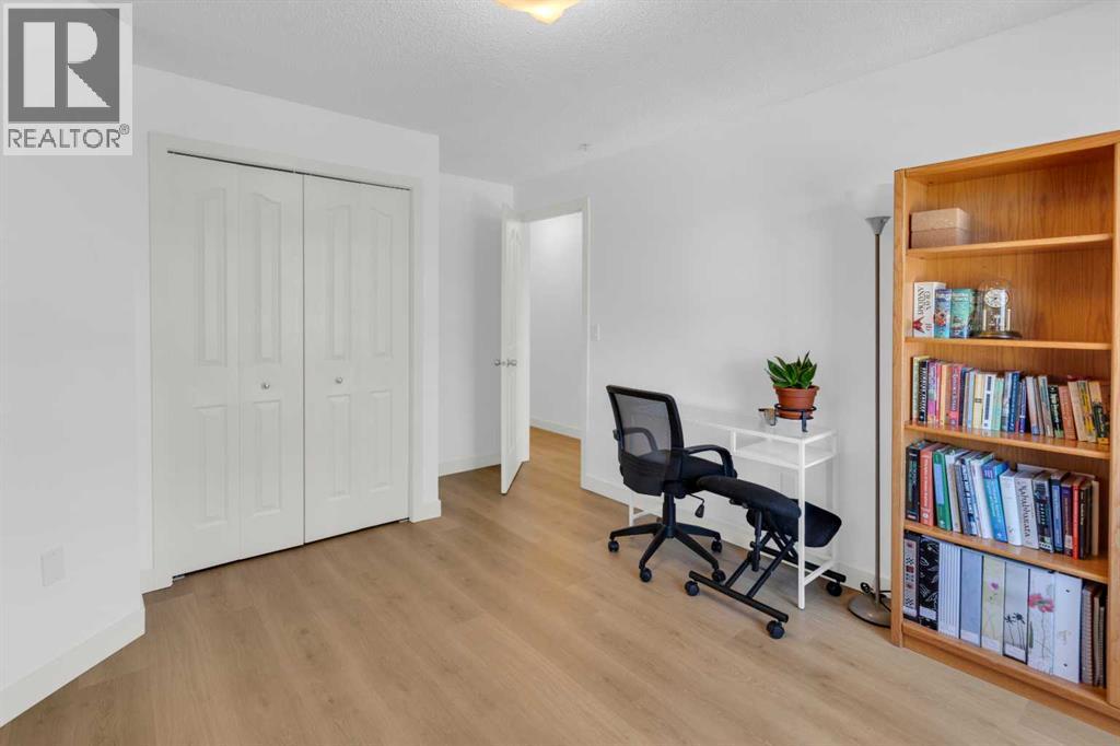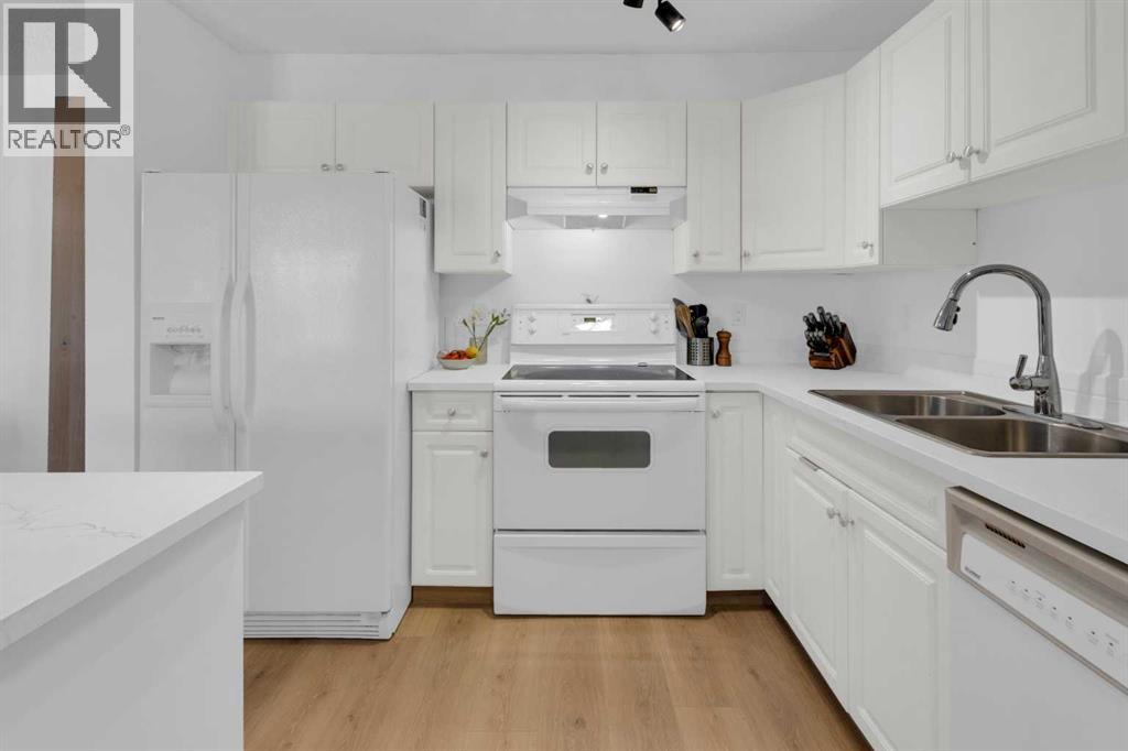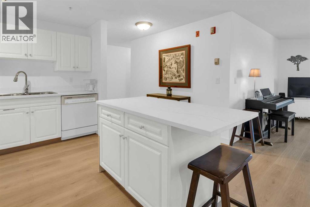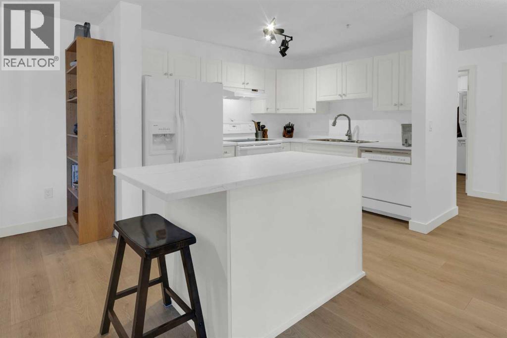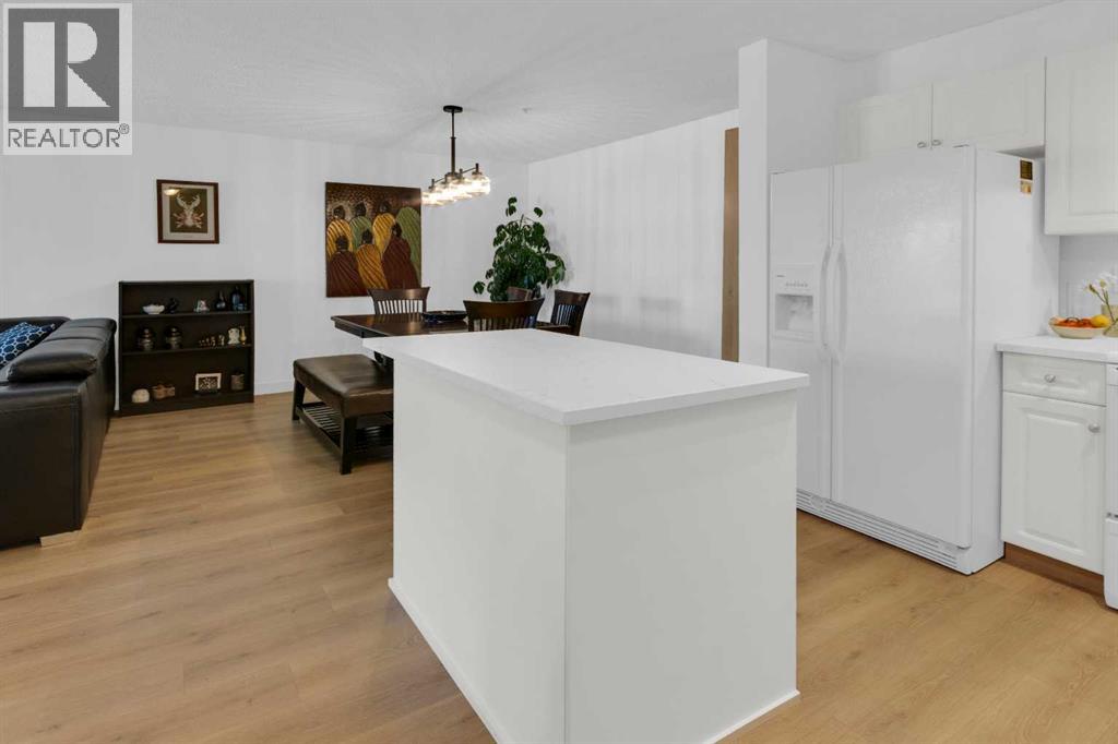 Welcome to this spacious and beautifully maintained condo in the sought-after Tuscarora Manor. Offering 1,059 sq. ft. this ideal condo is one of the largest floor plans in the complex and in immaculate condition.This bright and inviting two-bedroom, two-bathroom condo features new flooring throughout and an ideal open main area layout that feels welcoming from the moment you step inside. The kitchen is both functional and generous, with ample cabinetry and counter space, a convenient breakfast bar, and seamless flow into the spacious dining area perfect for everyday living and entertaining.The east-facing living room is filled with natural light from large patio doors, which lead to a private balcony overlooking a quiet green space, an outdoor space to relax and unwind.The large primary bedroom offers a comfortable retreat with a walk-through closet and private four-piece ensuite. A very well-sized second bedroom provides flexibility for guests or a home office and is conveniently located next to the main four-piece bathroom.Additional highlights include a dedicated laundry room, an exceptionally large in-suite storage area, and a titled underground parking stall.Residents enjoy access to excellent building amenities, including a library, a cozy lounge/den area, and a rentable social room with kitchen facilities perfect for hosting larger gatherings. The building is spotlessly clean and meticulously maintained, reflecting pride of ownership throughout.Condo fees include electricity, heat, and water offering added value and ease for monthly budgeting.Ideally located in the heart of Tuscany, you are just steps from the Tuscany LRT and a quick drive to Tuscany Market, and Crowfoot Crossing. With quick access to Stoney Trail and Crowchild Trail, commuting downtown or heading to the mountains is effortless.This quiet, well-managed complex offers a wonderful balance of comfort, convenience, and lifestyle.Schedule your private showing today (id:51989)