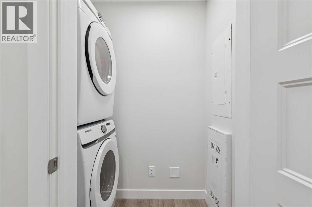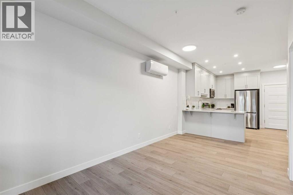 Welcome to The Whitney in beautiful Springbank Hill, where modern design meets natural serenity. This gorgeous suite is ideal for professionals, first-time homebuyers, mature couples, or investors seeking exceptional value in a premium location. It’s a rare opportunity to own a beautifully finished home in a prestigious neighbourhood - one that offers luxury living at an affordable price. This suite is thoughtfully designed with elevated finishes throughout. The heart of the home is the stunning kitchen, featuring an open layout that feels bright and effortless. Enjoy luxury vinyl plank flooring, quartz counters, upgraded soft-close cabinetry, and stainless steel Samsung appliances-perfect for gourmet cooking or entertaining. The spacious bedroom offers a true retreat, complete with an extensive walk-through closet flowing into the 4-piece sparkling bathroom. One of the standout features of this home is the generous balcony, adding an impressive 148.8 sq. ft. of outdoor living space - ideal for morning coffee, evening dinners, container gardening, or simply relaxing. You’ll love the comfort and convenience of in-suite laundry and air conditioning. Convenient features continue with titled underground parking, storage, and premium sound attenuation for added peace and quiet. Outside your door, an exceptional lifestyle awaits. You’re just a 5-minute stroll to Aspen Landing, home to more than 50 shops and services-Safeway, Starbucks, Shoppers Drug Mart, restaurants, banks, and more. The C-Train, transit, and major routes like 17th Ave SW are moments away, making it an easy 10-minute commute to downtown. The upcoming Springbank Hill Market will add even more vibrancy to this already sought-after neighbourhood. With its perfect blend of style, comfort, and walkable urban-meets-nature living, this home is a winner! Book your showing today, as it's move-in ready and waiting for you! (id:51989)