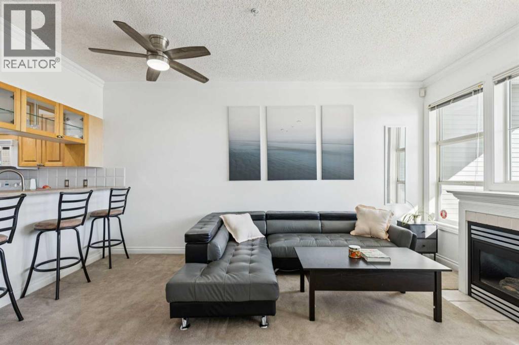 Welcome to this absolutely stunning and incredibly affordable 1-bedroom + den apartment in the highly sought-after lake community of Arbour Lake in NW Calgary. Perfectly positioned facing a peaceful green space with beautiful downtown views, this bright and inviting unit offers an ideal combination of comfort, functionality, and lifestyle.As you enter the home, you’re welcomed into a spacious foyer that immediately showcases the open-concept design and natural flow of the unit. To your right, you’ll find a large den enclosed with elegant French doors, complete with a built-in desk and shelving—an ideal space for a home office, reading room, or even a comfortable guest bedroom.To the left is a thoughtfully designed kitchen featuring plenty of cabinetry, and a full-height tile backsplash that adds a stylish touch. Just off the kitchen is a convenient pantry/laundry room, offering extra functionality and storage while keeping everything neatly tucked away.The kitchen opens seamlessly into the bright and spacious living room, where large windows flood the space with natural light, creating a warm and inviting atmosphere. Step through the glass patio door onto your private balcony, complete with a gas BBQ line—perfect for outdoor dining or relaxing while taking in the stunning views and peaceful surroundings.The primary bedroom is generously sized and features a walk-in closet, providing ample storage space. Nearby, the four-piece bathroom offers a deep tub with full-height tile surround, plenty of counter space, and a clean, functional layout.This well-managed building offers a fantastic sense of community and an impressive list of amenities including inviting resident lounges with kitchens and fireplaces, a guest suite for visitors, bike storage, a workshop, and a beautifully landscaped courtyard with an ornamental fountain.Your titled underground parking stall (#53) is conveniently located with the storage locker (#81) directly in front, making everyday li ving even more convenient.Living in Arbour Lake means enjoying year-round lake privileges, including swimming, fishing, boating, skating, tennis courts, beaches, playgrounds, and scenic walking paths. You’re also just minutes from shopping, restaurants, transit, and major roadways.This beautifully maintained, bright, and move-in ready home offers exceptional value in one of Calgary’s most desirable lake communities.Don’t miss your opportunity to view this fantastic property! (id:51989)
