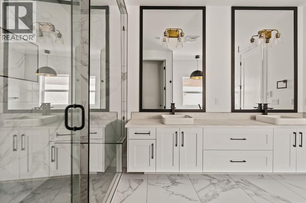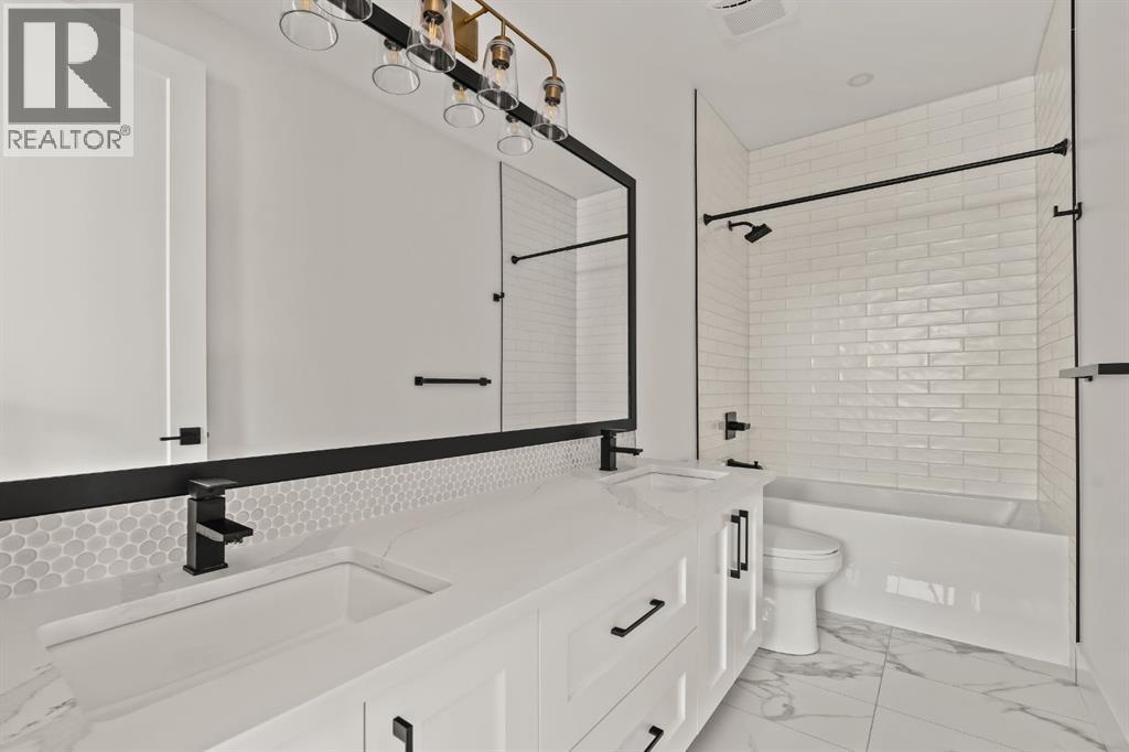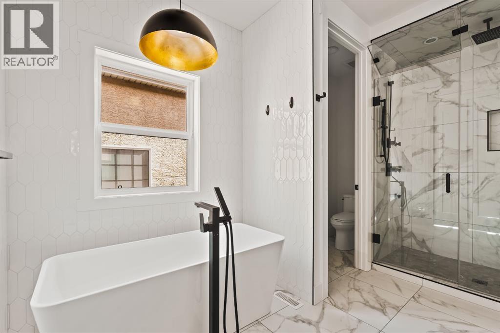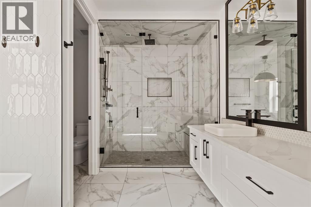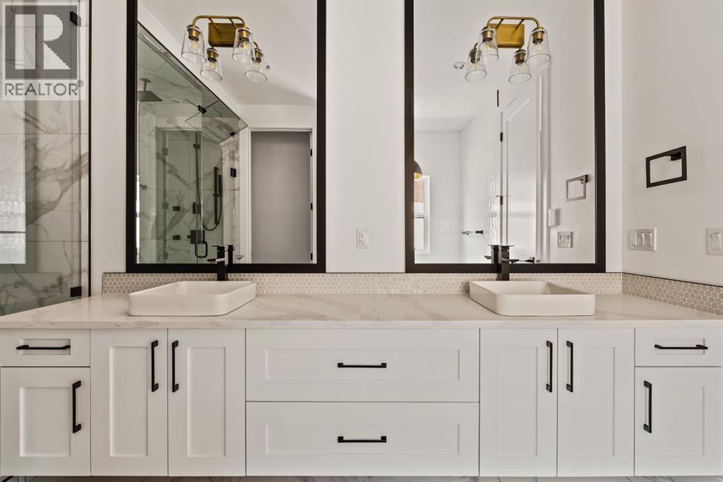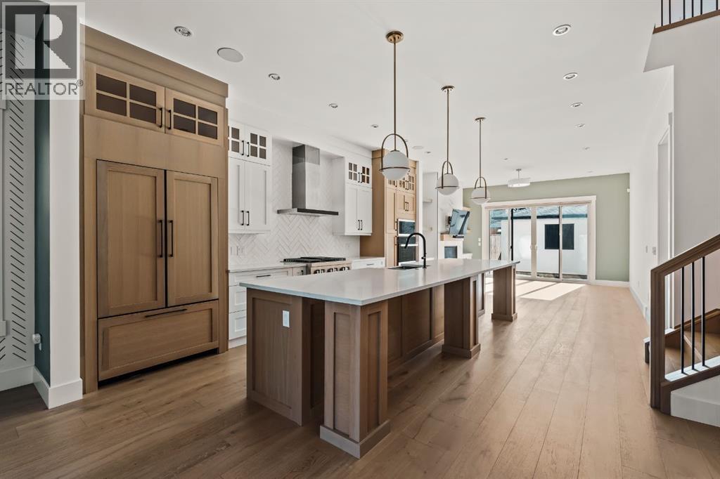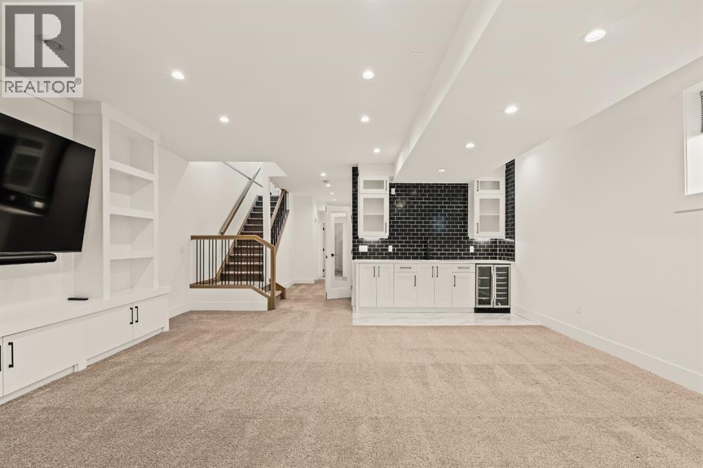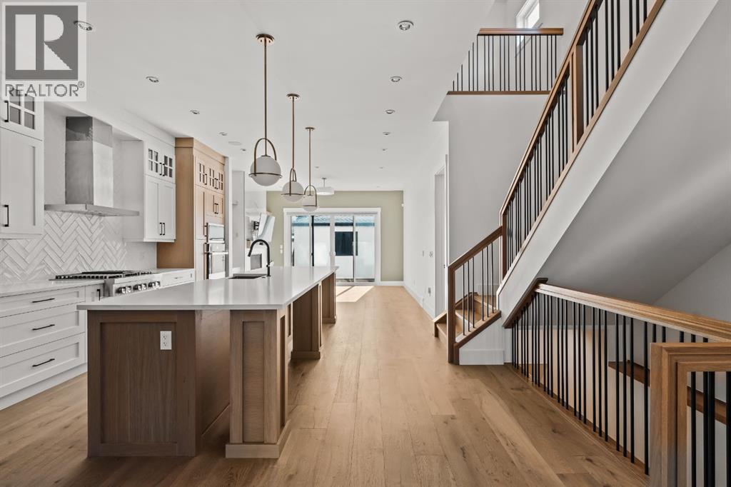 LUXURY OVERSIZED INFILL | 2,480 SQ FT | 4 BEDROOMS | 3.5 BATHS | 30’ WIDE LOT | SOUTH BACKYARD | DESIGNER FINISHESWelcome to this exceptional detached luxury infill offering over 3,500 sq.ft. of beautifully developed living space in the sought-after inner-city community of Richmond. Thoughtfully designed and impeccably finished, this residence sits on a rare 30’ wide lot and showcases timeless architecture paired with elevated modern design. The main level is defined by soaring 10-foot ceilings, wide plank hardwood flooring, and sophisticated custom millwork, creating an atmosphere that feels both refined and inviting. At the heart of the home is a stunning chef-inspired kitchen, complete with a large quartz island, striking two-tone custom cabinetry, and premium JennAir appliances. A well-appointed butler’s pantry adds both convenience and additional storage, making entertaining effortless. The elegant dining area seamlessly connects to the sun-filled great room, where a gas fireplace framed by custom built-ins creates a warm focal point for gatherings. Expansive dual sliding doors open to the south-facing backyard and patio, offering the perfect extension of the living space for outdoor entertaining and quiet summer evenings. A private main floor den provides an ideal setting for a home office or study, while a thoughtfully designed mudroom ensures everyday functionality. Upstairs, the serene primary retreat offers a true sense of escape, complete with a spa-inspired ensuite featuring heated floors, a fully tiled walk-in shower, deep soaker tub, and elegant dual vanities. Two additional bedrooms, a beautifully finished main bath, convenient upper laundry, and a versatile loft area complete the upper level. The fully developed lower level is designed with entertaining in mind, featuring a spacious recreation room with custom built-in media storage, a wet bar with wine cooler, and ample room to host family and friends. An additional bedroom, full bathroom, and flex ible bonus room—perfect as a home gym, studio, or office—enhance the home’s functionality. Additional features include Hunter Douglas blinds, integrated smart home lighting and thermostat controls, central air conditioning, HRV system, high-efficiency furnace, and upgraded mechanical systems. ALL TV's, Mounts and SONOS Soundbars INCLUDED. The property is completed by a fully insulated and heated detached garage and paved rear lane. Ideally located on a quiet street just minutes from Marda Loop, River Park, top-rated schools, shopping, and downtown, this beautifully crafted home delivers the perfect balance of luxury, comfort, and inner-city convenience. Immediate possession available! (id:51989)