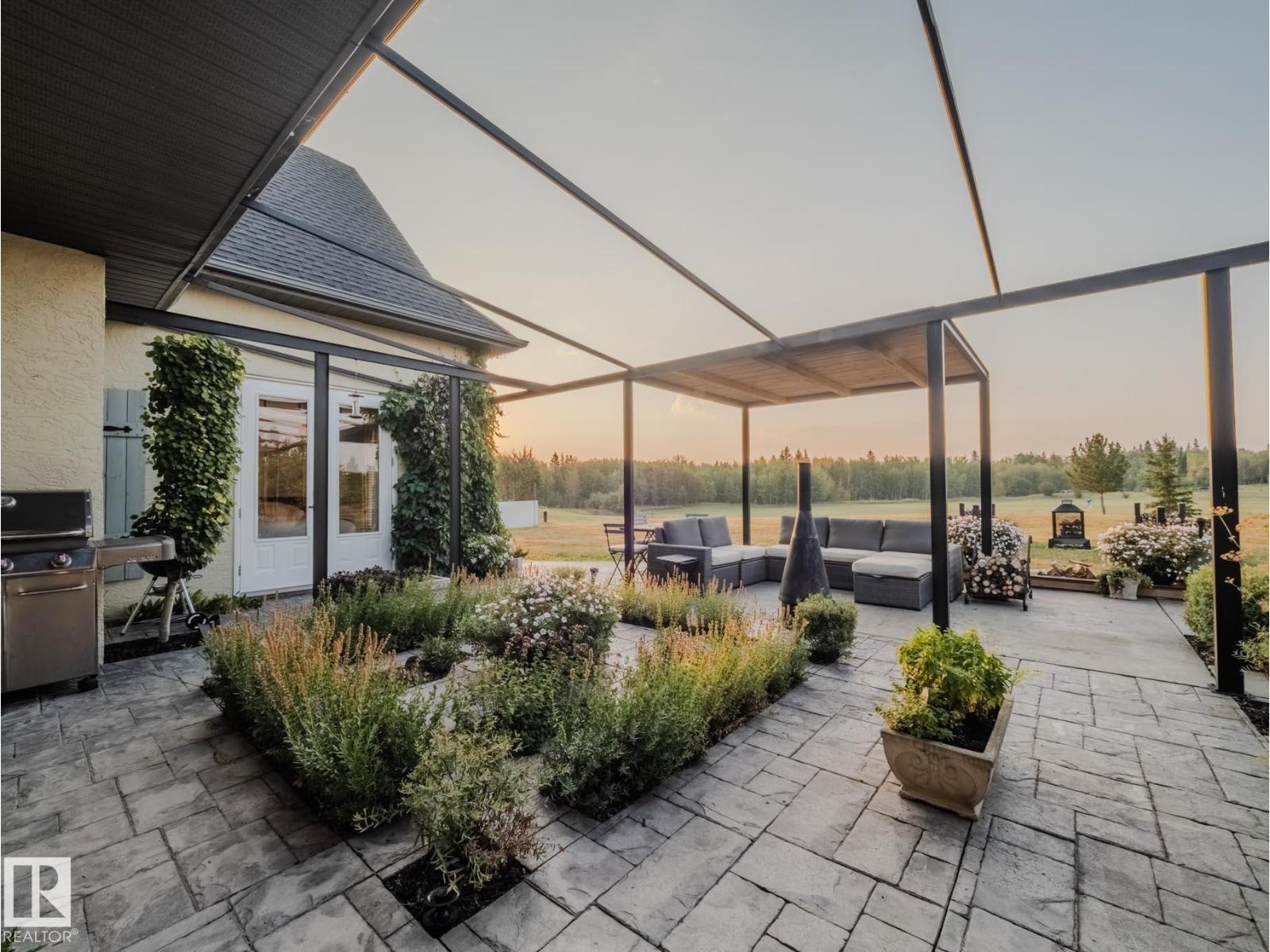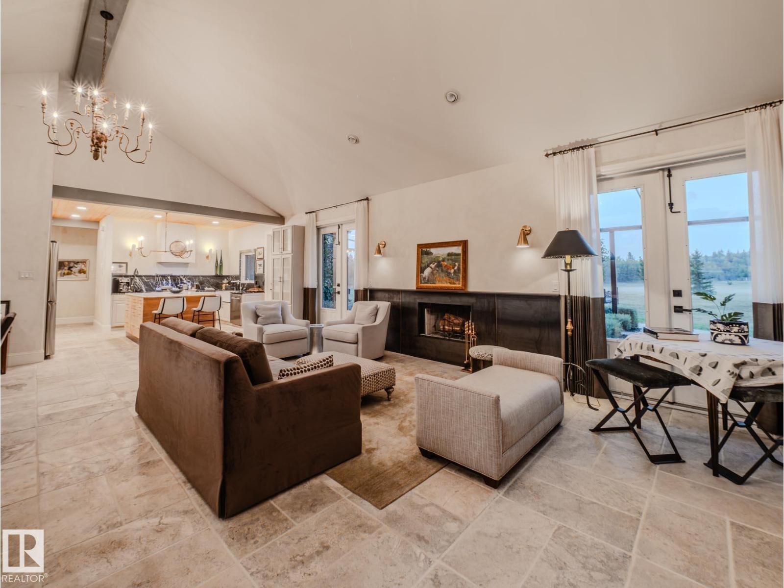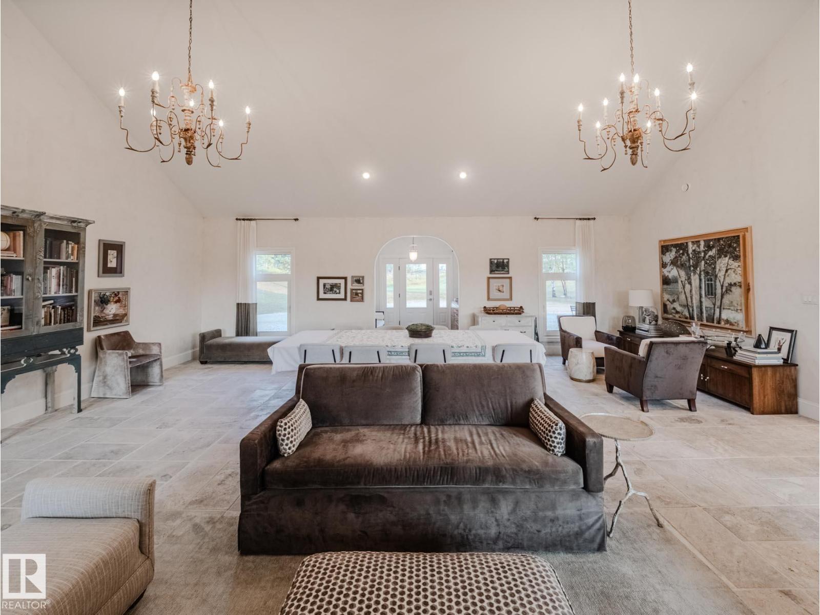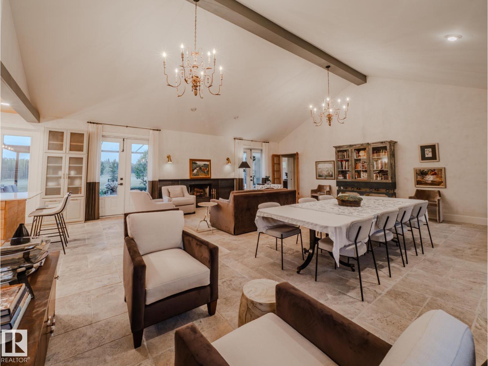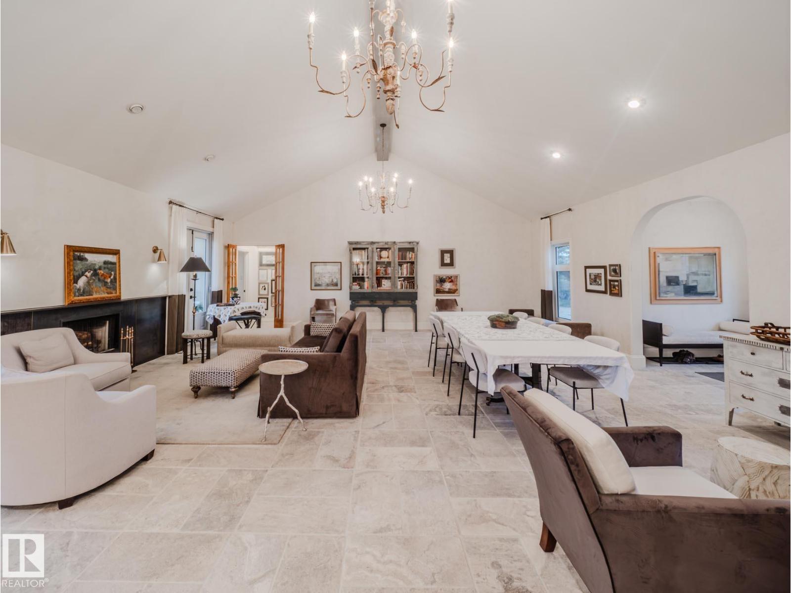MODERN EUROPEAN MASTERPIECE....NOT A DETAIL OVERLOOKED.....20 ACRES......10 MIN TO THE CITY.... COLD ROLLED STEEL/HERRINGBONE TILES/OLD WORLD CRAFTSMANSHIP....WORDS CANNOT DESCRIBE THE PATIO....~!WELCOME HOME!~ A world class acreage in the heart of Strathcona County, one of a kind design w/accents and decor curated from around the globe... Greeted by hand blasted heated travertine floors... something you'd expect from a villa in the south of France. Soaring ceilings, beams & a dramatic great room is just the beginning! The right wing has a library, classic mill work & a bedroom w/ensuite. To the left is the Gourmet Kitchen w details at every glance. Down the hall, another bedroom + ensuite, bonus room up stairs w/built in banquet seating, & options galore! Then we have the back entrance (even this is like a magazine shoot... !) Last is the Primary retreat, custom cabinets, spa - just have to see. No basement to babysit, every corner has been re-worked, refined, and re-imagined to absolute perfection! (id:51989)