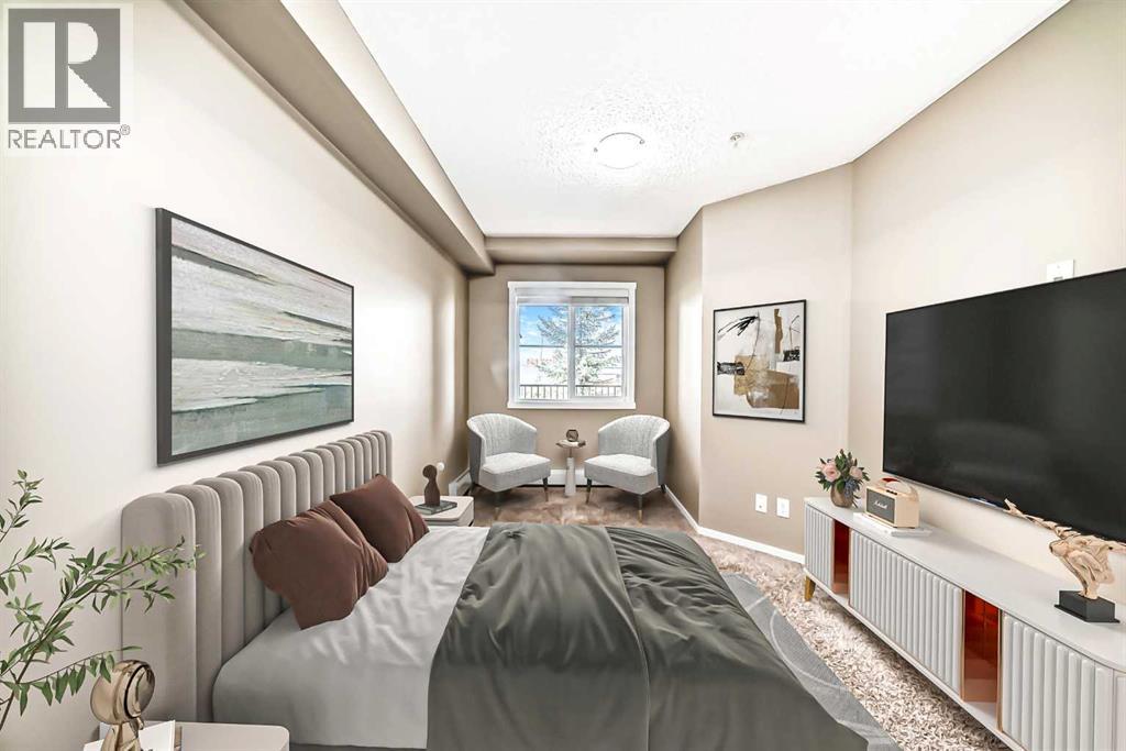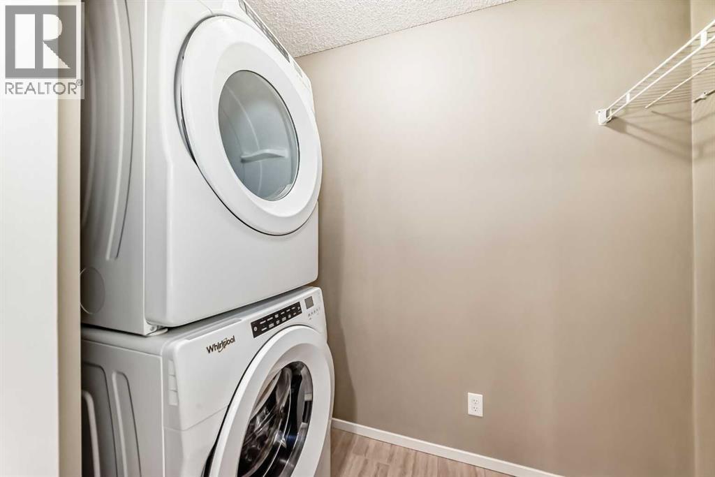 Here’s a smart start, a 2 bedroom, 2 bathroom condo in Legacy with low condo fees that include everything except Electricity. Immaculate inside with new Vinyl plank flooring, fresh paint in soft neutral tones and facing West to enjoy the views. Thoughtful set up for sharing with bedrooms on opposite sides of the unit separated by a spacious living and dining room. Step out onto your covered balcony with west views (over the graveyard, so peaceful, quiet and well kept) a great place to enjoy a sunny afternoon. Efficient kitchen design with plenty of cabinets, quartz counters & pantry. Off the back of the kitchen is the Laundry room with a full size, stacked washer & dryer, additional shelving & storage space. Additional bonuses include titled, heated underground parking, secure underground bike storage & pets allowed with board approval (max 15kg). Common area has a lovely seating area with fire pit and even a designated spot for pet relief. Enjoy walking & cycling on the plentiful pathways and around the ponds that are scattered throughout the neighbourhood. Legacy borders a 300 acre protected environmental reserve with 15 km of pathways to enjoy. There is even a community garden so you can try your hand at growing some of your own veggies. Major Shopping, restaurants and services are within walking distance at Township Shopping Centre and you’re just a quick 5 minute drive out to Stoney Trail or McLeod Trail to get downtown or out of town! Transit offers 1 quick commuter bus to the Shawnessy C-Train station for your convenience as well. You’re going to love living here! Note some photos have been virtually staged. (id:51989)