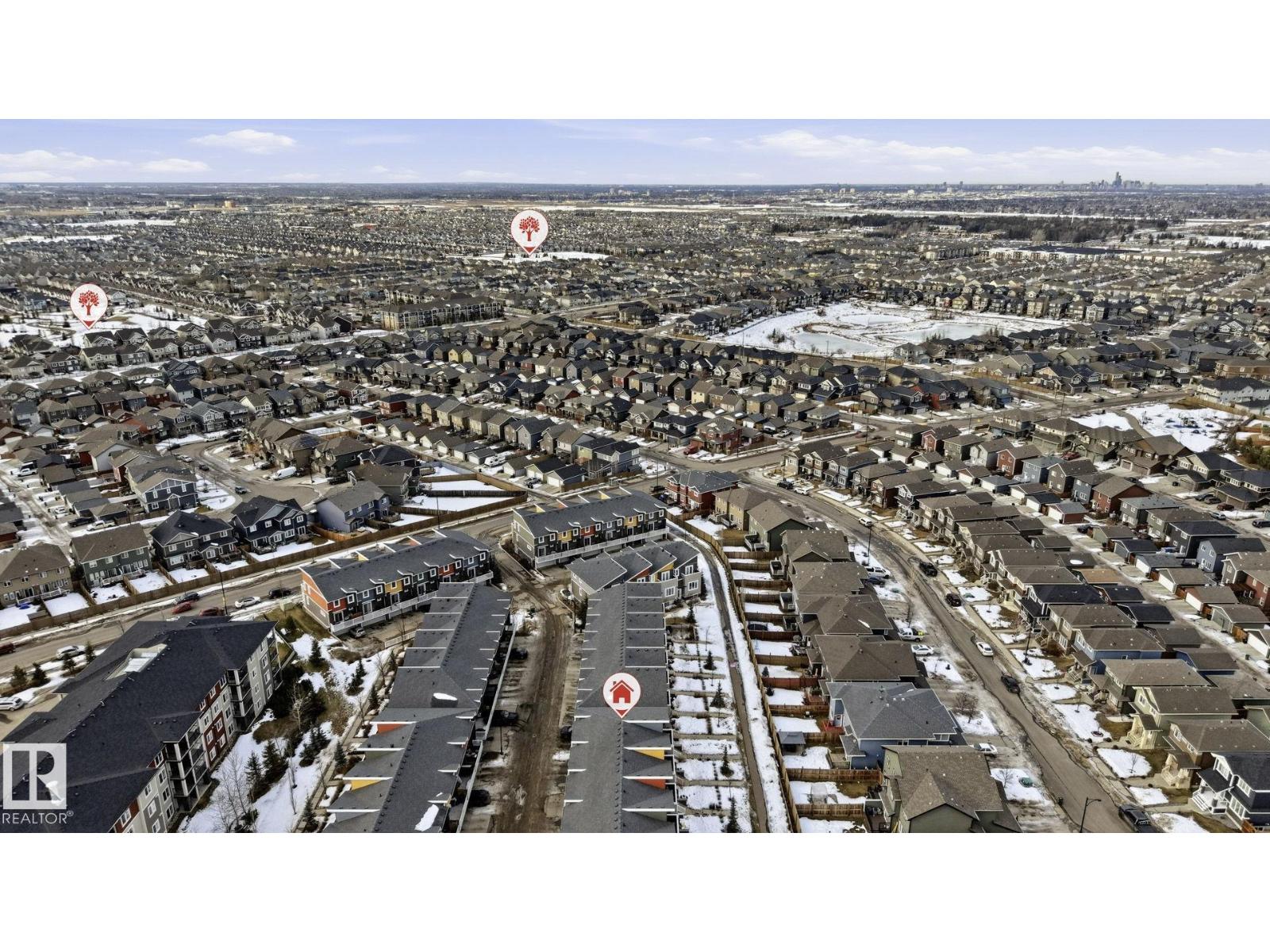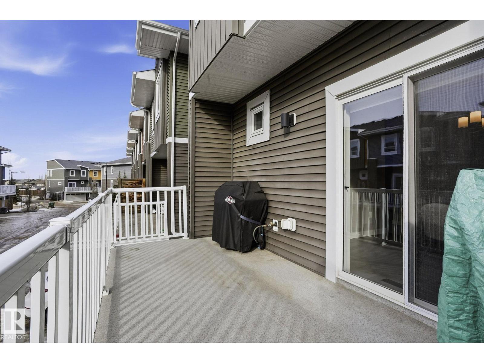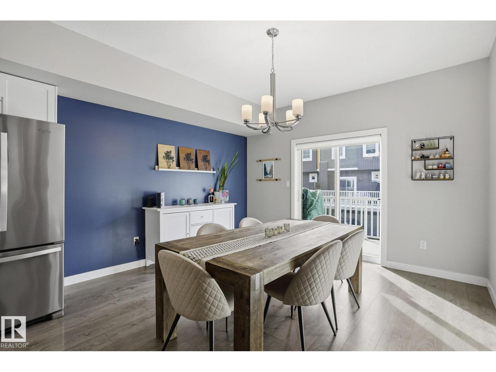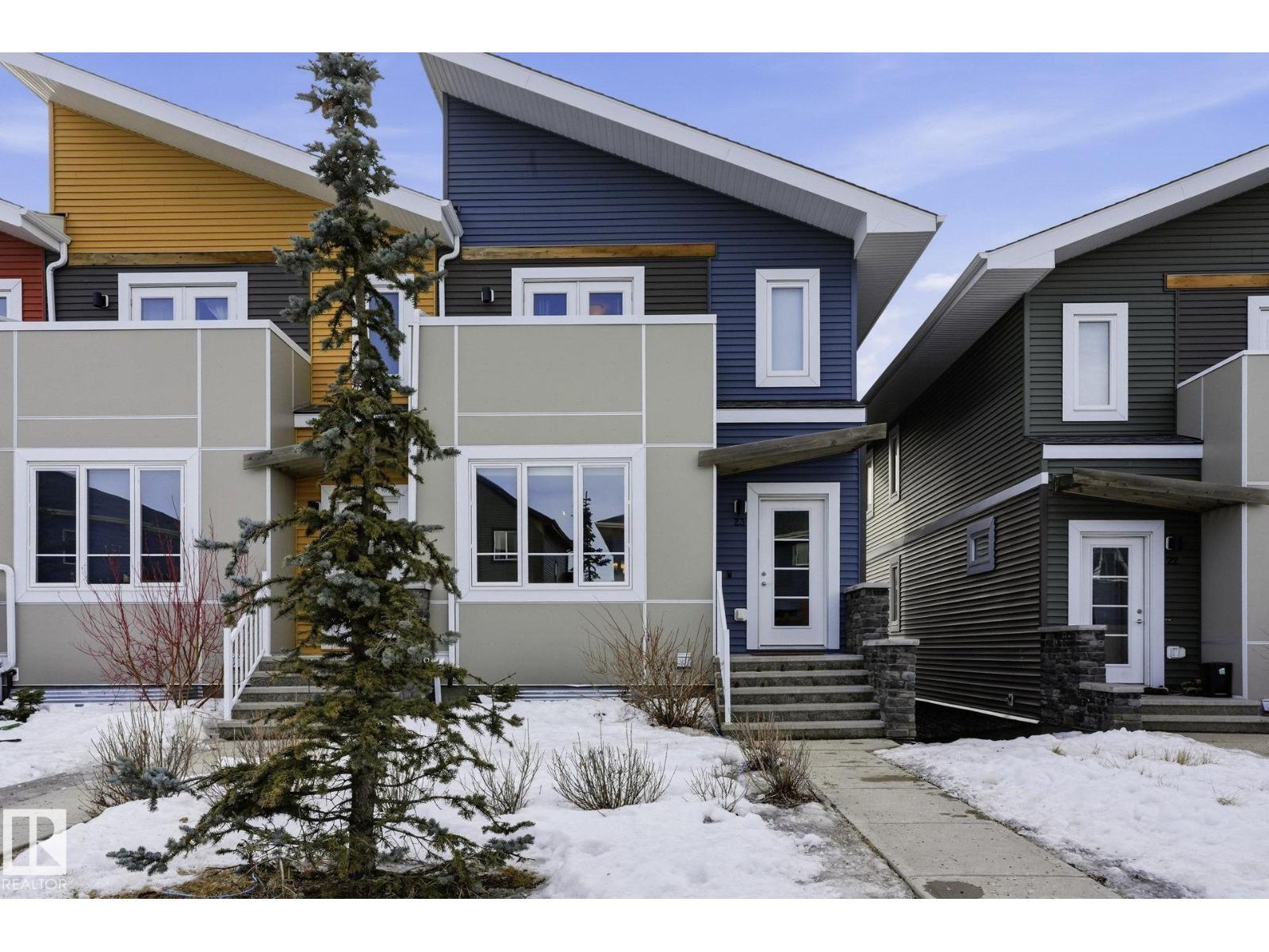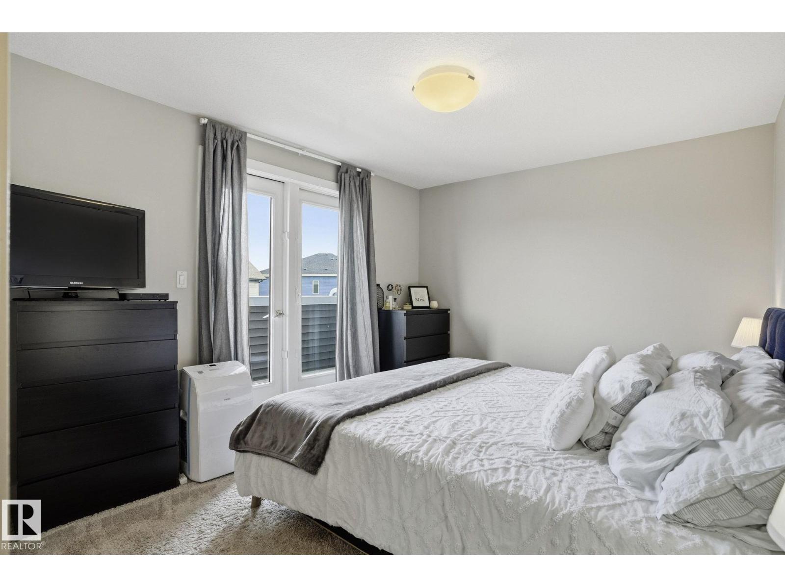 Welcome to this Revv townhome in the community of Walker, offering 3 bedrooms, 2.5 bathrooms, and a double front attached garage. Backing onto a quiet walking path, this property provides a functional layout and convenient access to nearby amenities. The main floor features an open-concept living area with large windows allowing natural light, a modern kitchen with ample cabinetry, island seating, and stainless steel appliances including a new dishwasher. The adjacent dining area offers direct sightlines to the living space, creating a practical layout for everyday living. Upstairs includes three bedrooms, 1 full bathrooms, and a primary bedroom with full ensuite. The upper level also offers convenient laundry with new washer and dryer. Located in a family-friendly neighborhood close to schools, shopping centers, parks, public transit, and Edmonton International Airport, with quick access to major roadways. An opportunity to own in the established and growing community of Walker. (id:51989)