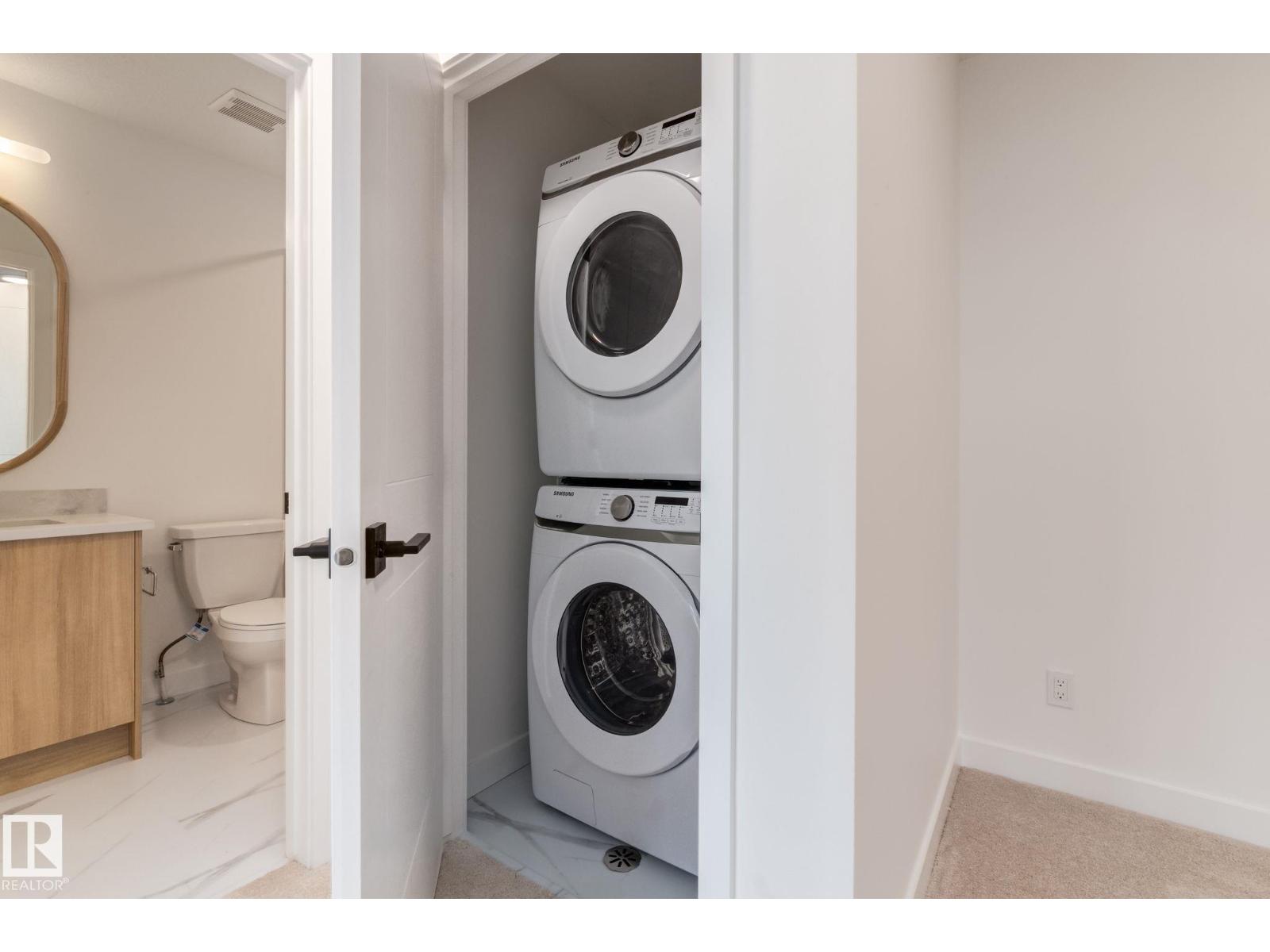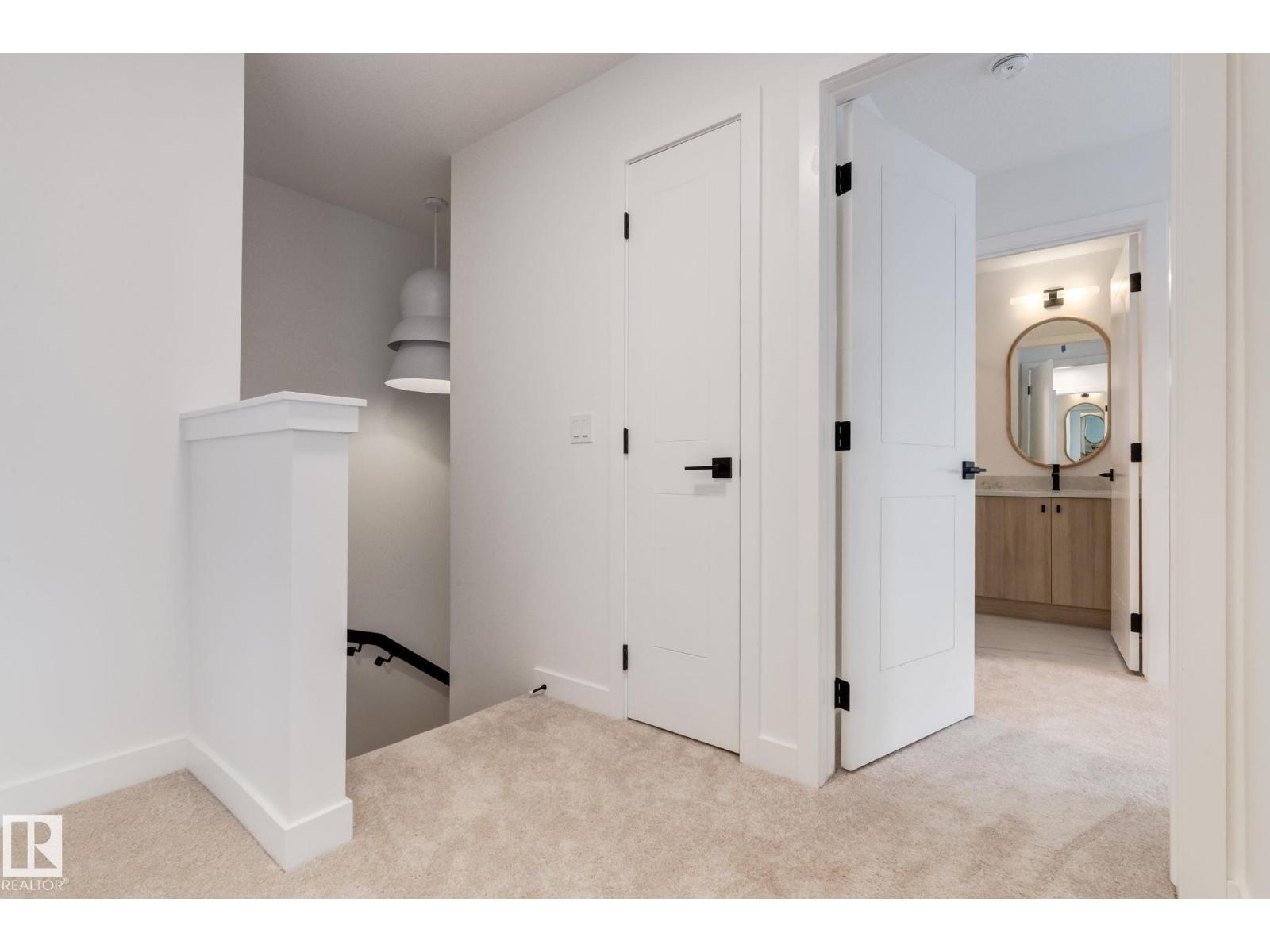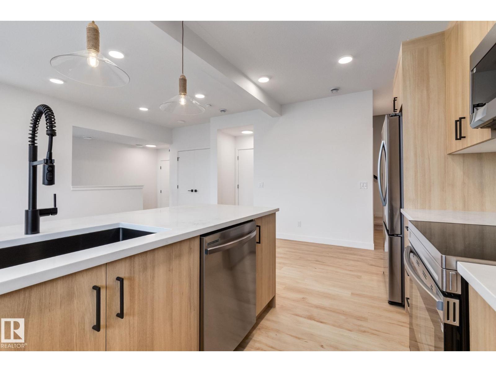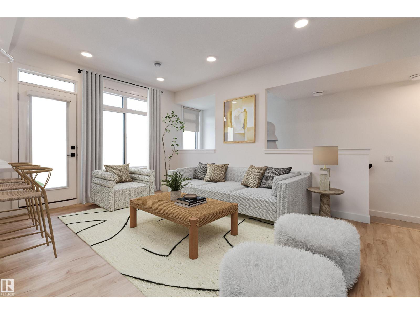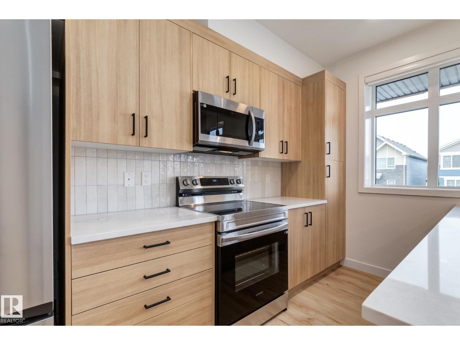 Welcome to this stunning 3-level townhome in the sought-after community of Essential Glenridding, built by award-winning Rohit Builders! Featuring 3 bedrooms and 2½ baths, this home showcases designer finishings and a bright open-concept main floor, complete with a private balcony—perfect for entertaining. The modern kitchen is equipped with quartz countertops, upgraded cabinetry, and a water line for the fridge, along with a convenient 2-piece powder room. Upstairs, you’ll find 3 spacious bedrooms, including a primary suite with a 4-piece ensuite and its own private balcony. A full family bath and convenient upper-level laundry complete this floor. The lower level includes a single attached garage. A perfect blend of style, comfort, and location! Some Staged Pictures (id:51989)