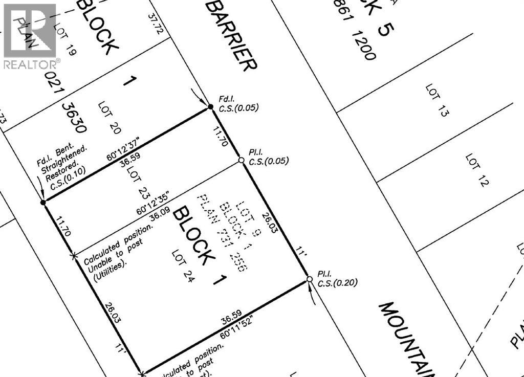 Nestled in the charming mountain hamlet of Exshaw, this prime lot offers an ideal setting for you to plan your mountain home. This 4,609 square foot lot was recently subdivided and currently has a garage on the property until Summer of 2026 when it will need to be moved to a different location on the lot or removed. Surrounded by breathtaking natural beauty, this parcel provides stunning mountain views in all directions. With ample space to design and build, envision a cozy haven where you can enjoy crisp mornings and star-filled nights. This lot is the perfect canvas for creating a home that embodies mountain living at its finest. Other features of the lot include front street parking, a rear alley, south west facing rear yard, quiet neighbourhood, potential for legal suite or accessory short term rental, and the garage could be relocated by buyer to alley or seller can remove, no building commitment. Taxes are estimated. Your adventure awaits. Taxes and TBD by the MD (id:51989)