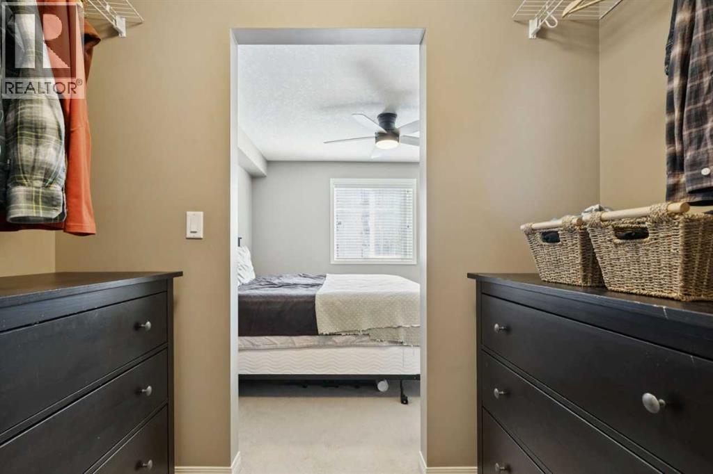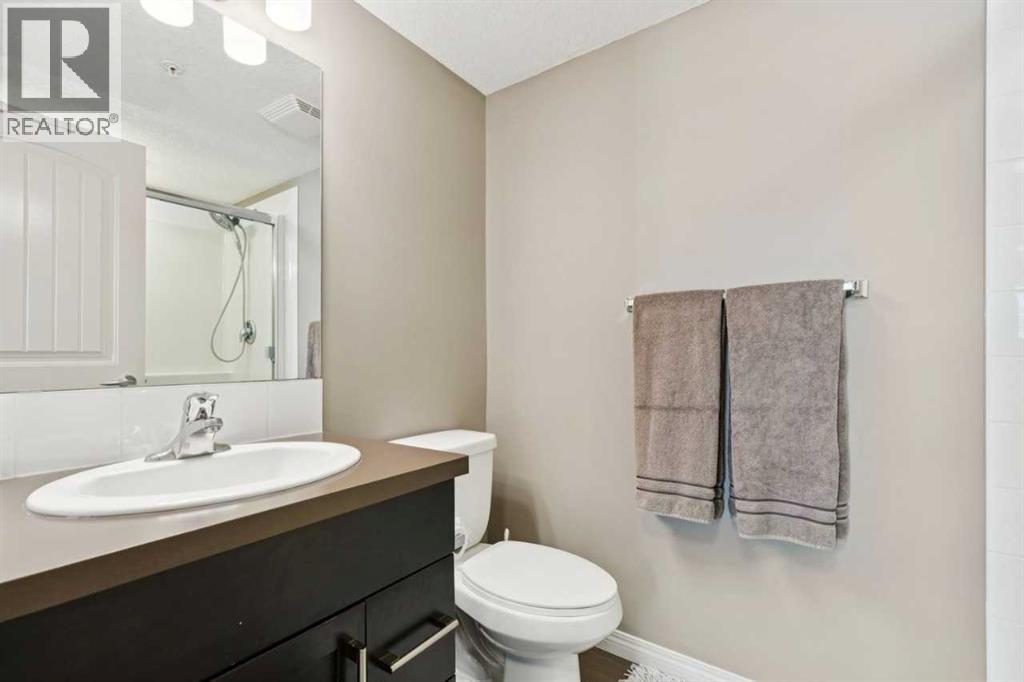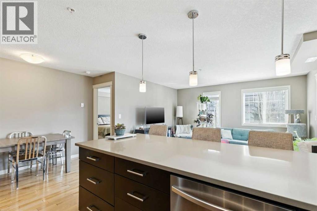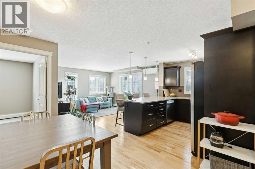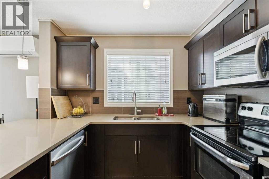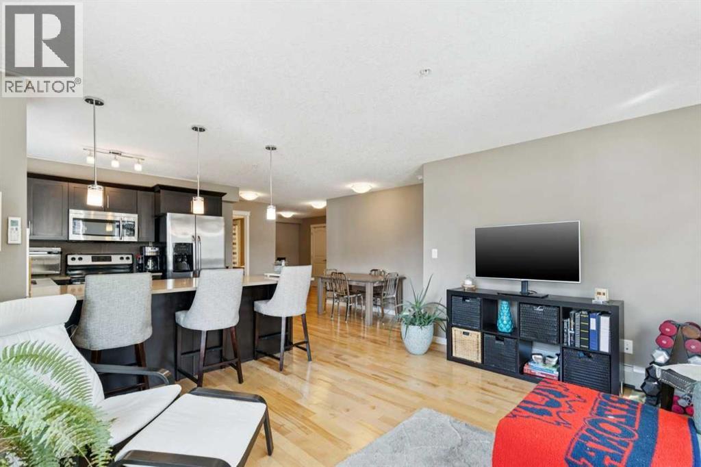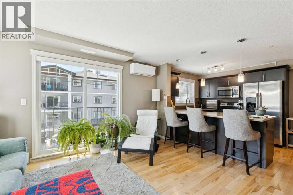 The perfect blend of modern comfort and pristine maintenance, this bright and spacious third-floor corner unit is original owner occupied. The open-concept layout features rich hardwood floors and has been freshly painted, creating a vibrant, move-in-ready atmosphere. The kitchen boasts elegant Caesarstone counters, sleek stainless steel appliances, and ample cabinetry. Whether you are working from home or need extra hobby space, the versatile den complements the two generous bedrooms and two bathrooms. Enjoy the plush feel of brand-new carpet in both bedrooms and the year-round comfort of air conditioning. A dedicated laundry space with shelving, boasts recently updated machines (2024). Step out onto your private balcony, complete with a natural gas hookup—perfect for summer BBQs, and overlooking garden space. Two titled parking stalls, and private, assigned storage round out this amazing condo that is close to schools and shopping. (id:51989)