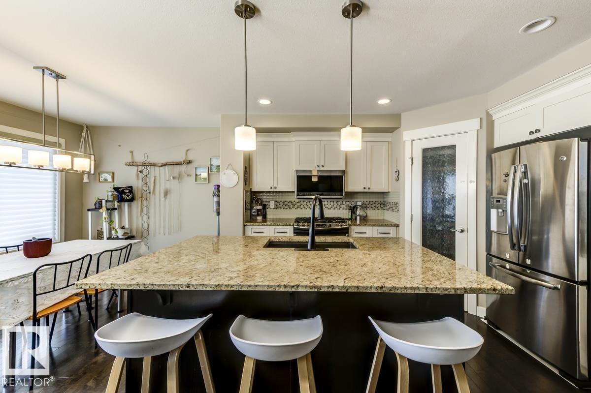 One of the LARGEST duplex in the area-NO CONDO FEES! As you enter this AIR-CONDITIONED home take note of the spacious front entry, large enough for everyone! Then check out the open-concept main floor, SS appliances, pretty backsplash, GRANITE counters, massive ISLAND, white cabinetry & large CORNER PANTRY! The kitchen flows seamlessly into the bright dining area with patio doors leading to the back yard, perfect for those summer BBQs – NATGAS hookup too! The living room has a gas FIREPLACE ideal for family gatherings & cozy evenings. The powder room is tucked away near the access to the ATTACHED DOUBLE GARAGE. Upstairs find a large BONUS ROOM and expansive owner's suite including a massive WALK-IN closet and a lavish ENSUITE with counterspace for days PLUS 2 more bedrooms, Large LAUNDRY room & 4-piece main bathroom with tons of STORAGE. The basement is drywalled & waiting your inspiration! Walking distance to great schools & all the amenities of Windermere! HUNTER DOUGLAS BLINDS! Don’t miss this beauty! (id:51989)