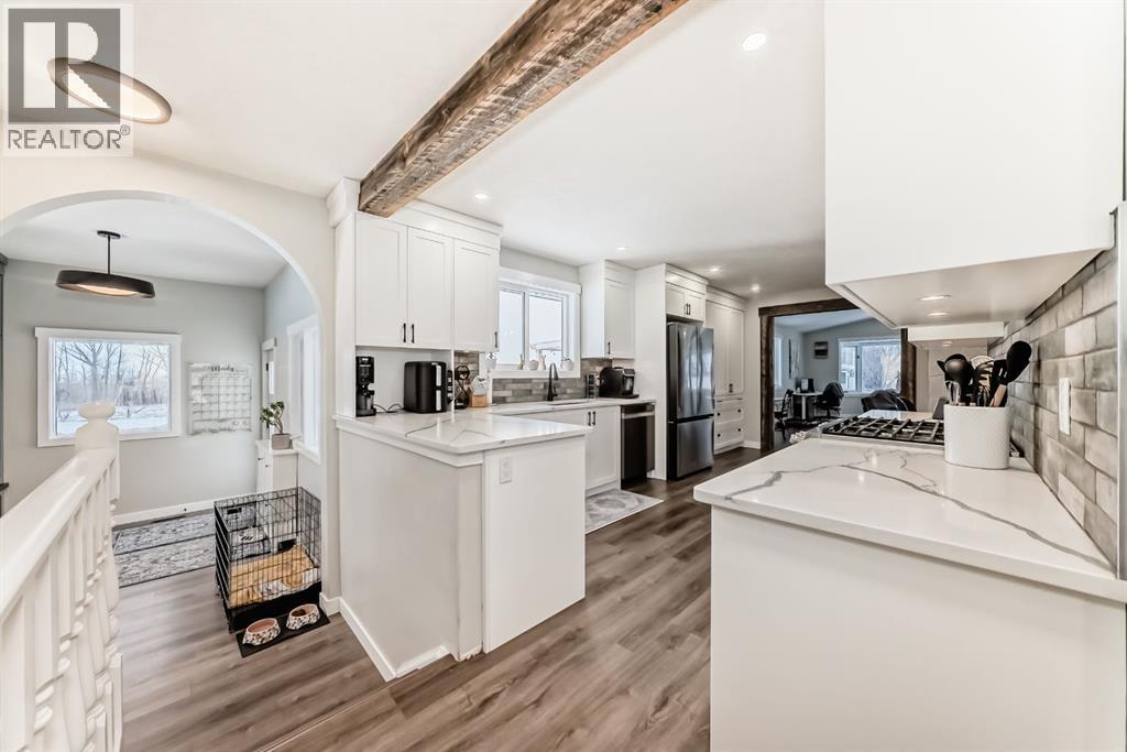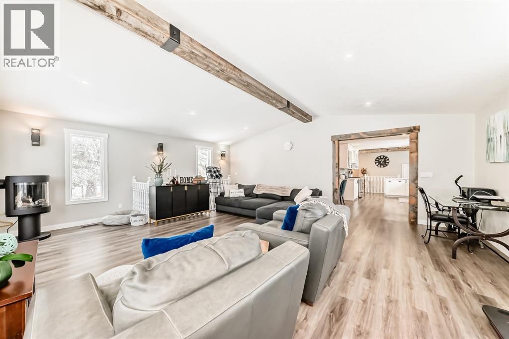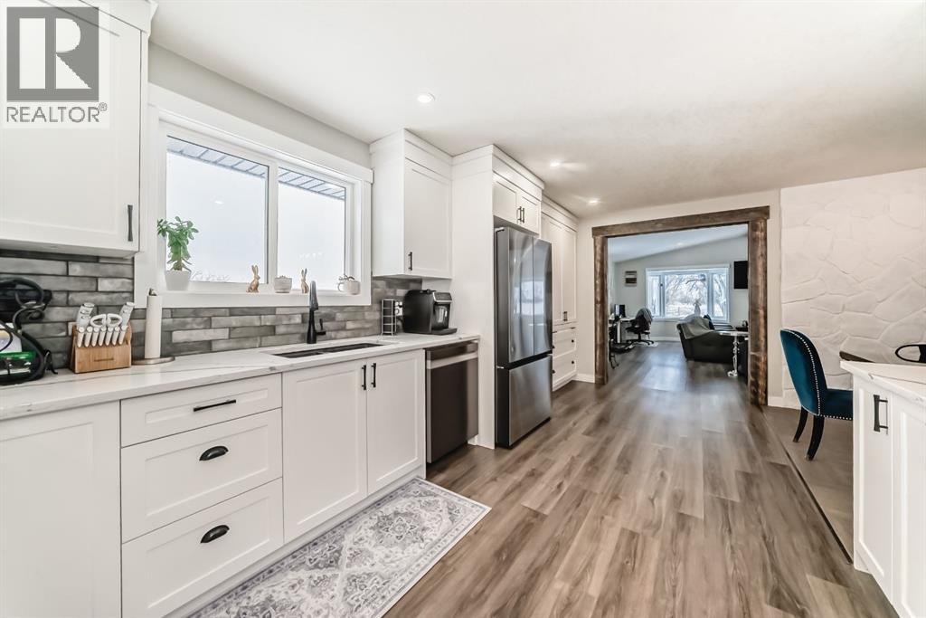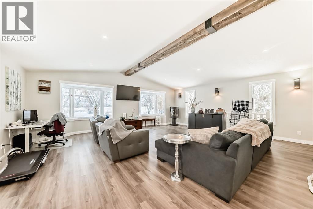 7 MINUTES TO STRATHMORE, PRIVATE AND LOTS OF TREES!! This home has been completely renovated! Driving up you will notice the tasteful metal gates and paved driveway. The outside has new roof, hardy board, vinyl and metal siding as well as deck all within the last 3 to 4 years. The inside has all been redone in the last 3-4 years as well. Walking in you are welcomed by the most amazing entry way with built in coat and boot closets. There is a sink to scrub off before entering your beautiful country home. The kitchen is complete with tasteful cupboards and granite counters, gas stove, stainless appliances and a large dining area for the whole family. the living room has many windows with views and is spacious. There is main floor laundry, a fully updated 4 piece bath for the 2 junior bedrooms. The primary room was reconstructed and has a beautiful walk in shower with sink and toilet as well it will fit a king bed and has a door to your back yard currently a dog run. The lower is fully finished with another bedroom, large flex (family room), massive games room, another modern 4 piece bath, 2 storage rooms and more. This home also has hot water on demand, central air conditioning, a 30x40 shop waiting for your choice of over head door, the floor is newer concrete, insulation is done and most of the boarding. There is also a green house, a chicken coop and more. You will also enjoy your coffee on the east facing front deck. (id:51989)
