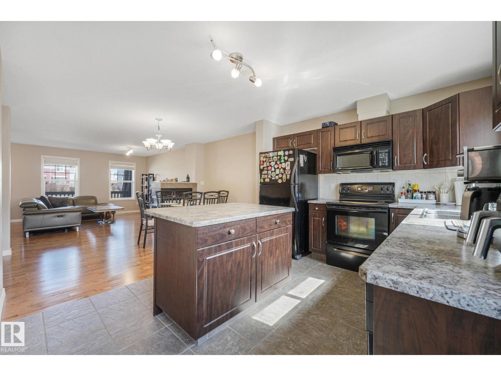 Welcome to this charming duplex home in the heart of Aspen Trails. The exterior features brick accents and a welcoming FRONT VERANDA. Step into a bright open-concept main floor, where the spacious living room is anchored by a stunning GLASS FIREPLACE, creating the perfect focal point for relaxing or entertaining. The layout flows seamlessly into a dedicated dining area and a corner kitchen complete with a centre island. Rich HARDWOOD FLOORING and a convenient 2-piece bath complete the main level. Upstairs, you’ll find two generous bedrooms and a well suited 4-piece bathroom. The LARGE primary suite offers its own private 4-piece ensuite, featuring a spacious jet tub, shower and a bright walk-in closet. The basement is open, clean and ready for your personal touch. Enjoy front and back landscaping, plus a SOUTH BACKING DECK perfect for soaking up the sun. A detached DOUBLE GARAGE adds convenience. Aspen Trails offers beautiful walking paths, parks, and quick access to Yellowhead Highway and all amenities! (id:51989)