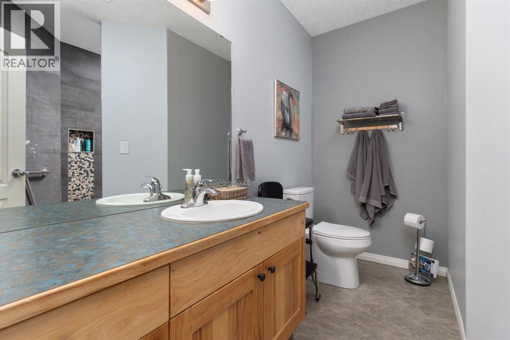 Welcome to your dream escape at Braseth Beach - an exclusive gated lakefront community on the north shore of Buffalo Lake. Tucked into a beautifully landscaped lot with flat walkout access right to the shoreline, this one-and-a-half-storey luxury home is built for year-round comfort, connection, and relaxation. Inside, you'll find a warm and inviting open-concept main floor with a stunning wall of south-facing windows that frame panoramic lake views. The classic brick-faced fireplace adds charm and coziness, while the eat-in kitchen with center island and corner pantry makes entertaining effortless. The spacious primary suite is a lakeside sanctuary - complete with high ceilings, walk-in closet, updated ensuite with jetted soaker tub, and garden doors opening to your private deck. Imagine waking up to tranquil water views every day. A second tucked-away bedroom with a nearby full bath offers great privacy for guests or family. Upstairs, the open loft adds even more flexibility - a perfect spot for a quiet reading corner, home office, or bonus space for visitors. The fully finished walkout basement includes two additional bedrooms, a theatre room, large living space, tons of storage, and a cold room - plenty of room for family, hobbies, or hosting. The lower bathroom features a custom shower with a beautiful tile surround and bench-type seating, adding both style and convenience. Step outside and walk straight onto your own beachfront paradise. Enjoy the spacious upper deck, perfect for taking in the breathtaking lake views, while the covered patio below offers a shaded retreat. An enclosed seasonal room provides an ideal escape from the elements when needed. This property also includes a heated, oversized detached garage with room for two vehicles, a shop area, and custom workbench - perfect for your tools and toys. Braseth Beach is a true hidden gem, offering a secure, community-oriented feel with amenities like a guest RV park, playground, and boat launch. Just 1 5 minutes to Bashaw for all your essentials. Buffalo Lake offers four seasons of fun - boating, swimming, fishing, skating, snowshoeing, and so much more - making it the perfect place to enjoy every month of the year. Meticulously maintained and truly loved, this home shows undeniable pride of ownership - ready to be passed on to someone who will cherish it just as much. Lakefront homes here are rarely available, because once you're here, you won't want to leave. (id:51989)