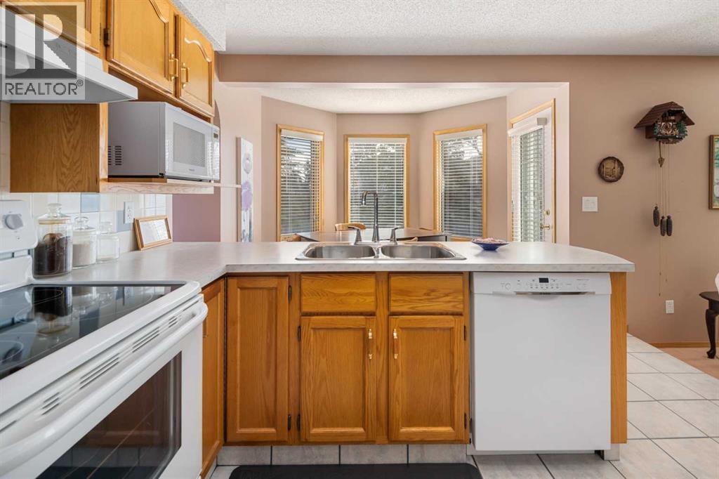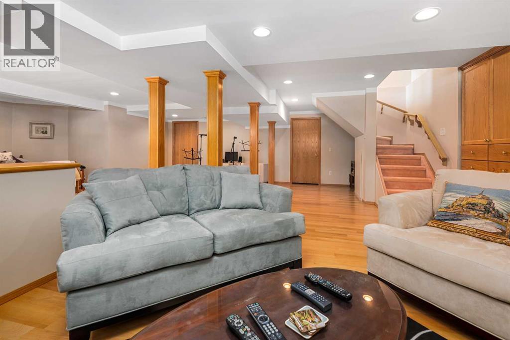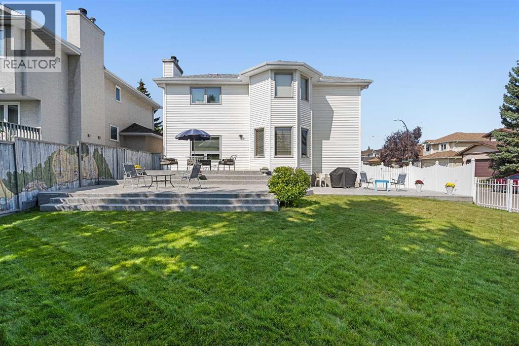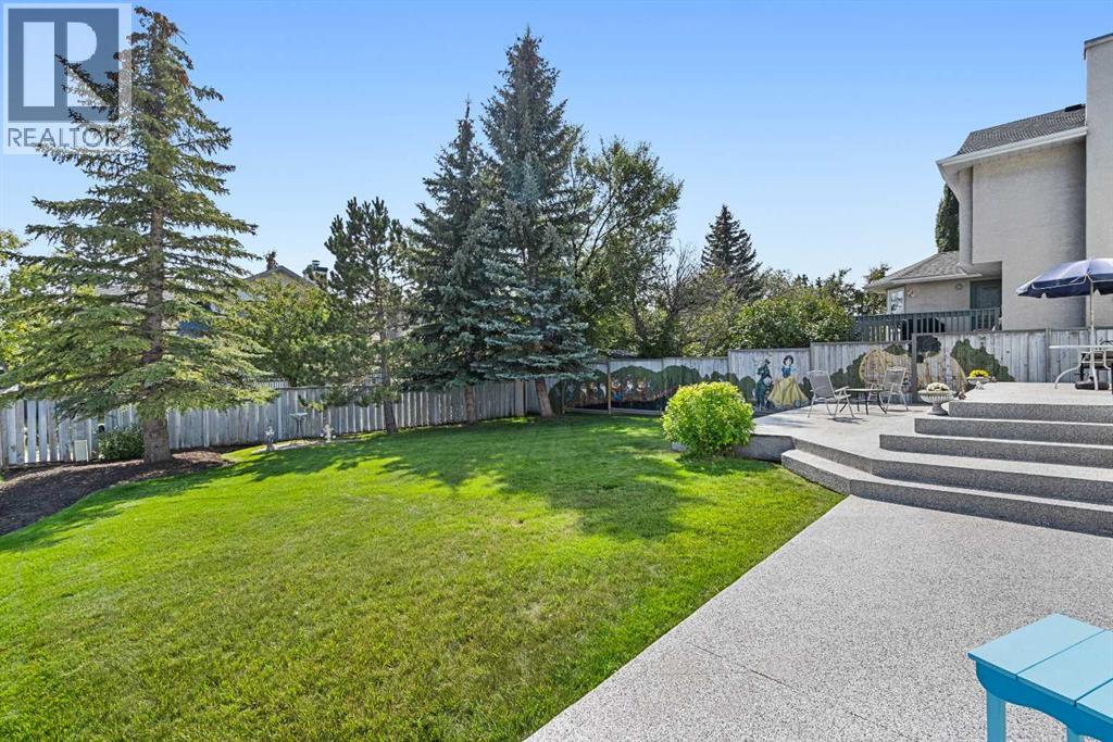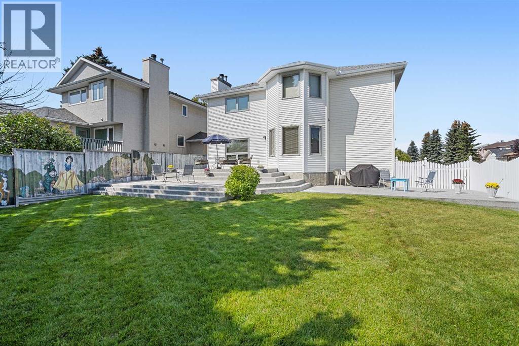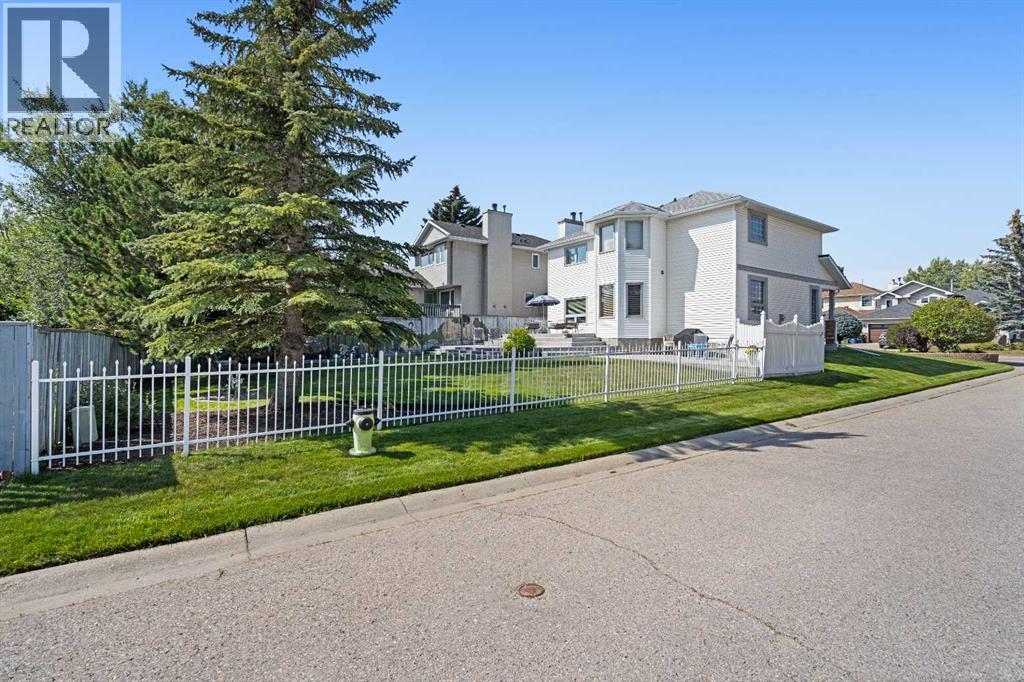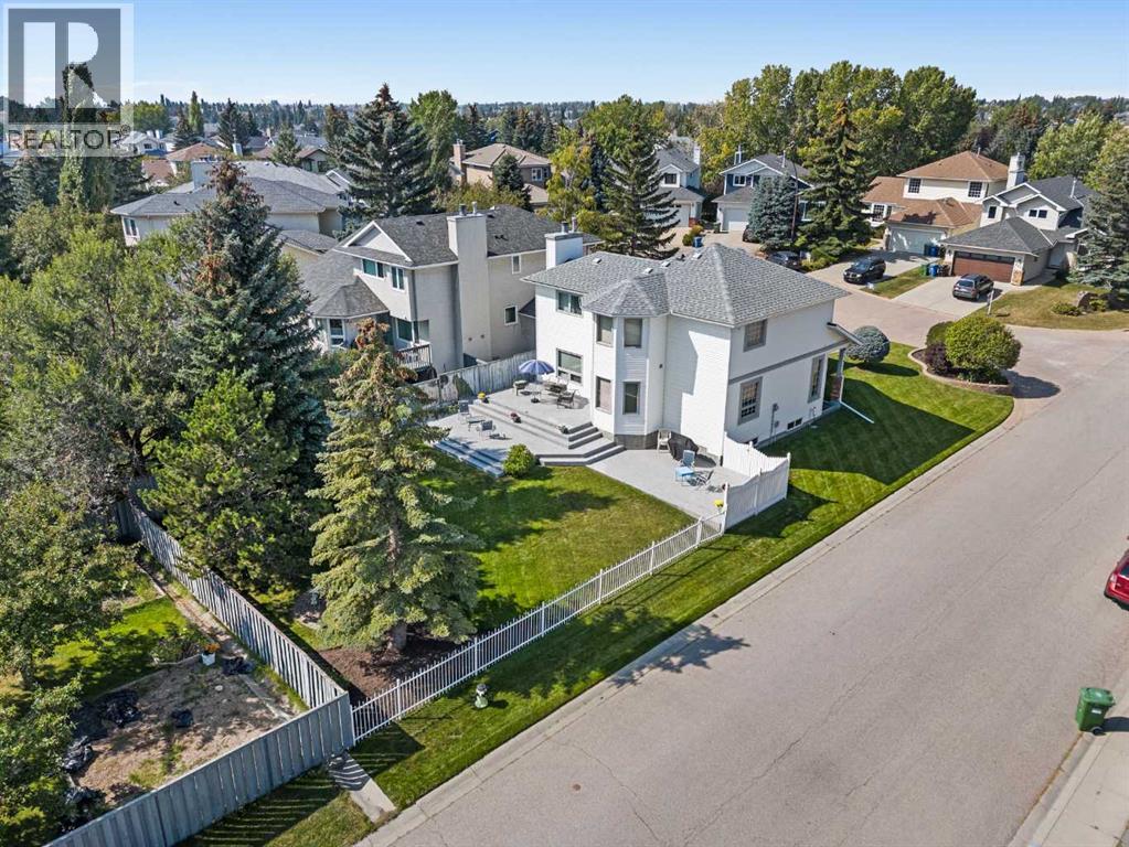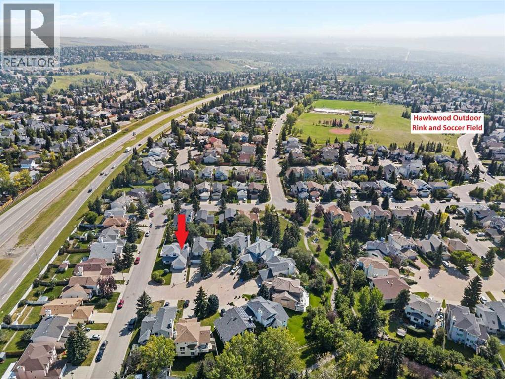 Welcome to this meticulously maintained home tucked away on a quiet cul-de-sac in the highly sought after community of Hawkwood. Situated on a desirable corner lot with no sidewalk to shovel, this property shows exceptional pride of ownership and thoughtful updates throughout. Built in 1990, this solid and well cared for home features 3 bedrooms and 3.5 bathrooms, offering a functional layout perfect for families. The main living area is warm and inviting with a gas insert fireplace and an integrated speaker system that extends throughout the home, ideal for both everyday living and entertaining. The kitchen is equipped with updated appliances, including a refrigerator, stove, and dishwasher installed in 2020, along with a new microwave (2024). Upstairs you’ll find comfortable bedrooms and well appointed bathrooms, while the fully developed basement (2010) provides additional living space complete with real hardwood flooring and custom built-in oak cabinetry. This home has been exceptionally well maintained with numerous important upgrades, including a high efficiency furnace, hot water tank, and humidifier installed in 2025, new windows replaced in 2023, eavestroughs replaced in 2023, and a roof replaced in 2014. Additional features include underground sprinklers, water softener, and newer washer and dryer in excellent condition. Outdoor living is a standout feature with a massive two-tiered aggregate rear deck, lined with idyllic custom painted mural, perfect for summer gatherings or relaxing in your private backyard space. Located just steps from parks, playgrounds, and schools, this home also benefits from everything the established community of Hawkwood has to offer. Known for its quiet streets, mature trees, excellent schools, and quick access to major routes, Hawkwood provides convenient connections to shopping, transit, and outdoor recreation while maintaining a peaceful residential atmosphere. This is a rare opportunity to own a solid, exceptionally maint ained home in one of Northwest Calgary’s most established family communities. (id:51989)