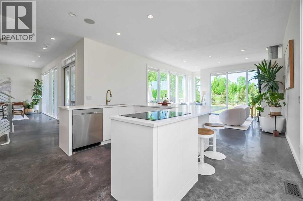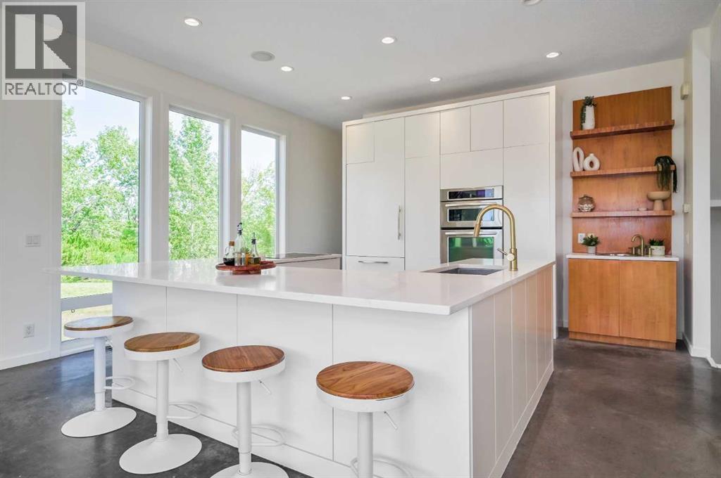 Welcome to this beautifully designed multigenerational home, offering flexible living spaces ideal for extended family, nanny or a fantastic mortgage helper opportunity. This is an extraordinary custom-built estate nestled on a beautifully manicured 2-acre parcel, including a high-earning legal suite, just a short drive from the vibrant heart of Calgary. This exceptional 8-bedroom, 4.5-bathroom residence offers 4,941 square feet of exquisitely designed living space, crafted with a seamless blend of architectural sophistication and everyday comfort. From the moment you arrive, you're greeted by the striking contemporary design—featuring clean lines, a sleek metal roof, and purposeful elements that make this home as stylish as it is functional. Expansive floor-to-ceiling windows invite an abundance of natural light throughout, illuminating polished concrete floors and emphasizing the spacious, open-concept layout. The main dining area flows effortlessly from the state-of-the-art kitchen—complete with high-end appliances, extensive quartz countertops, custom cabinetry, and a large center island—into a generous living room with a real wood-burning fireplace, perfect for cozy gatherings and enjoying panoramic views. A dedicated den offers a quiet space for a home office or study. Each of the six well-proportioned bedrooms provides a private sanctuary, with the luxurious primary suite featuring a spa-inspired ensuite with dual vanities, a walk-in shower, makeup vanity, and open-concept closet. The remaining bathrooms are outfitted with sleek, contemporary fixtures that reflect the home's modern character. Downstairs, the fully developed walk-out basement opens up a world of possibility, with a home theater, gym, and recreation room ready to suit any lifestyle. Adding incredible value is the thoughtfully designed 2-bedroom legal suite above the triple-attached garage, with a private entrance and full kitchen—currently generating $2,100 per month in consistent rental income , making it ideal for investors, multigenerational living, or offsetting mortgage costs. The expansive lot includes mature landscaping, a 3,500-gallon cistern, a large deck for entertaining, and wide open spaces perfect for gardening or play—all set against sweeping prairie views. Lovingly maintained by the original owner and built with premium materials throughout, this home combines modern luxury with practical functionality. Despite its peaceful rural setting, the property is just minutes from Calgary’s city limits, the South Health Campus, top-rated schools, shopping, restaurants, and all essential services. Whether you're searching for a luxurious family retreat, a flexible multigenerational setup, or a savvy investment opportunity, this extraordinary estate offers unmatched versatility and timeless appeal. This property is a must see in person to truly take it all in. Ask your favorite realtor and come on Buy! (id:51989)