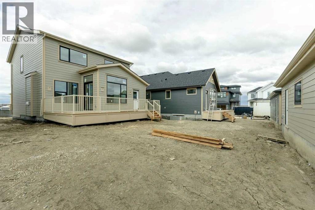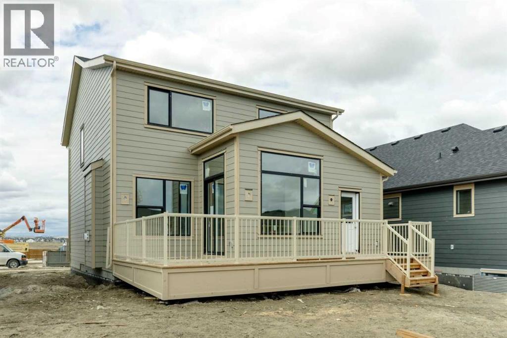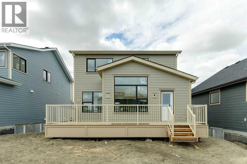 Welcome to the “Silverstone II” in the g lake community of Harmony, perfectly situated on a 40 meter long lot with a large backyard and a triple car detached garage. Enjoy outdoor living with a spacious rear deck, just steps from future beach access and nearby greenspace. Inside, the open-concept layout features a large great room with gas fireplace, a well-appointed kitchen with ample pantry space, and a main floor den—ideal for a home office. Upstairs offers a lake facing bonus room, a convenient closet with laundry chute, and three spacious bedrooms including a primary retreat with walk-in closet, soaker tub, and tile shower. Finished with stylish railing throughout, this home offers exceptional space, comfort, and lifestyle. (id:51989)