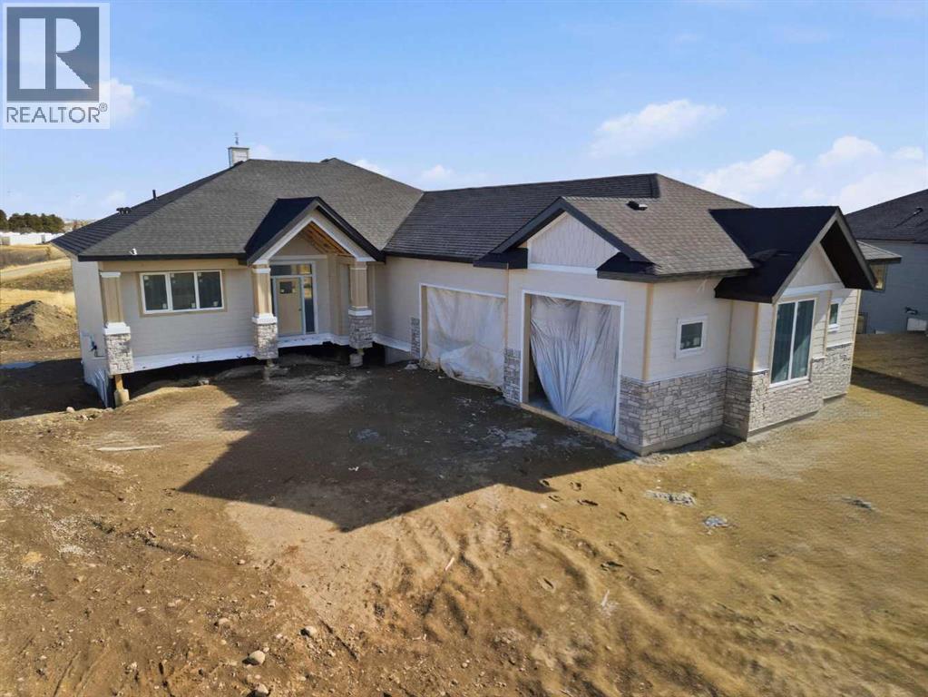 Experience the perfect blend of architectural elegance and country serenity with this upcoming custom masterpiece in the prestigious Red Tail Ridge community. Scheduled for completion by the end of July 2026, this exquisite home sits on a sprawling 0.41-acre lot and offers the rare acreage advantage of full municipal services, including city water, natural gas, electricity, and sewage. The striking exterior creates incredible curb appeal, pairing an expansive amount of masonry with durable James Hardie board siding and warm cedar soffits, while the front porch and rear deck ensure you can enjoy the outdoors no matter the time of day. Inside, the home is defined by soaring 10-foot main floor ceilings and a breathtaking 13-foot vaulted entry, leading into an expansive kitchen and dining room featuring custom cabinetry and premium KitchenAid appliances. The interior is finished with white oak railings, and engineered hardwood throughout both the upper and lower levels and Lux windows. Enjoy solid core doors complimenting the luxury details of the home. Designed for maximum comfort and utility, the property includes an oversized 44 x 25-foot triple garage and a functional fully finished 9-foot basement equipped with in-floor heating, a dedicated gym, and thoughtful planning to mitigate bulkheads for a clean, open feel. Please have your favourite Realtor call us today for an in-progress walk-through! (id:51989)