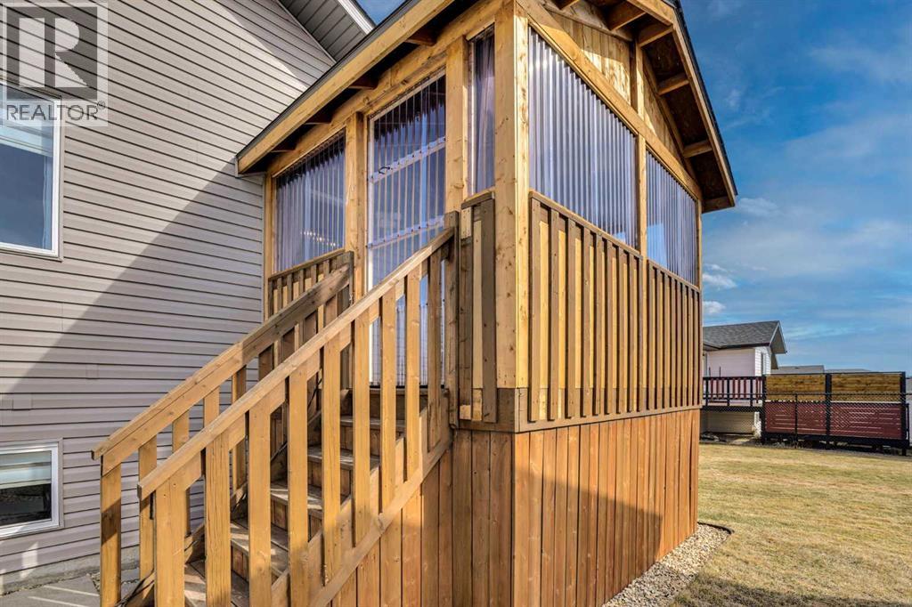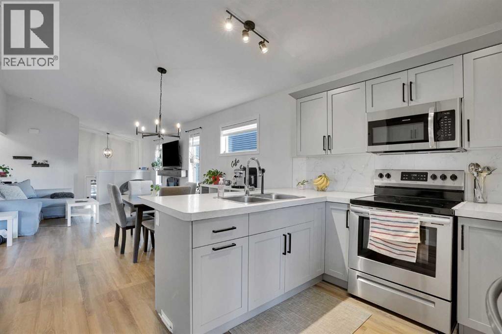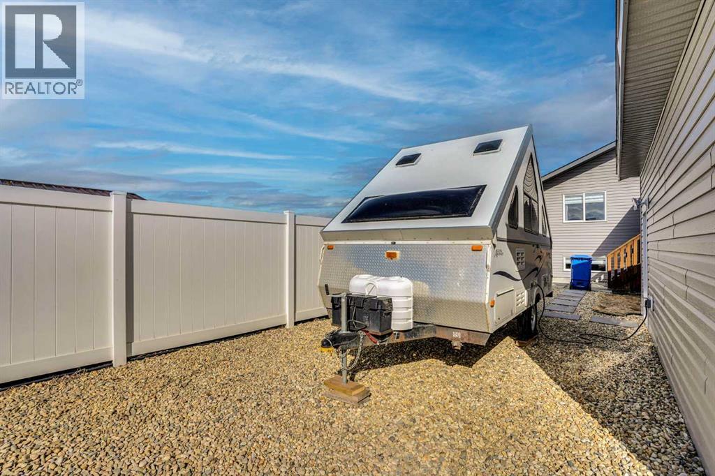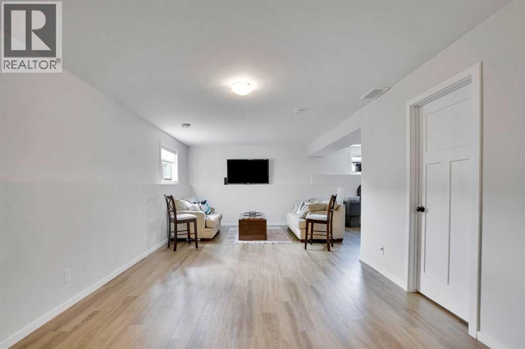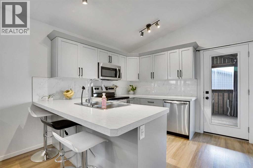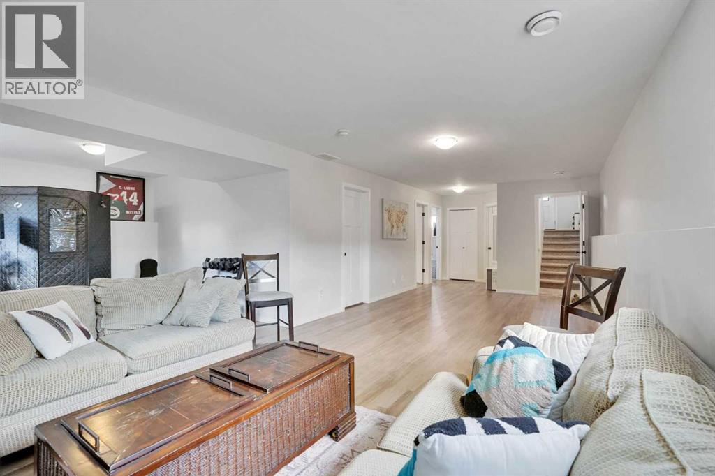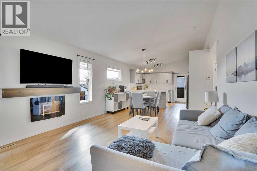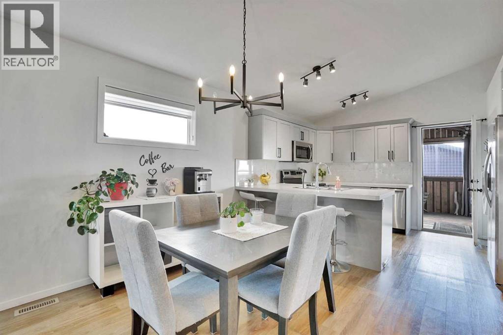 FULLY FINISHED 4 BEDROOM, 3 BATHROOM BI-LEVEL ~ HEATED DETACHED GARAGE ~ WEST FACING BACKYARD ~ Covered front entry welcomes you and leads to a sun filled foyer ~ Open concept main floor layout is complemented by vaulted ceiling and vinyl plank flooring ~ The living room is centred by a cozy fireplace with a mantle above and opens to the dining space where you can easily accommodate large gatherings ~ The U-shaped kitchen offers a functional layout with plenty of white cabinets, ample counter space including an island with an eating bar, full tile backsplash, and a wall pantry ~ Garden door access from the kitchen leads to the covered deck and backyard ~ The primary bedroom can easily accommodate a king size bed plus multiple pieces of furniture, has a spacious walk in closet, and a convenient 4 piece ensuite ~ 2 additional bedrooms located on the main level are both a generous size with ample closet space ~ 4 Piece main bathroom ~ The fully developed basement with large above grade windows offers a huge L-shaped family room, 4th bedroom, laundry, and space for storage ~ The sunny west facing backyard is landscaped, and mostly fenced with a large parking pad (room for an RV) and back alley access ~ Heated garage is insulated, finished with painted drywall, and has built in shelving ~ Located in desirable Timber Ridge, known for it's walkability, numerous schools, parks,playgrounds, walking trails and shopping plazas with excellent shopping and dining ~ Easy access to Balmoral Golf Course, Canyon Ski Resort & Rec Area. (id:51989)