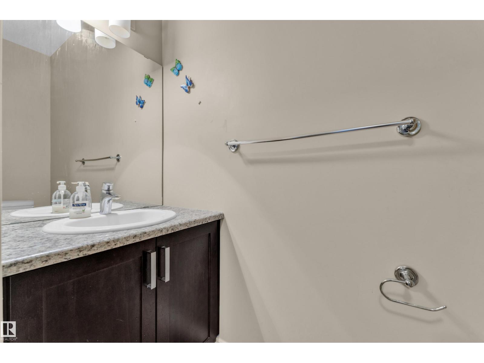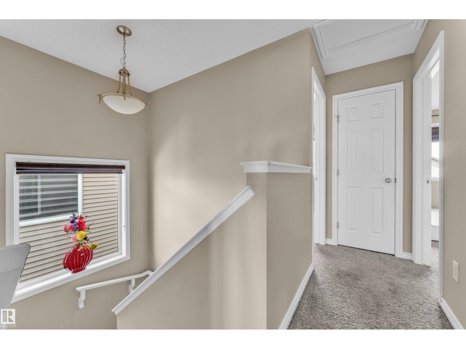 Beautifully maintained half-duplex offering excellent value in the desirable community of Laurel Green. This 2-storey home features 1,371 sq. ft. of living space with 3 bedrooms, 2.5 bathrooms, and a double front attached garage. The main floor offers a spacious layout with laminate flooring, cozy gas fireplace, stainless steel appliances, and a large pantry. The upper level includes three generous bedrooms, a full bathroom, and a bright primary bedroom with walk-in closet and 4-piece ensuite featuring double sinks. All appliances and window coverings are included. Enjoy a fully fenced yard with maintenance-free composite deck, perfect for outdoor living. Conveniently located within walking distance to Svend Hansen K-9 School and just minutes from Anthony Henday access. Quick possession available. A must see! (id:51989)