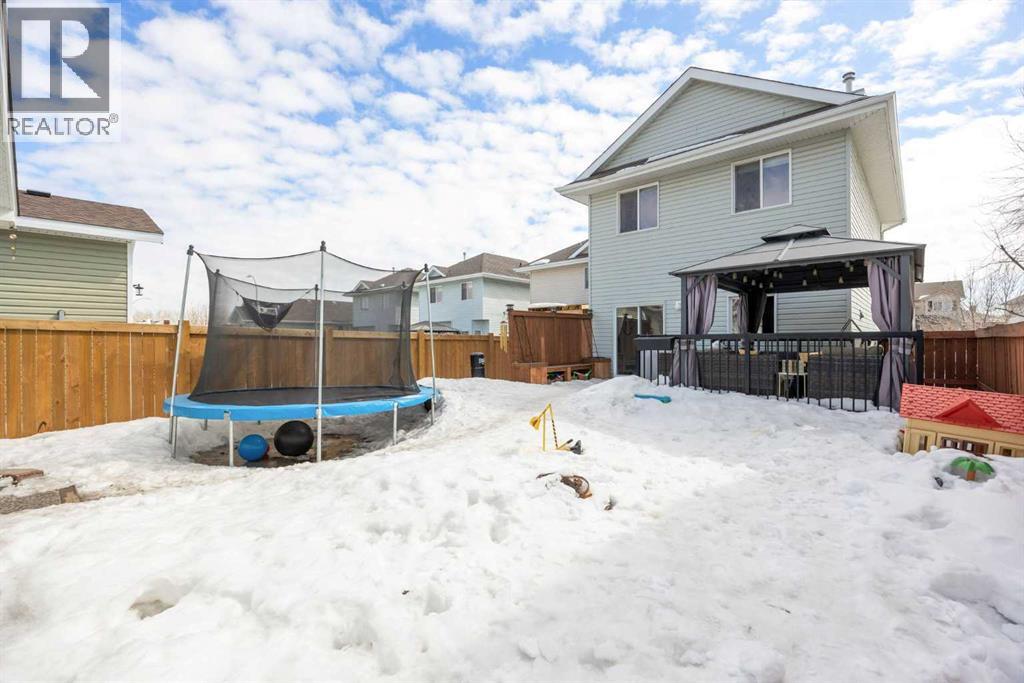 Welcome to 253 Pickles Crescent. Step inside and you’re greeted by a bright, welcoming layout that flows effortlessly from space to space. The main living area is filled with natural light from the oversized front windows, creating that cozy-but-open vibe everyone is after. Updated lighting (2026) and modern black hardware throughout add a fresh, cohesive feel, while the vinyl plank flooring (2024) keeps things stylish and practical for everyday life.The kitchen is functional, warm, and ready for real life with maple cabinetry, tile backsplash, and a full lineup of updated appliances including fridge and stove (2023), dishwasher (2025), washer and dryer (2025), and microwave (2026). Upstairs offers three bedrooms, including a spacious primary retreat with walk-in closet and convenient access to the beautifully updated 5-piece bathroom (2022), complete with double sinks and a tile surround tub/shower. Updated carpet on the stairs (2026) adds that extra touch of comfort heading up.Downstairs, the fully developed basement expands your living space with a fourth bedroom, a 3-piece bathroom, and a family room that’s perfect for movie nights, kids’ hangouts, or a quiet escape.Out back, the yard is a great size and absolutely passes the trampoline test, with a wood bench and privacy wall (2025) on the deck creating a cozy outdoor hangout space. The double detached garage offers plenty of room, plus the rare bonus of having space to park a full-size truck sideways in front of the garage for additional parking.Comfort is covered year-round with central A/C, and the location couldn’t be more convenient. You’re within walking distance to transit, grocery stores, fitness facilities, restaurants, and shops, plus close to excellent elementary and junior/high schools, both public and Catholic.This is one of those homes that doesn’t just check the boxes, it actually feels like home the second you walk through the door. (id:51989)