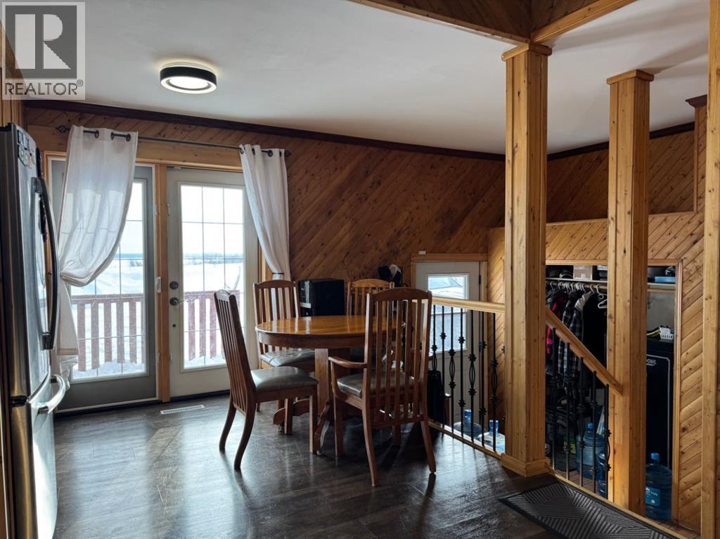 Welcome to this fully developed, character-filled home nestled on 46.48 beautiful acres with private trails leading down to the banks of the Peace River. Step inside through the back deck into a welcoming mudroom, complete with ample space for coats, boots, and outdoor gear, conveniently located next to a 3-piece bathroom. From here, you will notice the fresh paint throughout then make your way into the spacious renovated kitchen, showcasing newer appliances, a gas stove, and plenty of counter space for cooking and gathering. The kitchen flows seamlessly into the bright dining area and cozy living room, warmed by a charming wood stove that adds to the inviting country atmosphere.Downstairs, you’ll find a large second living area featuring a pellet stove, perfect for family movie nights or quiet evenings. The basement also offers dry storage, cold storage, a utility/furnace room, and a large laundry area—all thoughtfully laid out for functionality.The main level hosts two comfortable bedrooms and another 3-piece bathroom, while the upper level provides two additional bedrooms, each with plenty of storage and a generous closet.This home has been extensively updated for comfort and peace of mind, including new siding, plumbing, wiring, insulation, windows, doors, tin roof, and septic pump, along with a high-efficiency furnace (2024) and hot water tank (2022). The solid 14-inch poured concrete foundation ensures lasting stability. The property is connected to a shared water co-op providing 2,200 gallons of water per day, owned by you and 19 other homeowners through White Law Aqua.Outside, enjoy a 26’ x 30.5’ insulated garage with radiant heat and concrete flooring, plus an attached lean-to for additional storage. The land is already set up for horses, featuring a large barn, dugout for water, and a seasonal creek running through the property.This is more than just a home—it’s a peaceful retreat surrounded by nature, offering the best of country living with modern comfort and timeless charm. (id:51989)