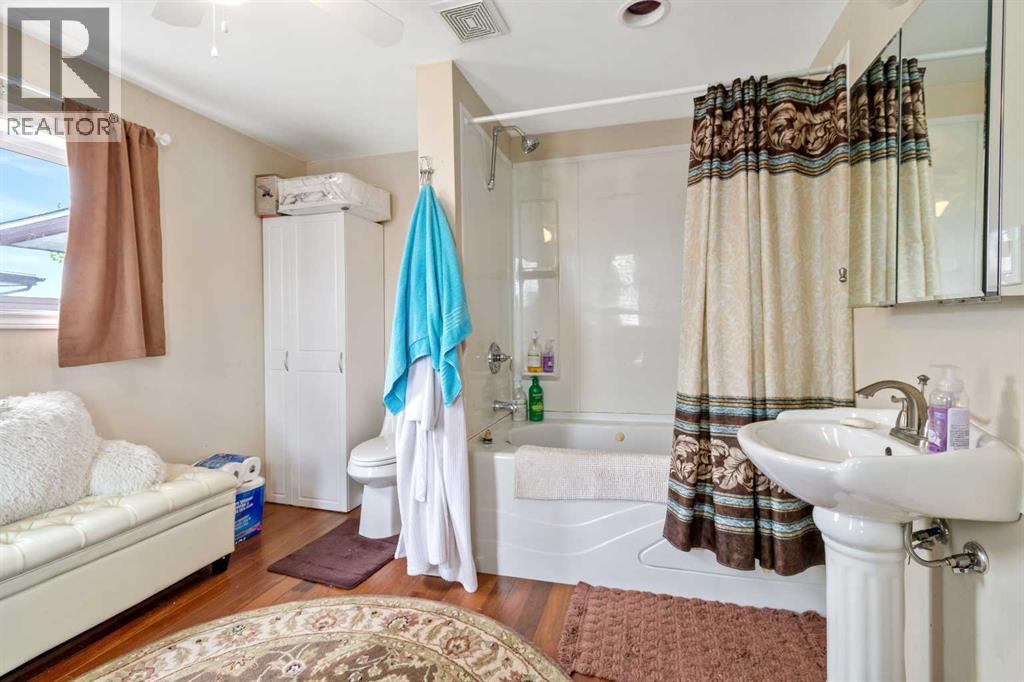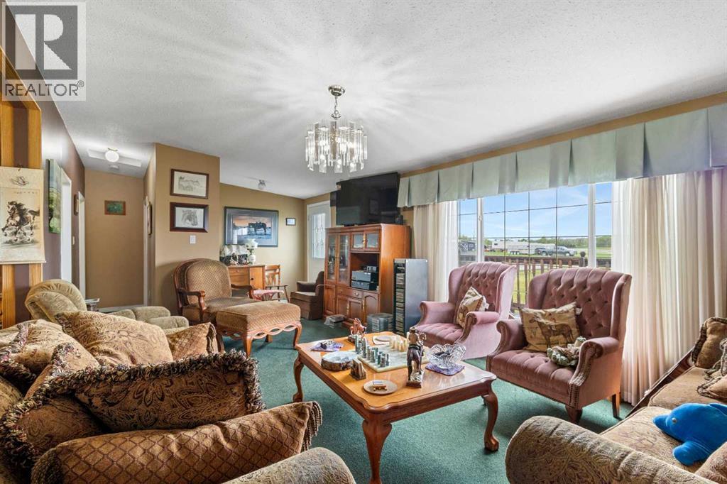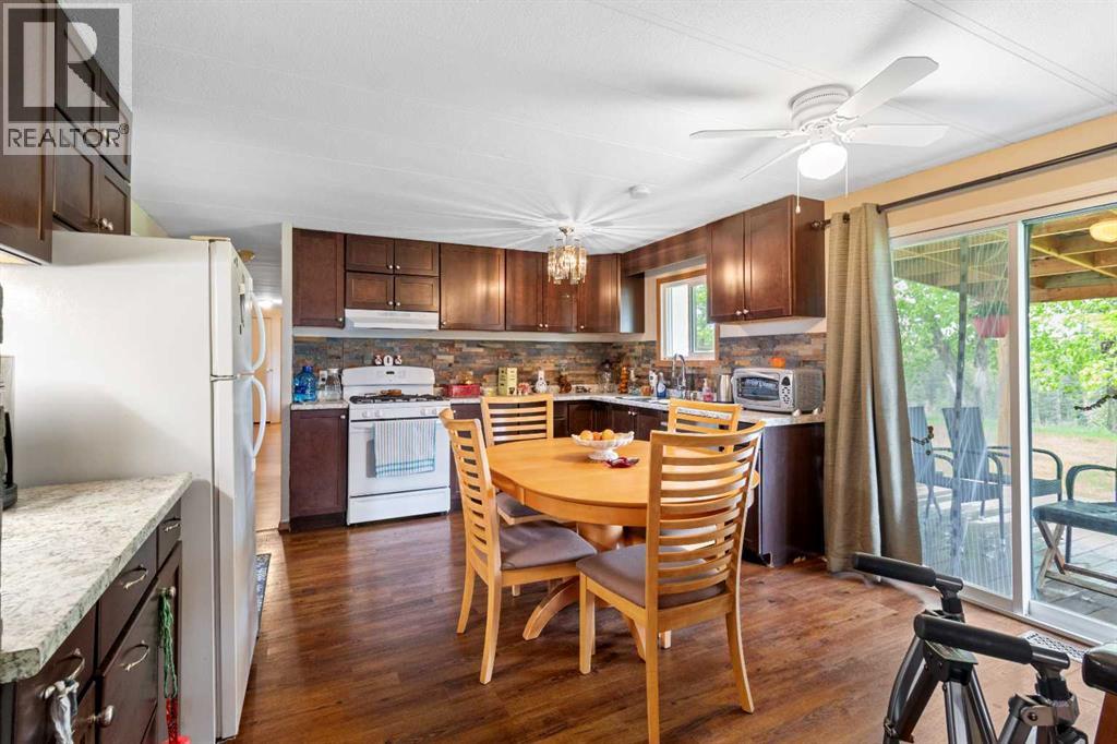 Welcome to this unique farm within minutes of Red Deer being used to raise and train horses and a handful of chickens too. Two complete fully finished homes, one is 28 x 52 with a 12 x 20 addition, the other is 14 x 69 with a 12 x 46 addition both sitting on pilings and wooden crate blocking. Each home comes with Fridge, Stove, Dishwasher and Washer / Dryer. Also included are all window coverings and ceiling fans. Shingles replaced on both homes 3 years ago, and water well pump is only 2 years old. Farm buildings include a 32 x 64 barn with plenty of horse stalls, pens and a training round ring. Outside buildings include Gazebo, sheds, wellhouse with water softener and manifold to control water every where on the farm. There are chicken sheds, horse shelters, 3 horse waterers, 3 hydrants and the homes have a shared septic tank and field. A one of a kind set up to live and run a horse boarding facility, and to have a residence for your staff. The view in all directions is awesome, from the south valley down to the flowing creek, to the horizon area looking over Joffre Bridge. A very quiet and peaceful location. Come take a look ! (id:51989)