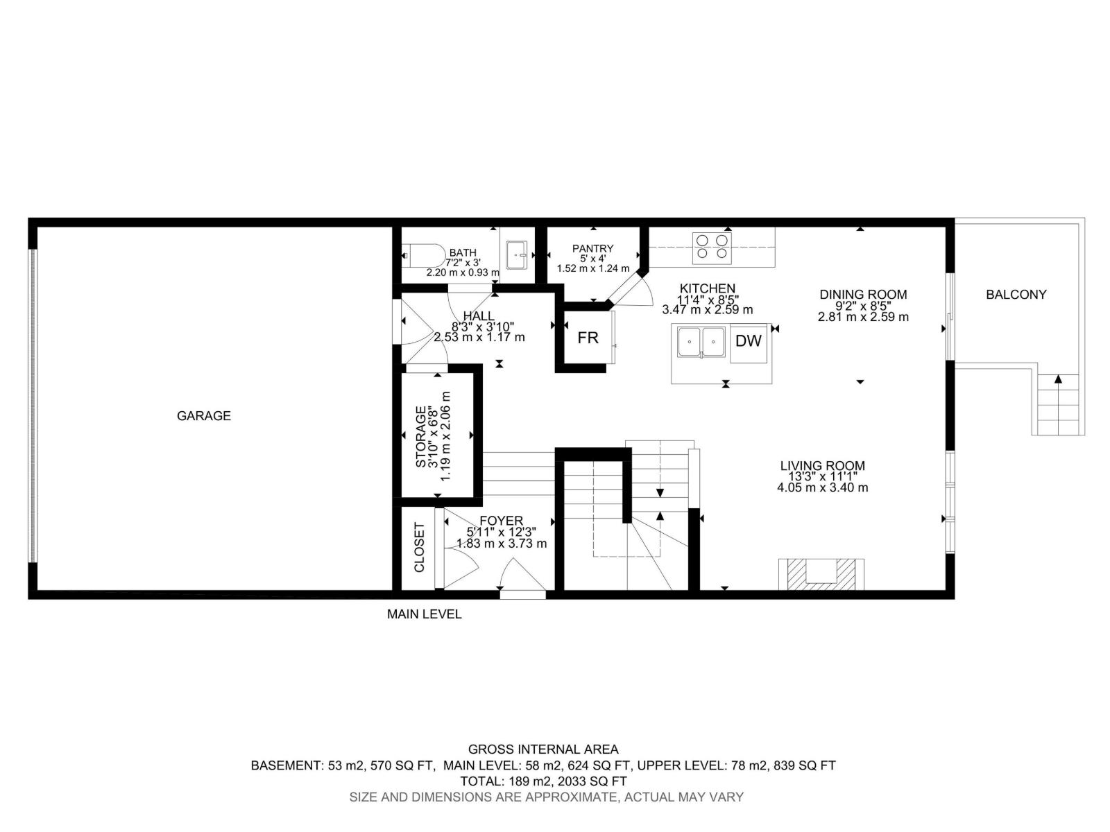 | Main Level | Living Room | 4.05 m | 3.4 m | 4.05 m x 3.4 m |