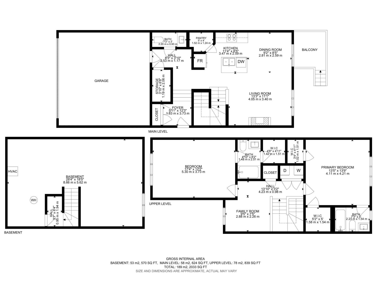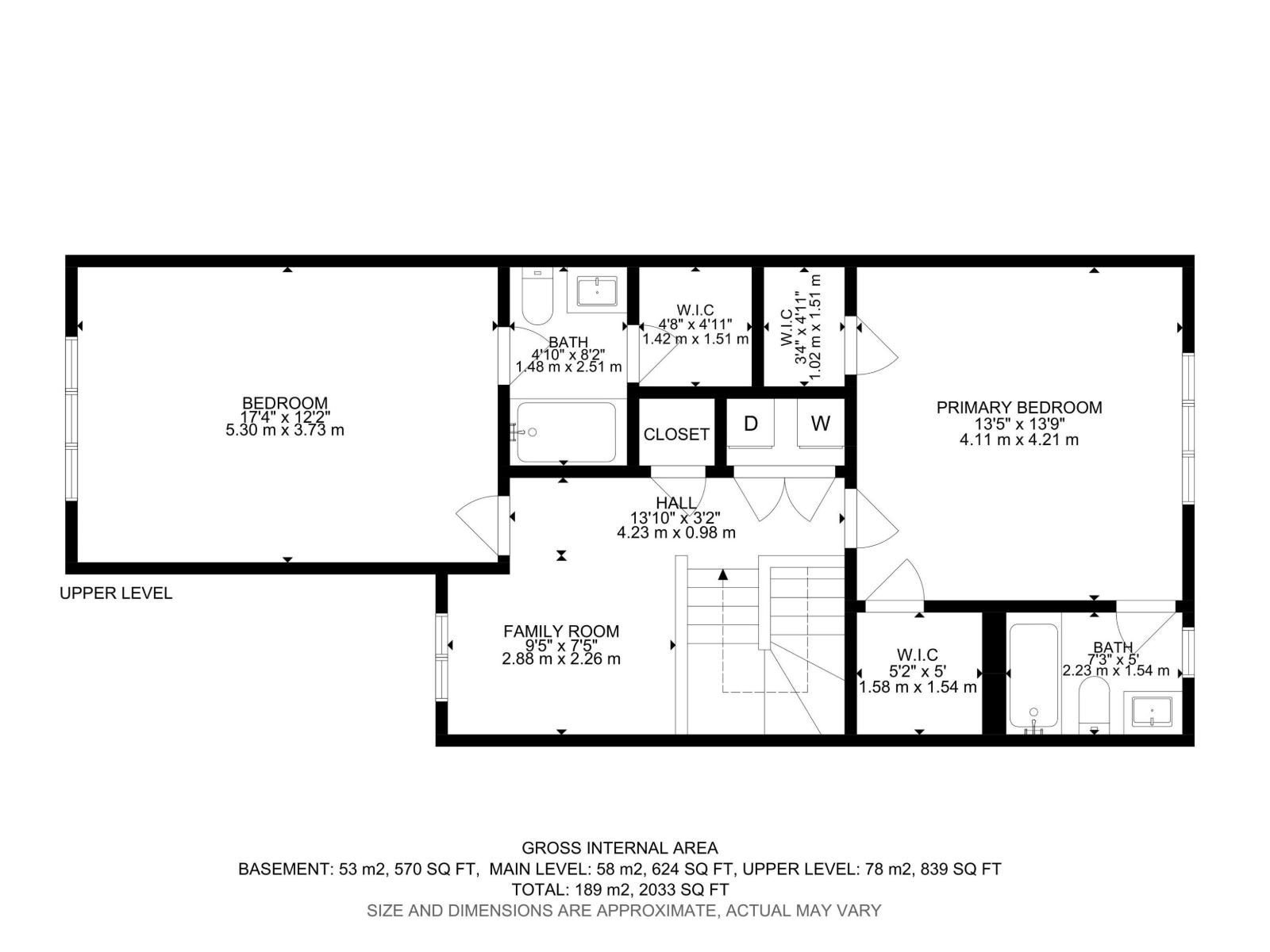 | Upper Level | Primary Bedroom | 4.11 m | 4.21 m | 4.11 m x 4.21 m |