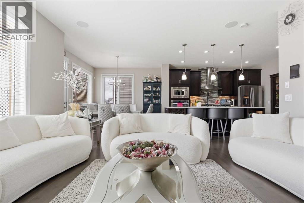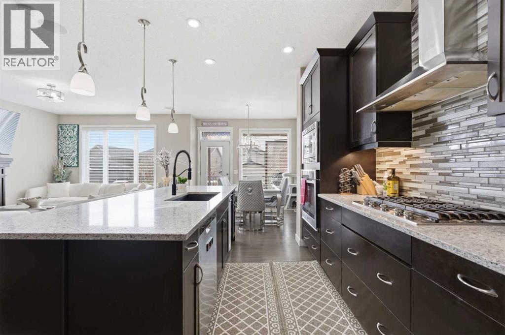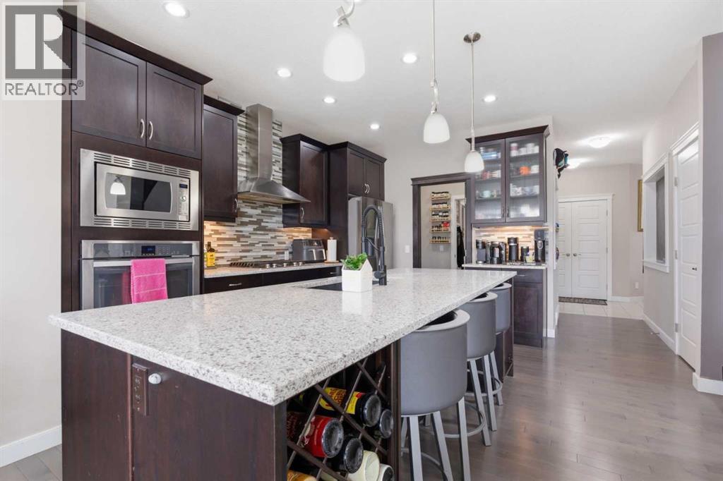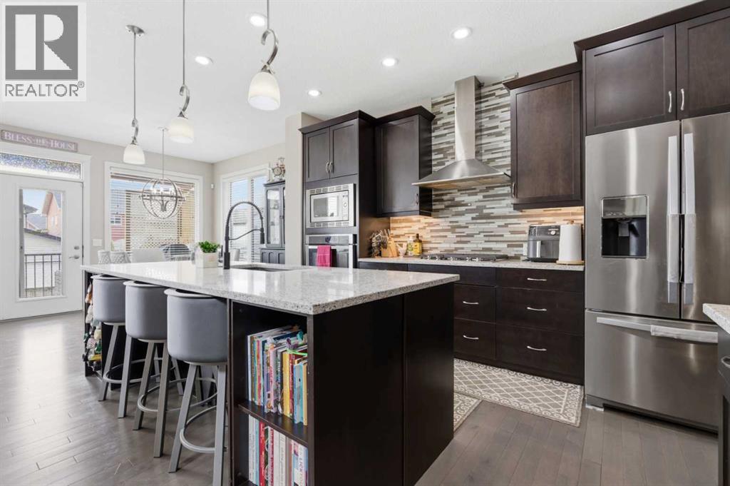 5 BED | 4 BATH | WET BAR | HOME GYM | COVERED DECK | SPRINKLER/IRRIGATION SYSTEM | GRANITE COUNTERTOPS | BUILT-IN SURROUND SOUNDLooking for the perfect family home where the kids can walk to school? This is it. Ideally located near both public and Francophone schools, this beautifully upgraded home in the highly sought-after Ravenswood community delivers space, style, and standout features at every turn.Step inside to a thoughtfully designed layout featuring a versatile flex room—perfect for a home office or quiet study. The main living area is warm and inviting, anchored by a cozy fireplace and enhanced by built-in ceiling speakers, creating the perfect setting for relaxing nights or entertaining guests.The chef-inspired kitchen is sure to impress with granite countertops, stainless steel appliances, and a functional executive design. A walk-through butler’s pantry keeps everything organized and within reach, while the double attached garage adds everyday convenience.Upstairs, you’ll find four generously sized bedrooms, including two with walk-in closets, plus a stunning bonus room with vaulted ceiling—ideal for movie nights or a kids’ retreat. The primary suite is your private escape, featuring a luxurious 5-piece ensuite with a soaker tub, dual granite countertop vanities, and a separate glass shower. An additional 5-piece bathroom with a granite countertop, double sinks ensures stress-free mornings for the whole family, and the upstairs laundry room adds practical ease.The fully finished basement expands your living space with a large recreation room, dedicated home gym, and a stylish wet bar—perfect for entertaining or unwinding after a workout. Built-in ceiling speakers set the stage for movie nights, music, or even karaoke. A spacious bedroom and full bathroom make it ideal for guests or extended family.Outside, enjoy two incredible outdoor living spaces: a sunny south-facing backyard with low-maintenance landscaping and underground irrigation, pl us a lower stone patio with a built-in firepit. The covered upper deck is perfect for year-round grilling and gatherings, complete with additional storage below. A rear gate provides easy alley access.This home truly has it all—location, space, and premium features designed for modern family living. Don’t miss your chance to make it yours. (id:51989)
