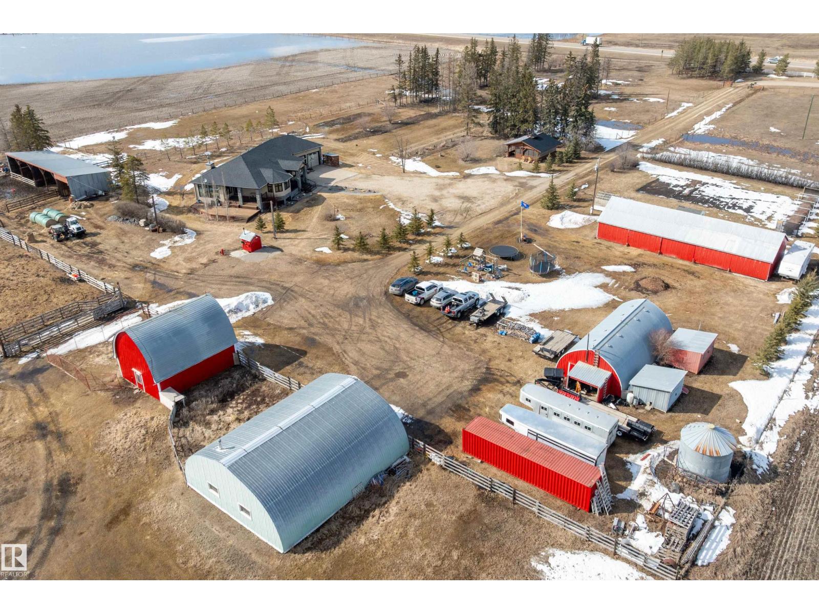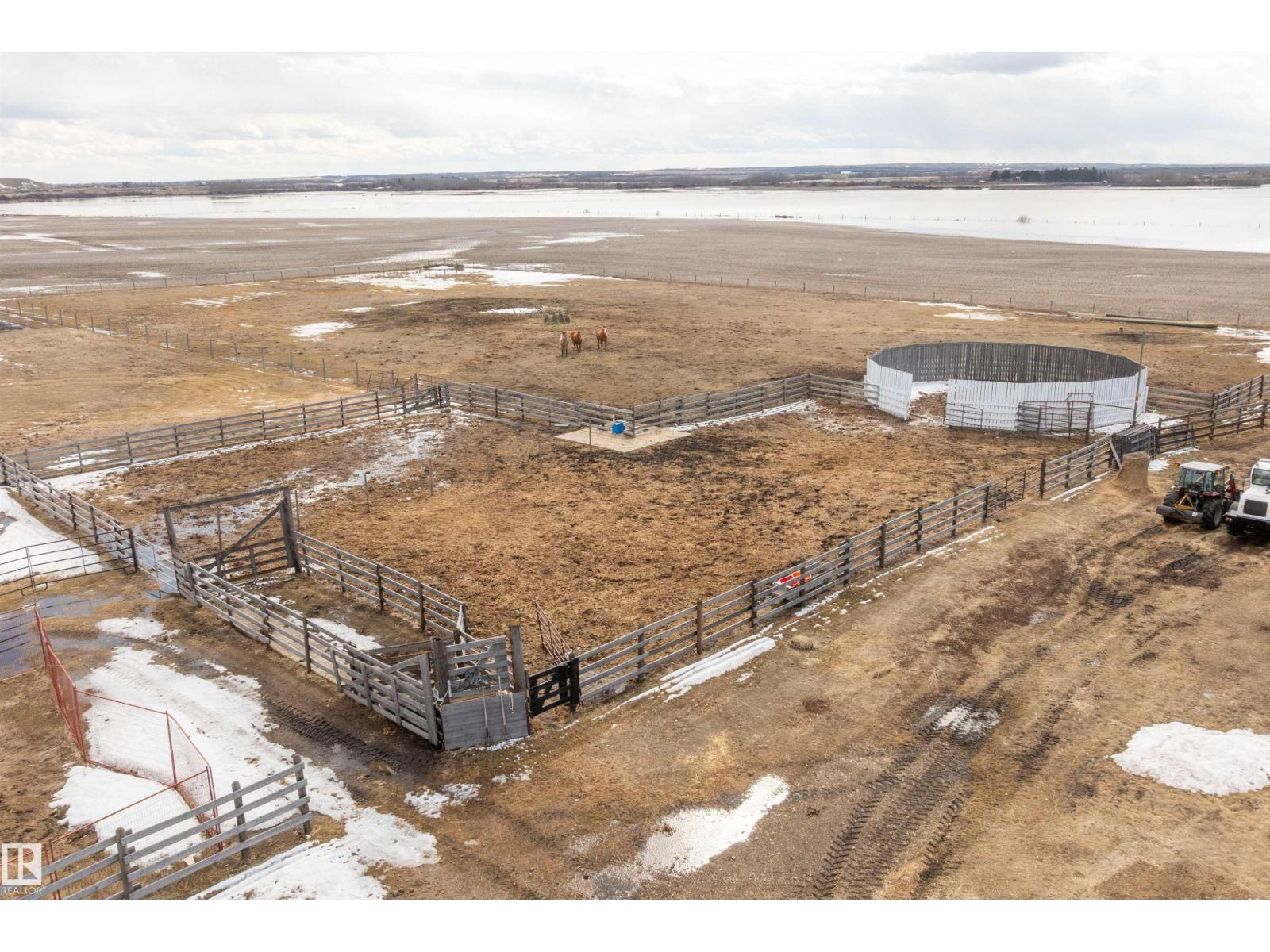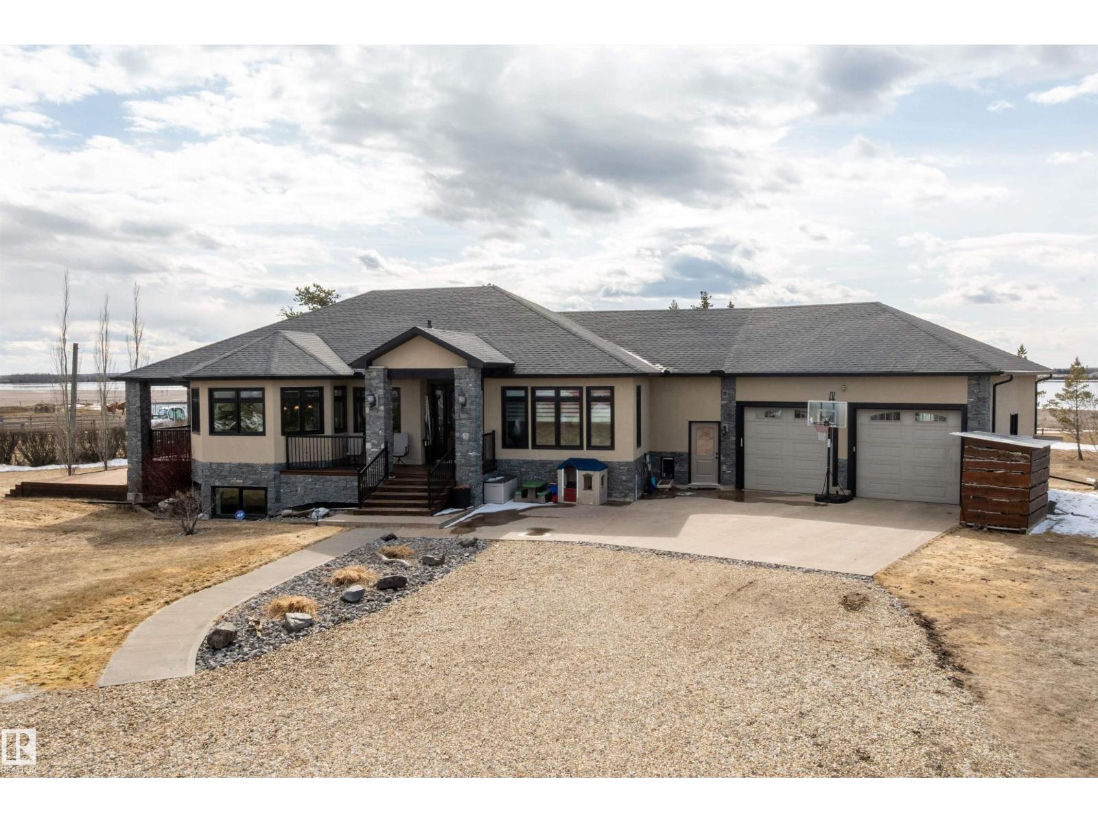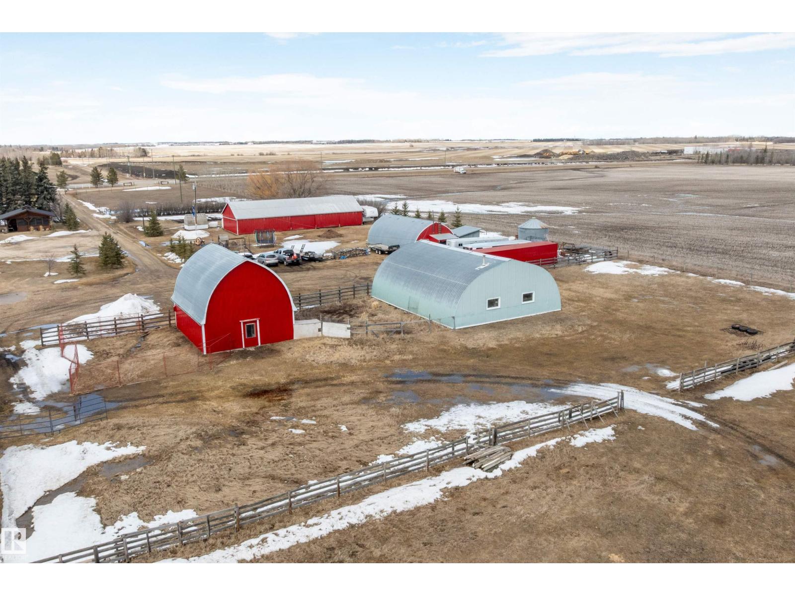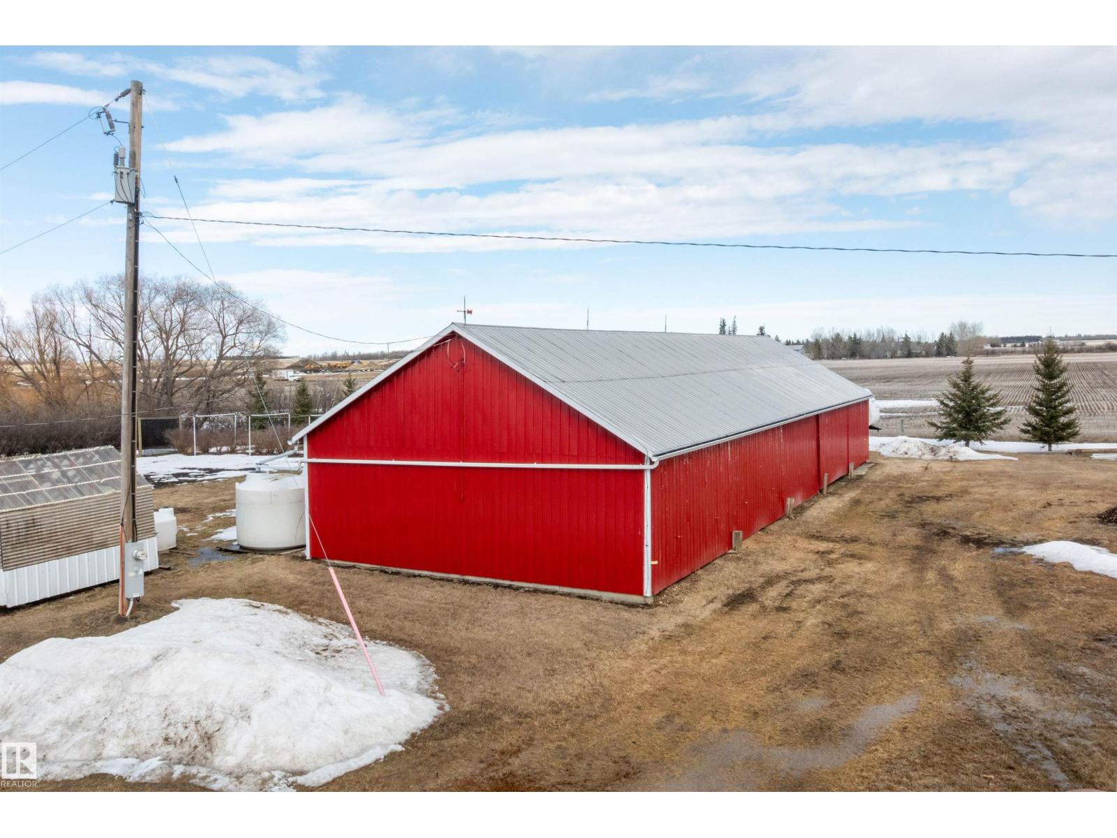 15 minute drive north of St Albert and fronting on Highway 37 you will discover this Executive Style Acreage / Hobby Farm living at its best. 2240 Sq Ft Bungalow custom built in 2011 open concept 4 bedrooms 3.5 bathrooms with a fully finished basement with in-floor heating. A 26ft by 38ft attached garage with in-floor heating. View this 14.21 acres of beautiful professionally landscaped yard with enclosed gazebo and very large wood burning fire pit. Formal farm site with 40ft by 46 ft heated shop, 26ft by 80 ft Barn and 24ft by 44ft storage building. All out buildings have metal roofs plus home is energy efficient with 10 inch wall construction. Fully set up for Livestock or also can be utilized for a small business operation with highway access to 37 and only 5 minutes to highway 44. (id:51989)