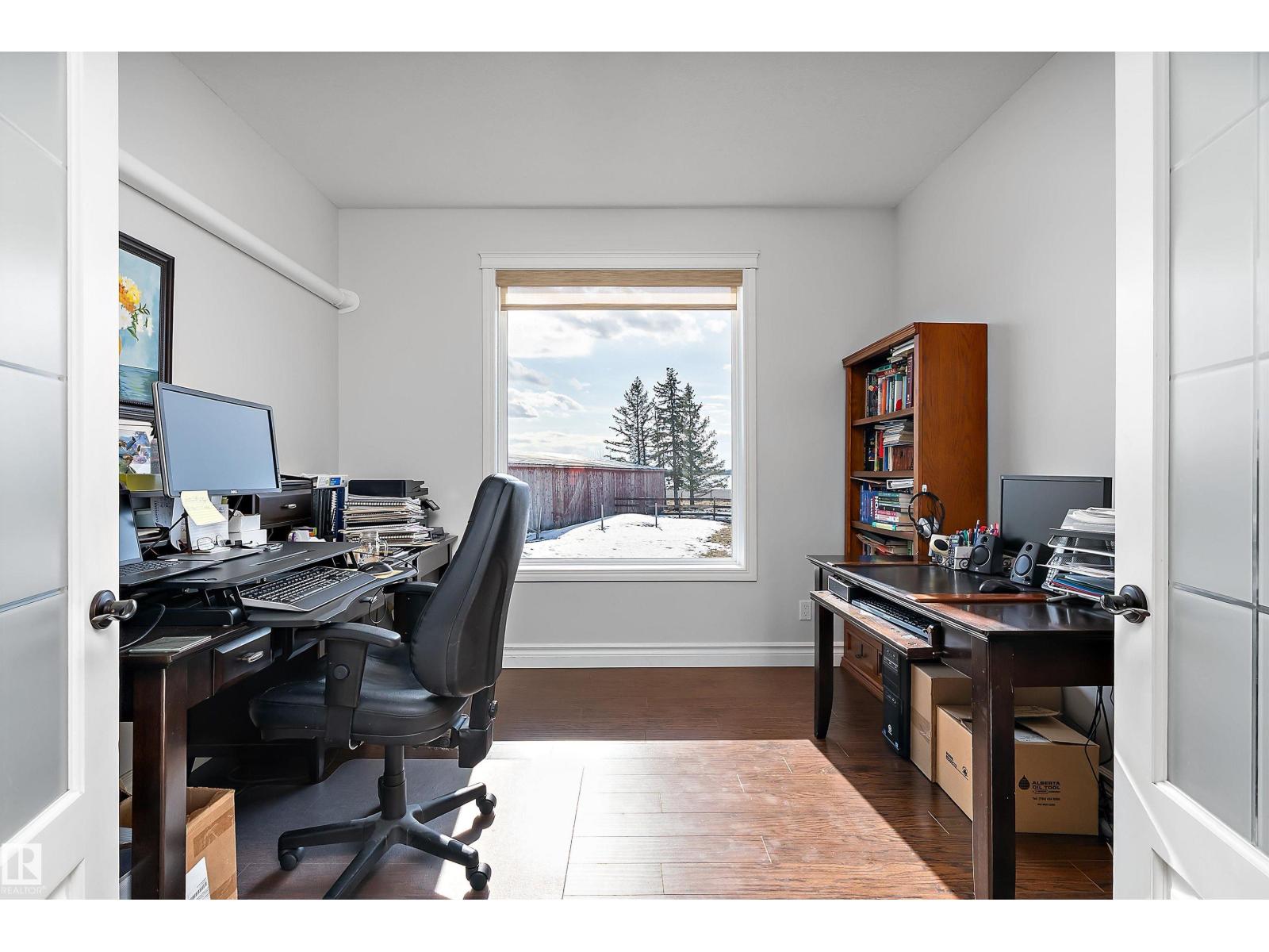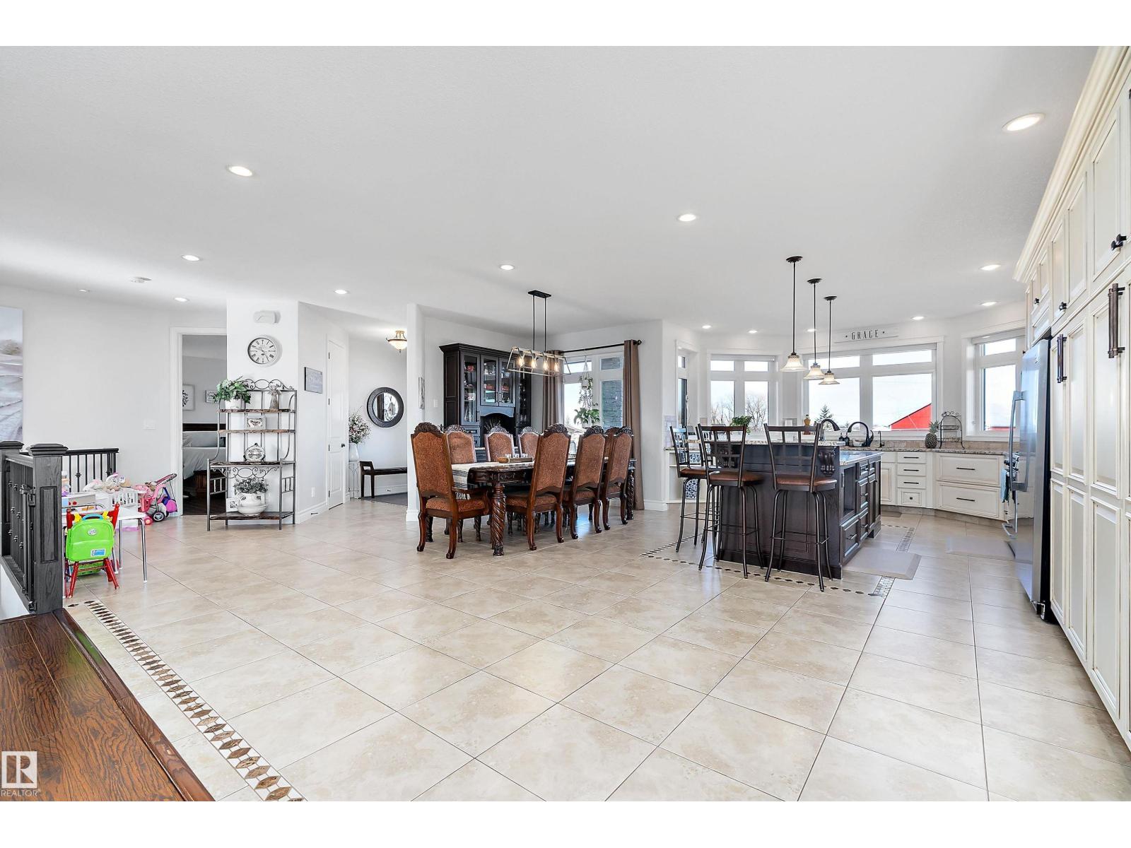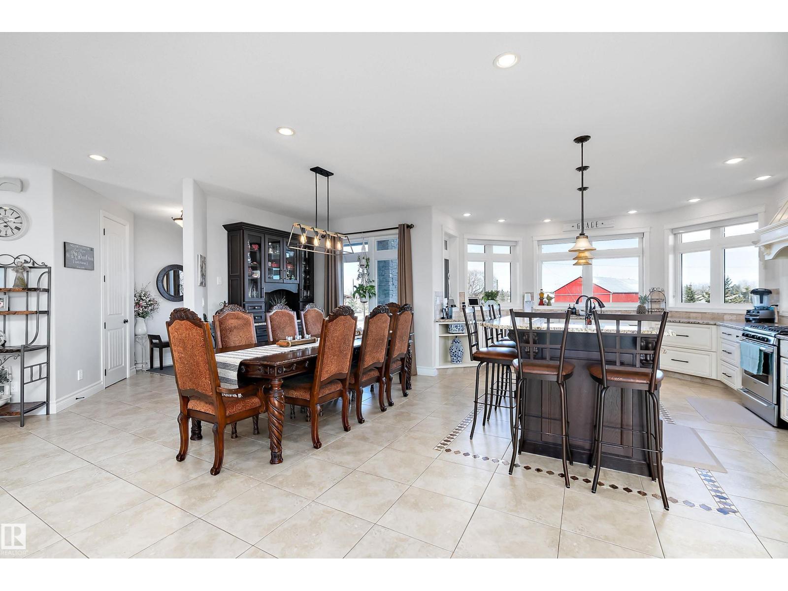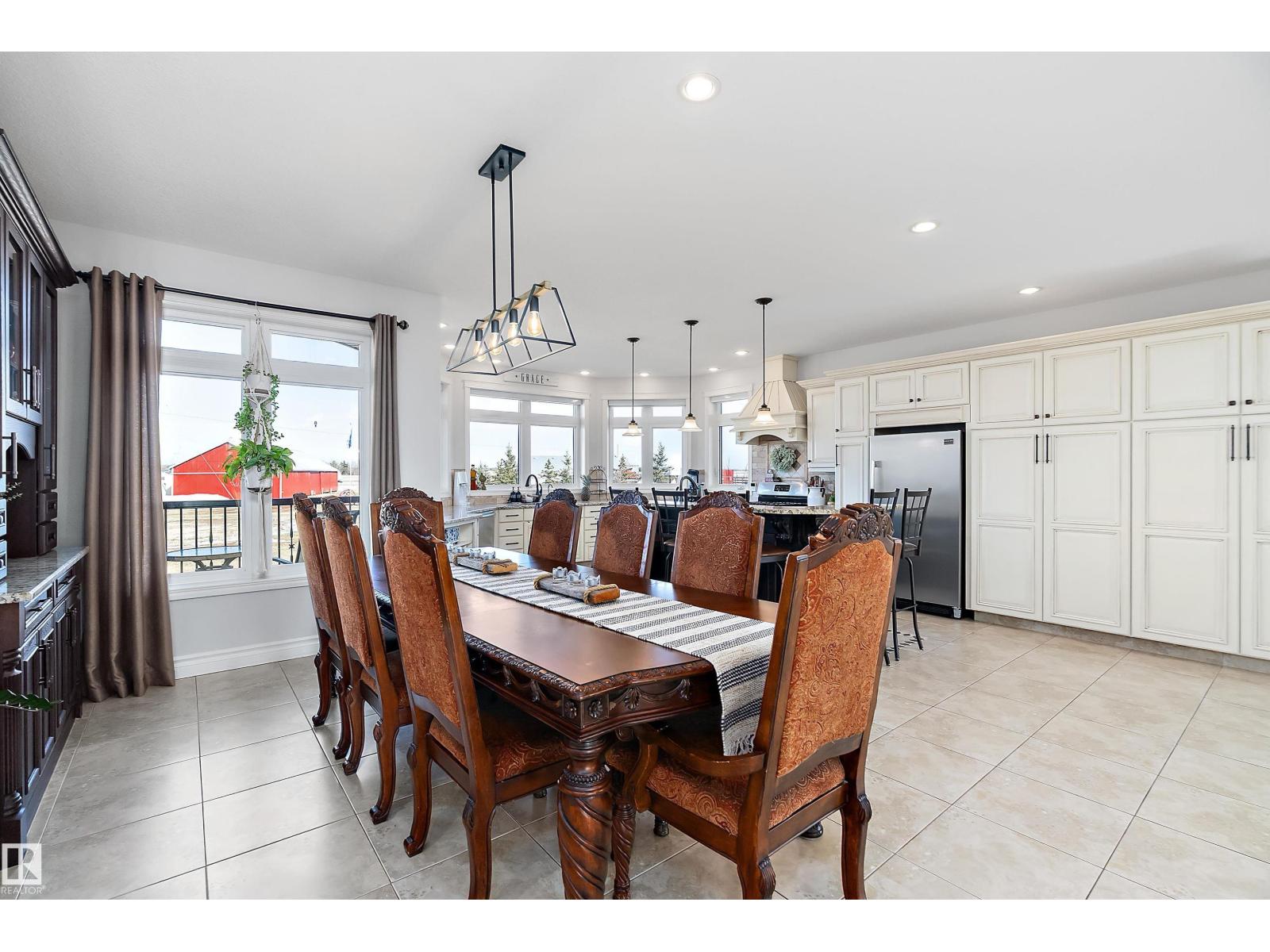 15 minute drive north of St Albert and fronting on Highway 37 you will discover this Executive Style Acreage / Hobby Farm living at its best. 2240 Sq Ft Bungalow custom built in 2011 open concept 4 bedrooms 3.5 bathrooms with a fully finished basement with in-floor heating. A 26ft by 38ft attached garage with in-floor heating. View this 14.21 acres of beautiful professionally landscaped yard with enclosed gazebo and very large wood burning fire pit. Formal farm site with 40ft by 46 ft heated shop, 26ft by 80 ft Barn and 24ft by 44ft storage building. All out buildings have metal roofs plus home is energy efficient with 10 inch wall construction. Fully set up for Livestock or also can be utilized for a small business operation with highway access to 37 and only 5 minutes to highway 44. (id:51989)